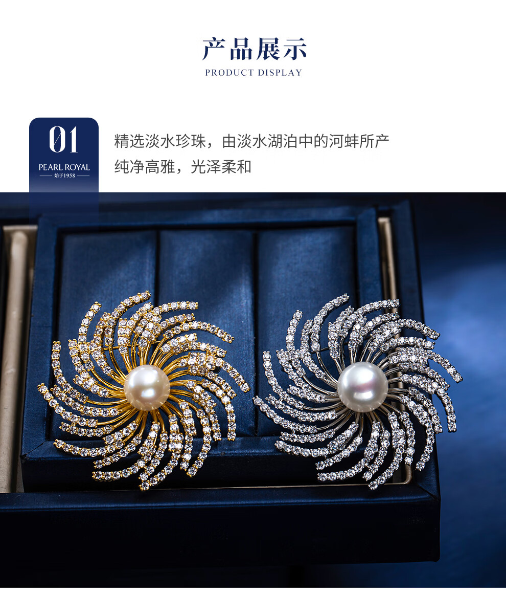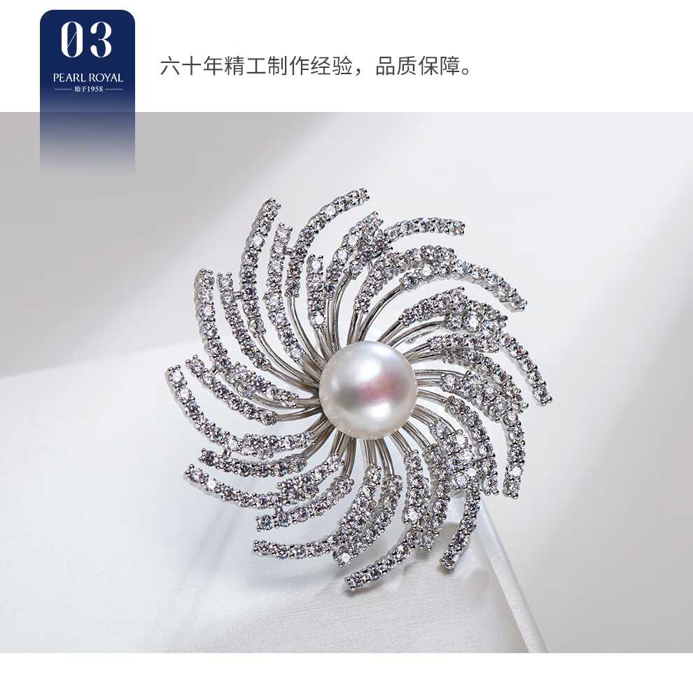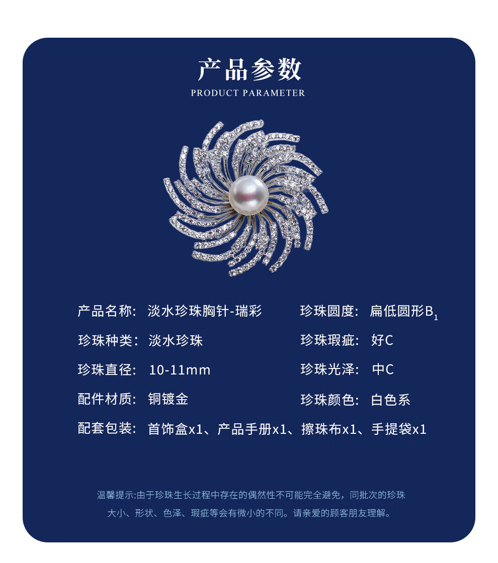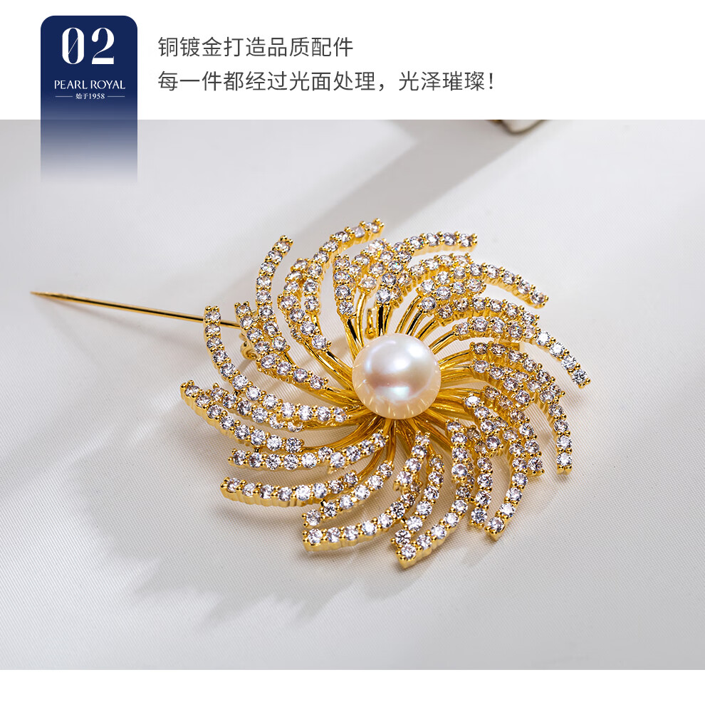 南珠宫瑞彩淡水珍珠胸针日常百搭年轻款生日礼物送女友C-CJZ072HD-J 10.0-11.0mm 金色