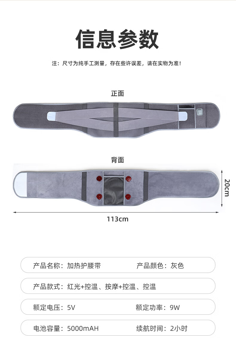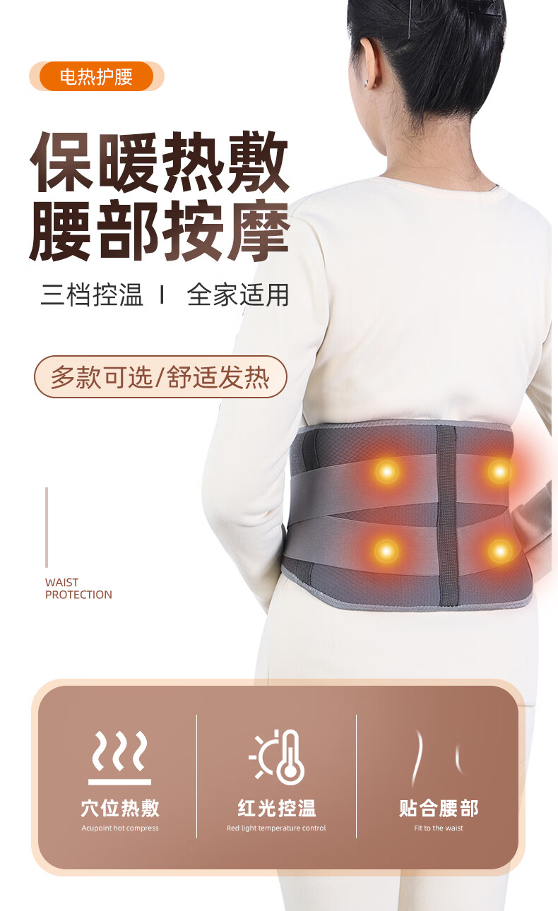 ZEAMO石墨稀充电加热护腰带艾灸热敷腰椎按摩腹部暖宫防寒发热神器四季 按摩+控温款 均码