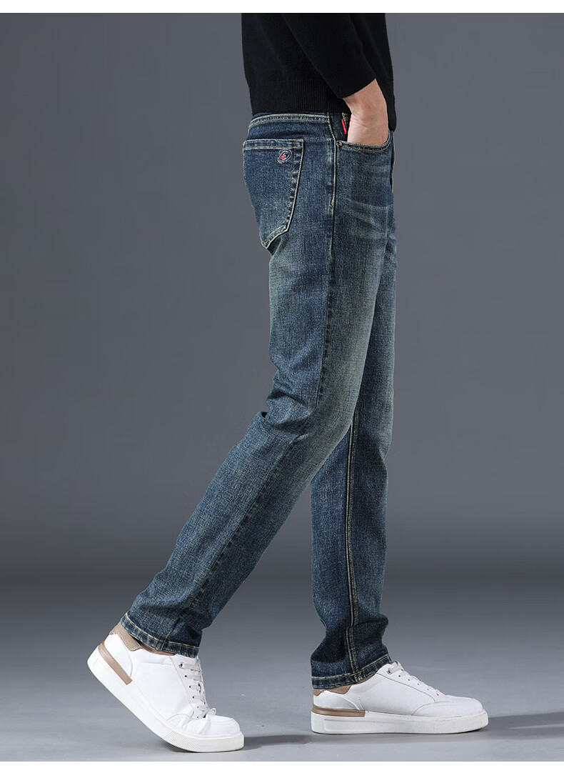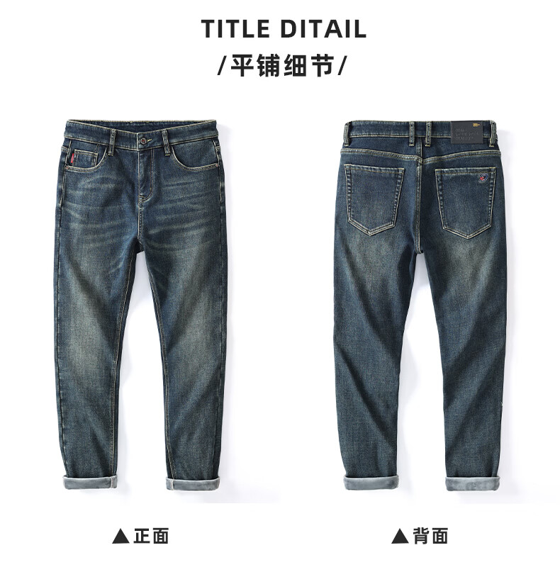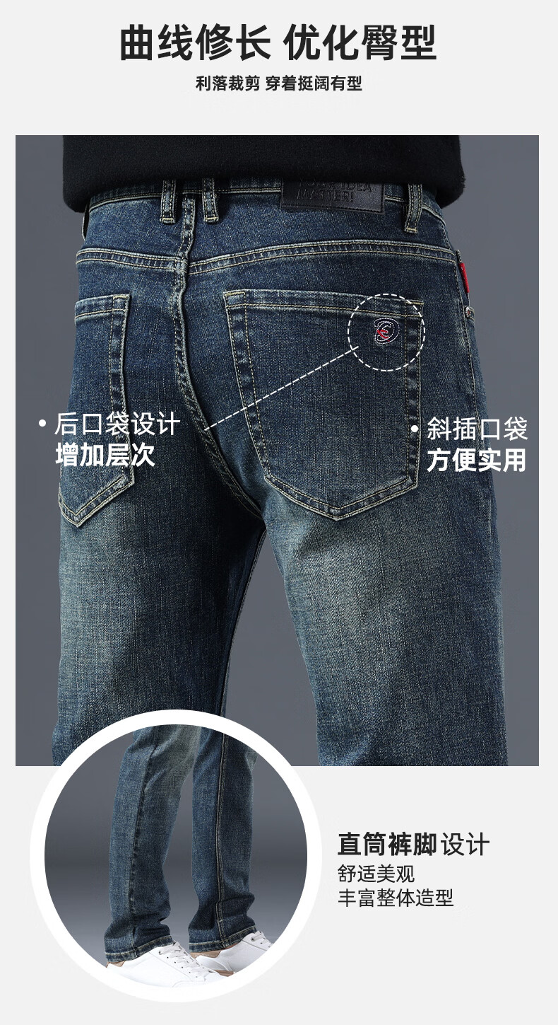 真维斯牛仔裤男春秋季高端棉弹商务直筒裤男新款复古简约百搭休闲长裤男 复古蓝 28