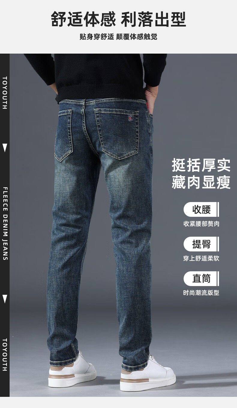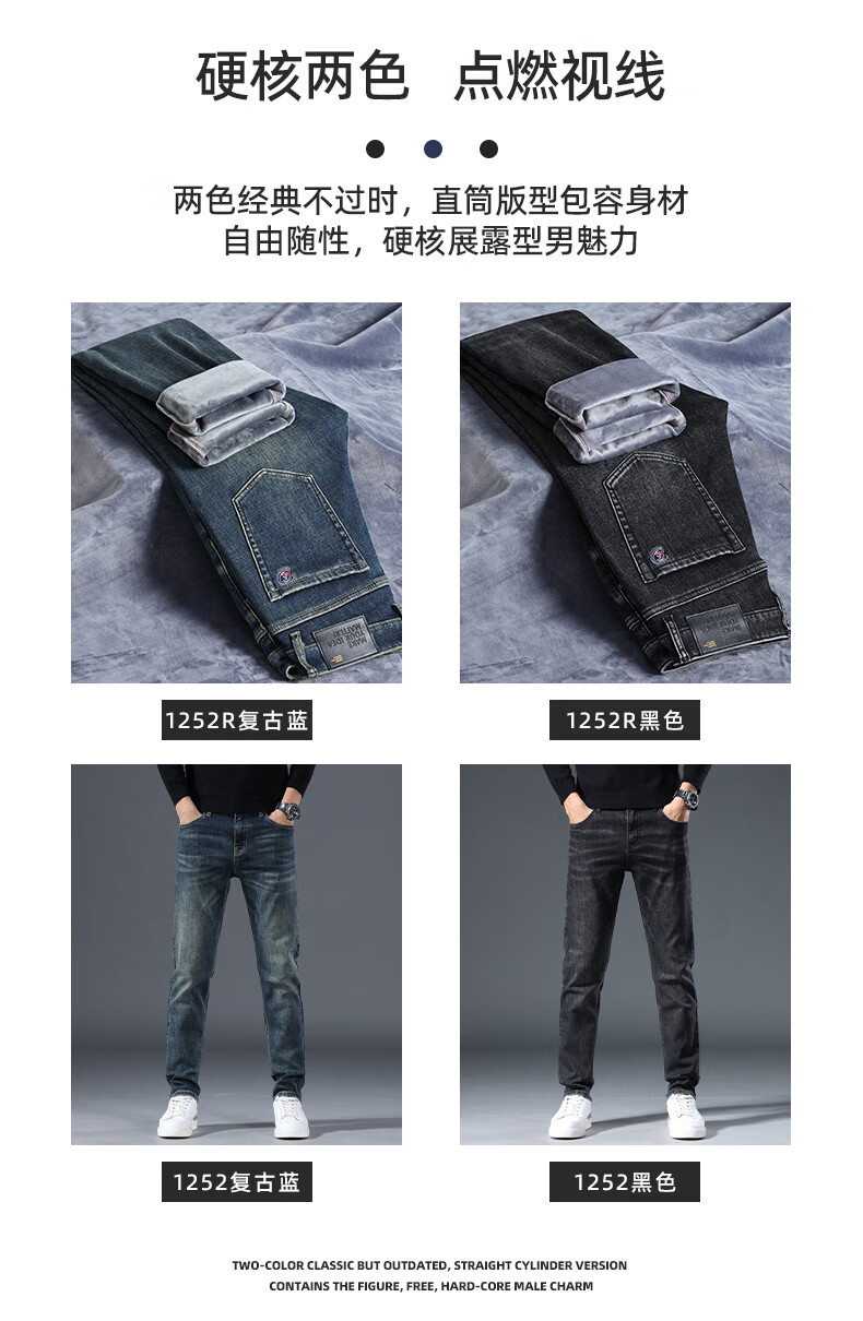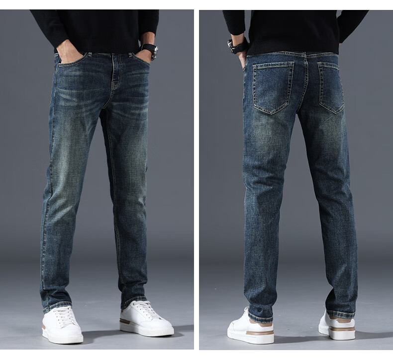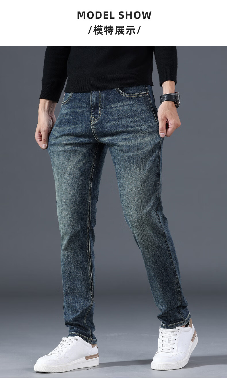 真维斯牛仔裤男春秋季高端棉弹商务直筒裤男新款复古简约百搭休闲长裤男 复古蓝 28