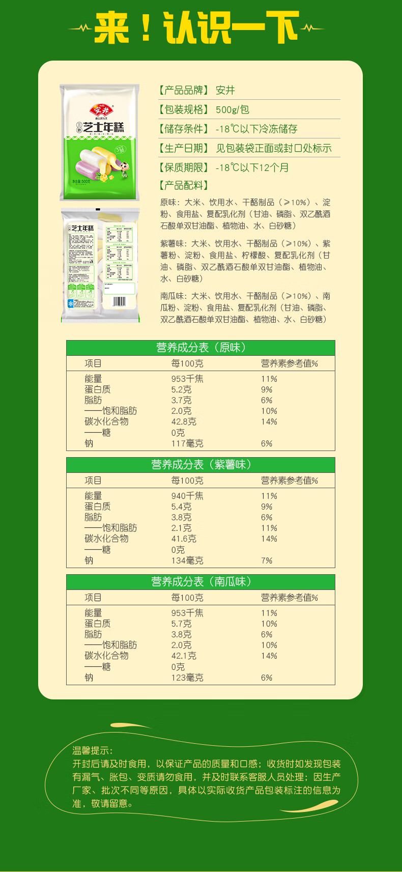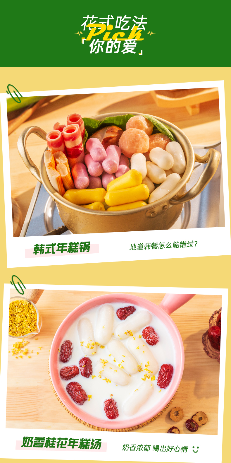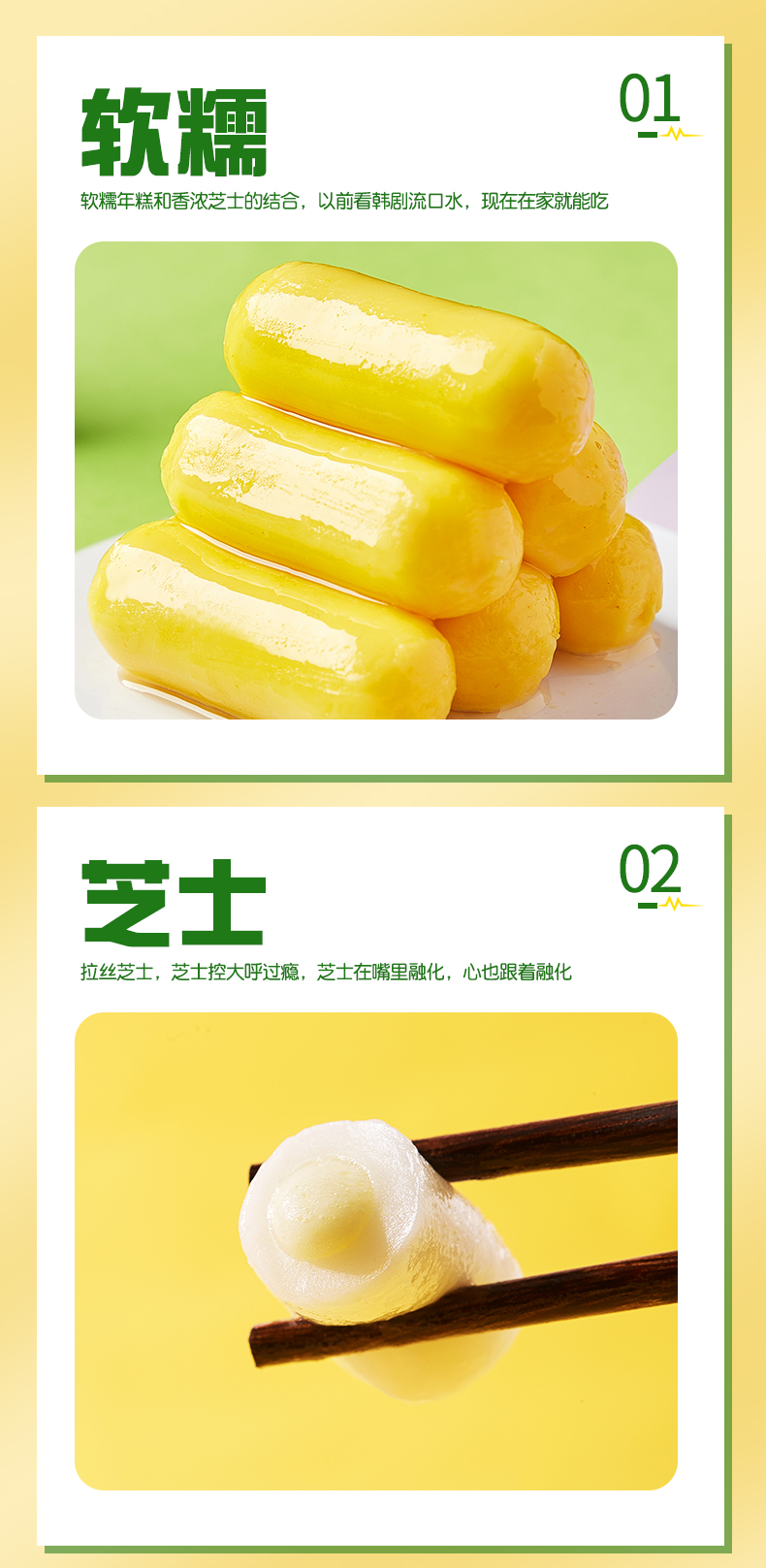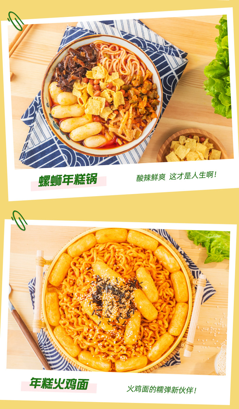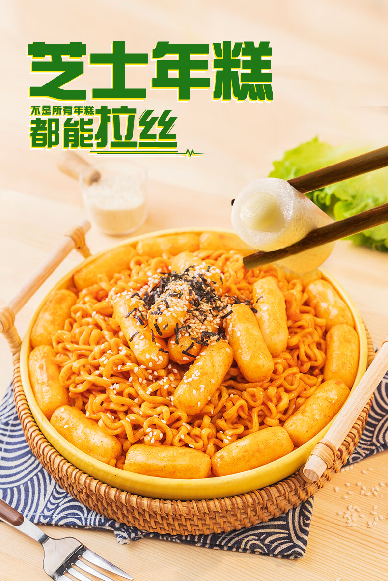 安井三色芝士年糕 500g 1包 约40个 夹心拉丝年糕条 韩国部队火锅