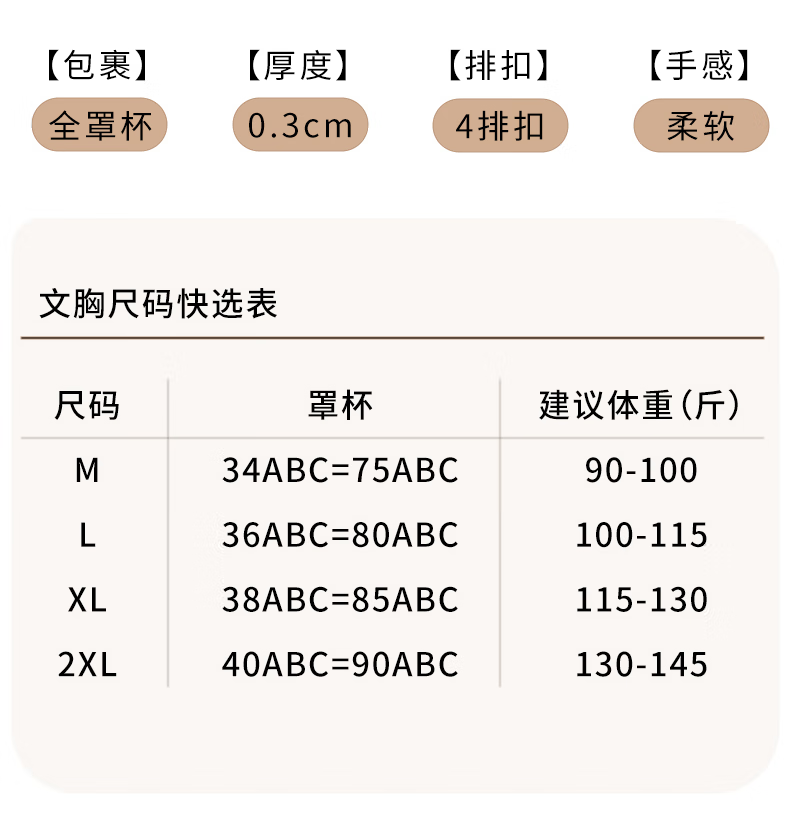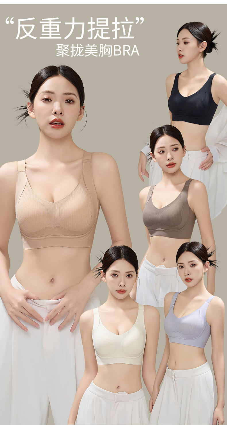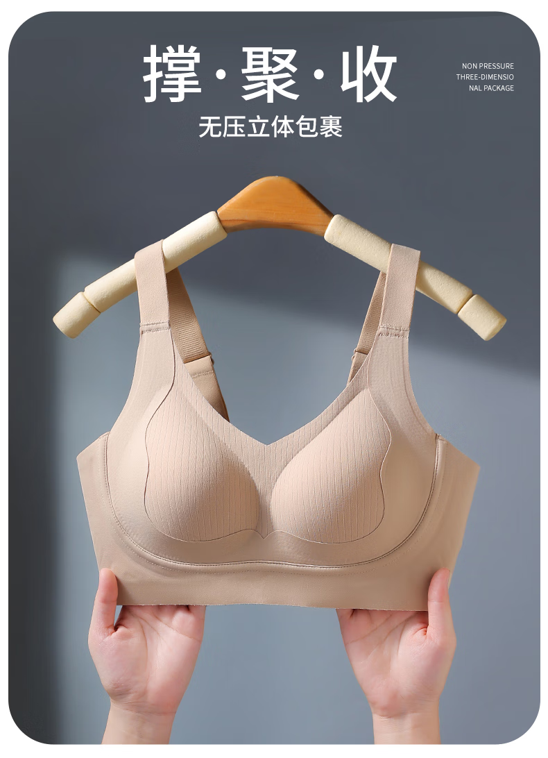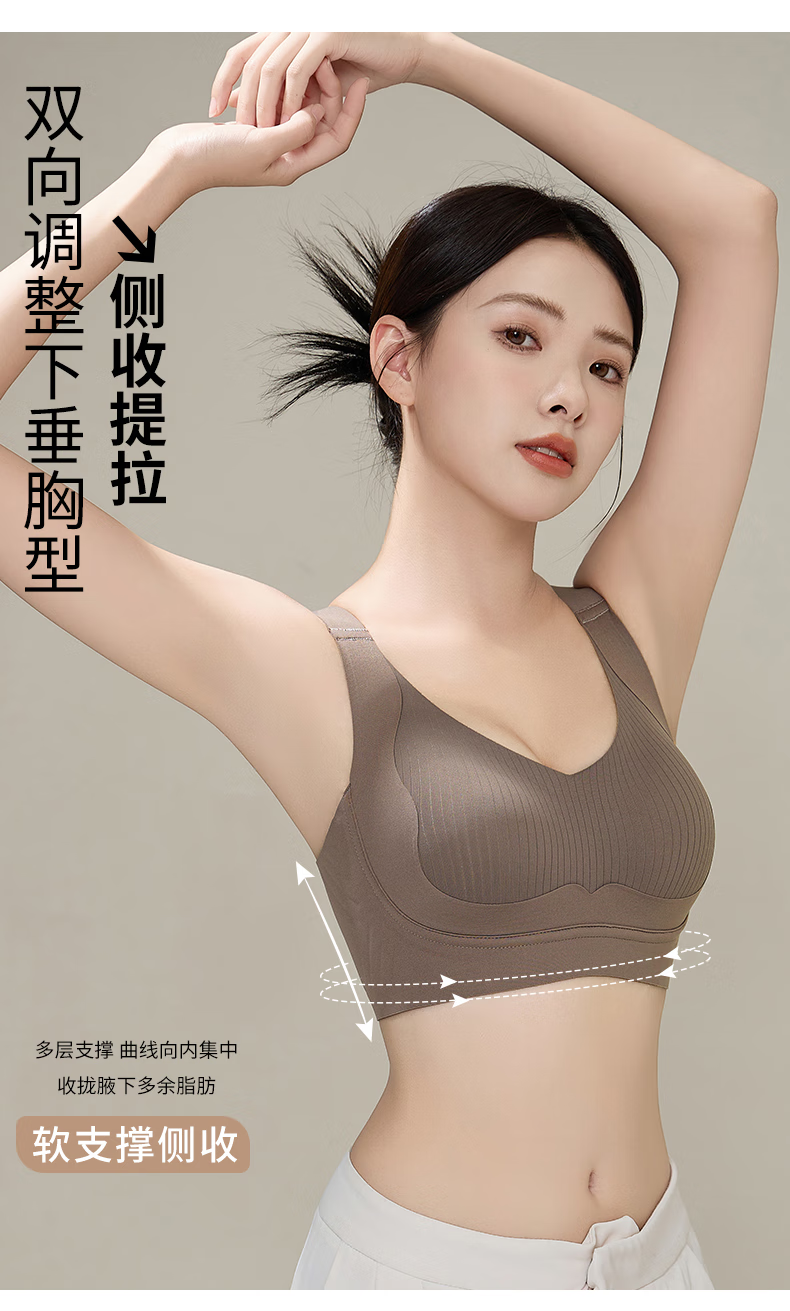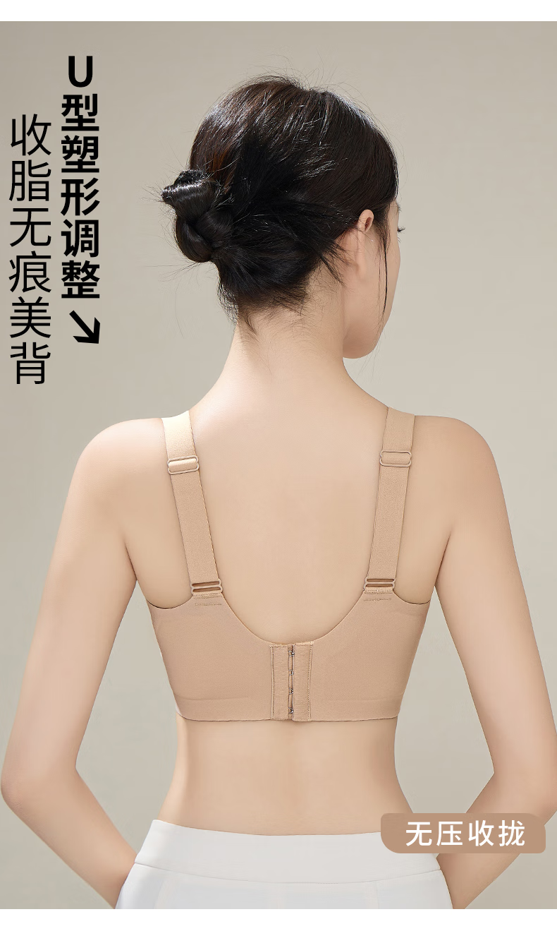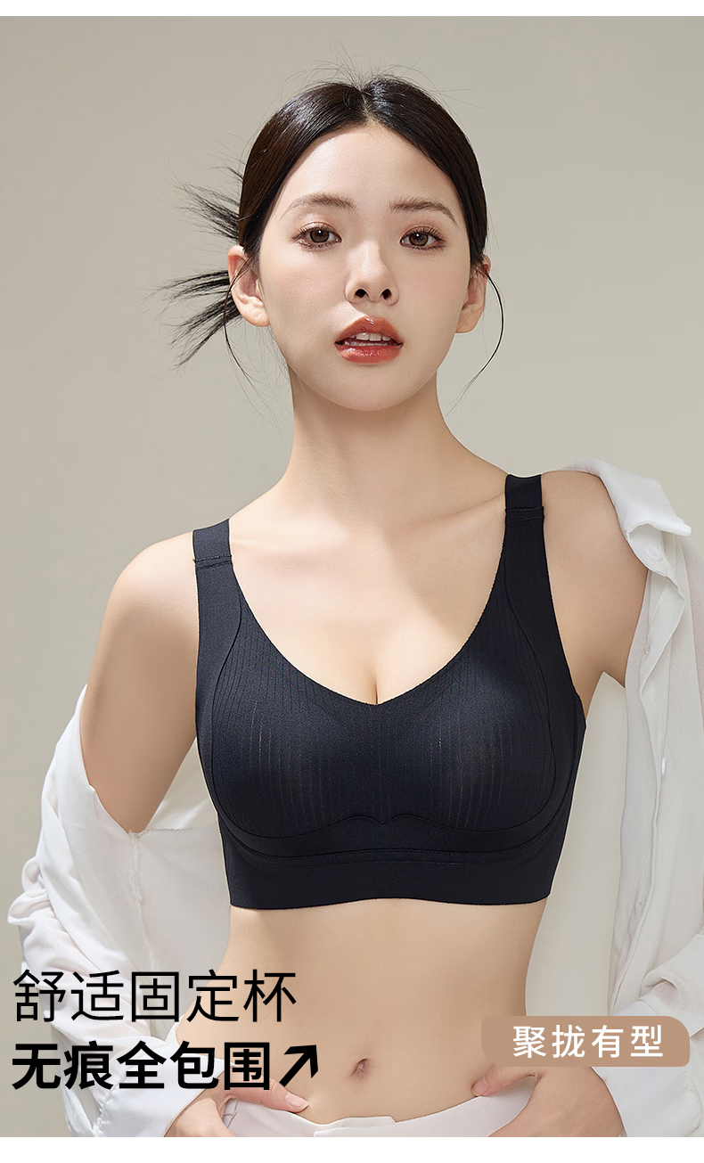 赫利兹大胸显小收副乳强提拉防下垂文胸无钢圈零压感塑形内衣 黑色 XL 38ABC=85ABC 115-130斤