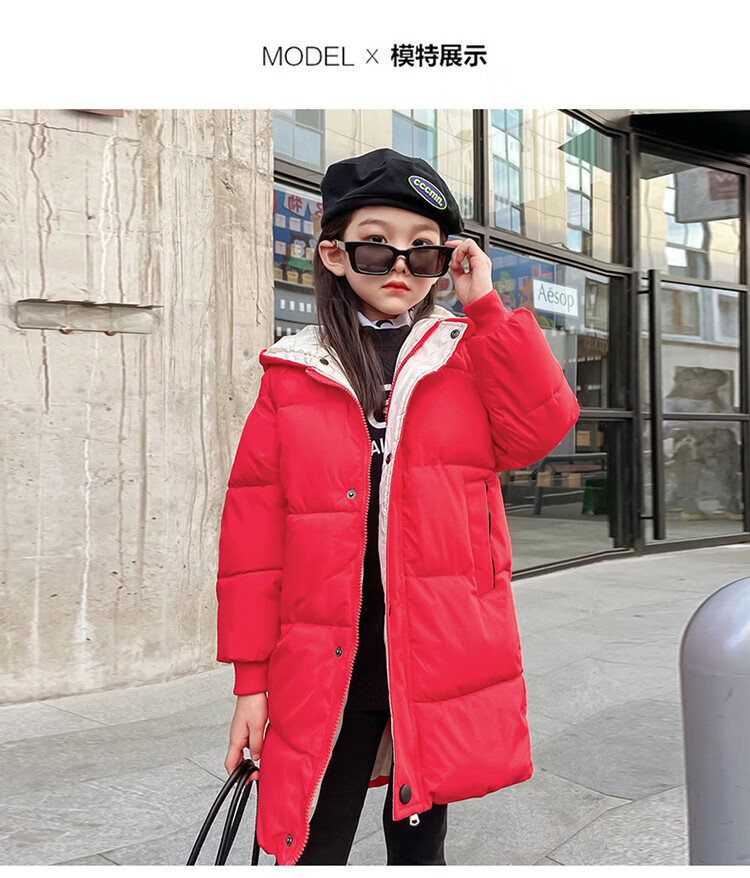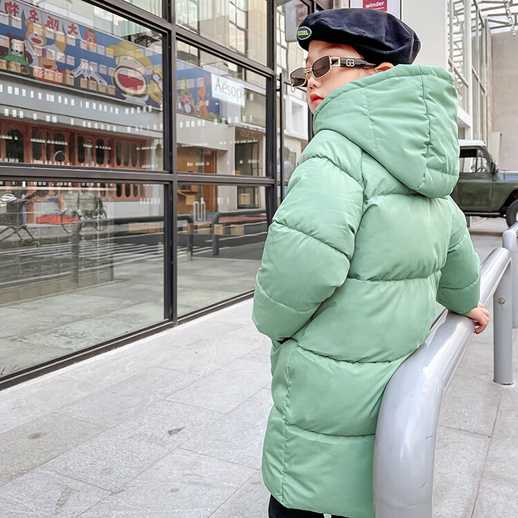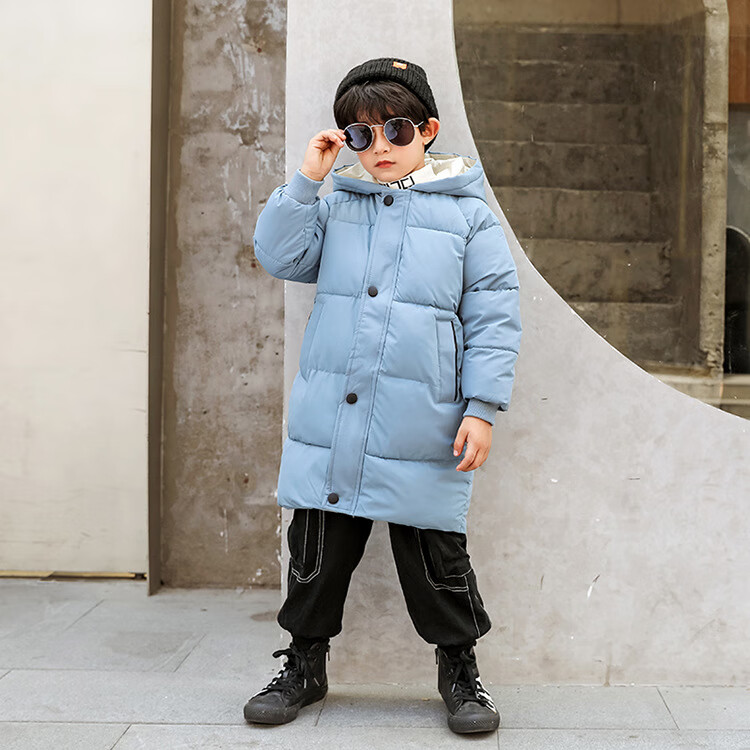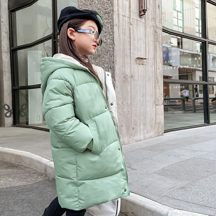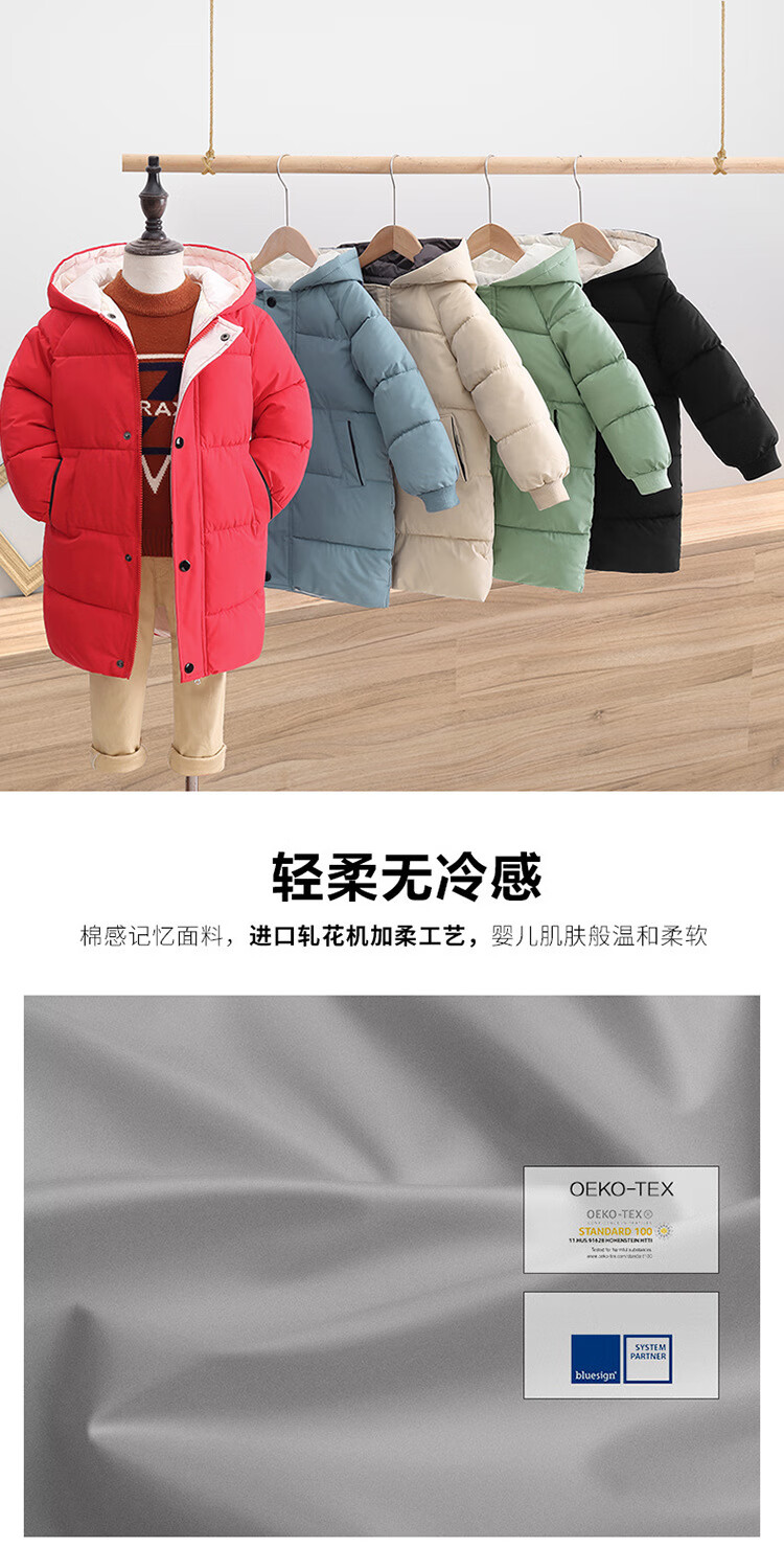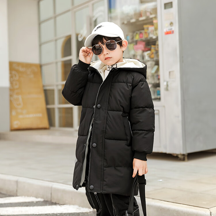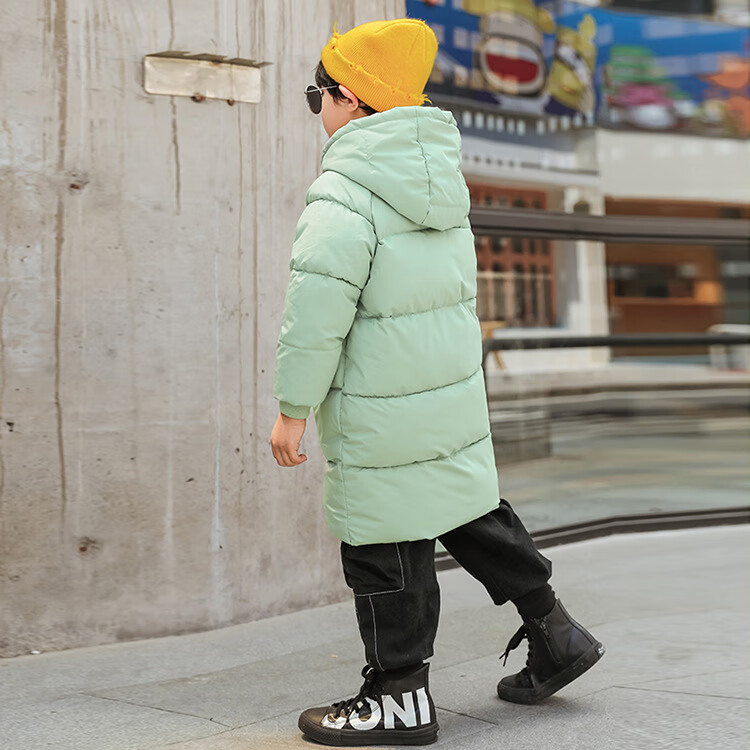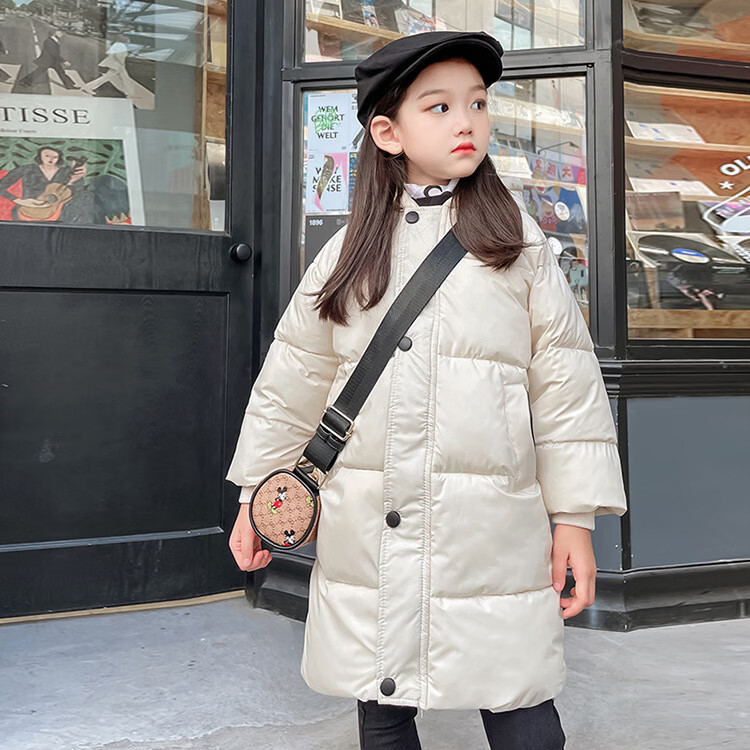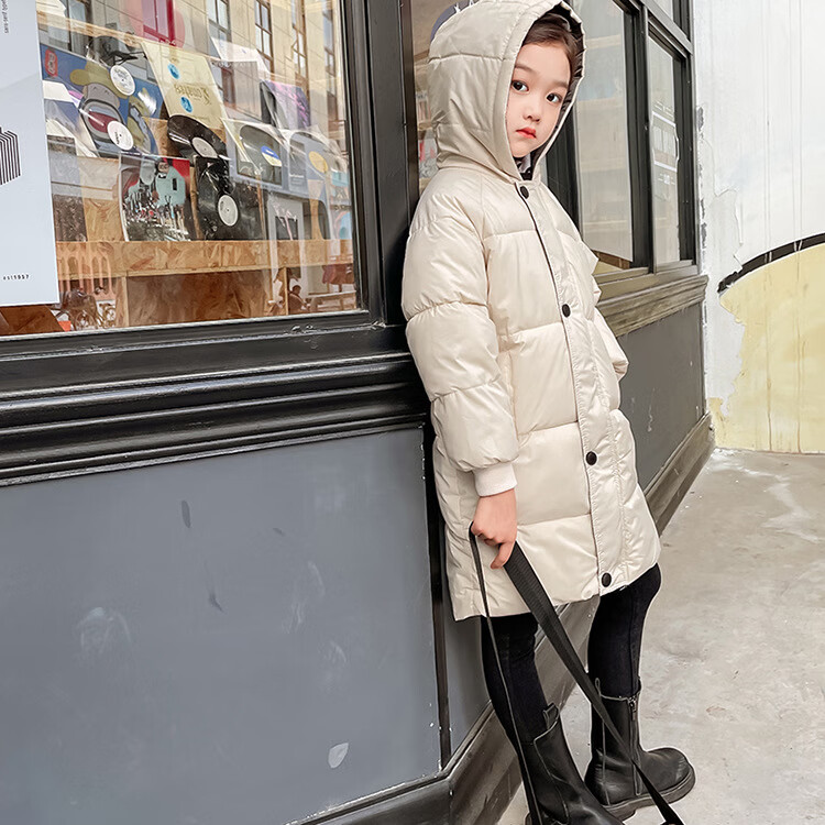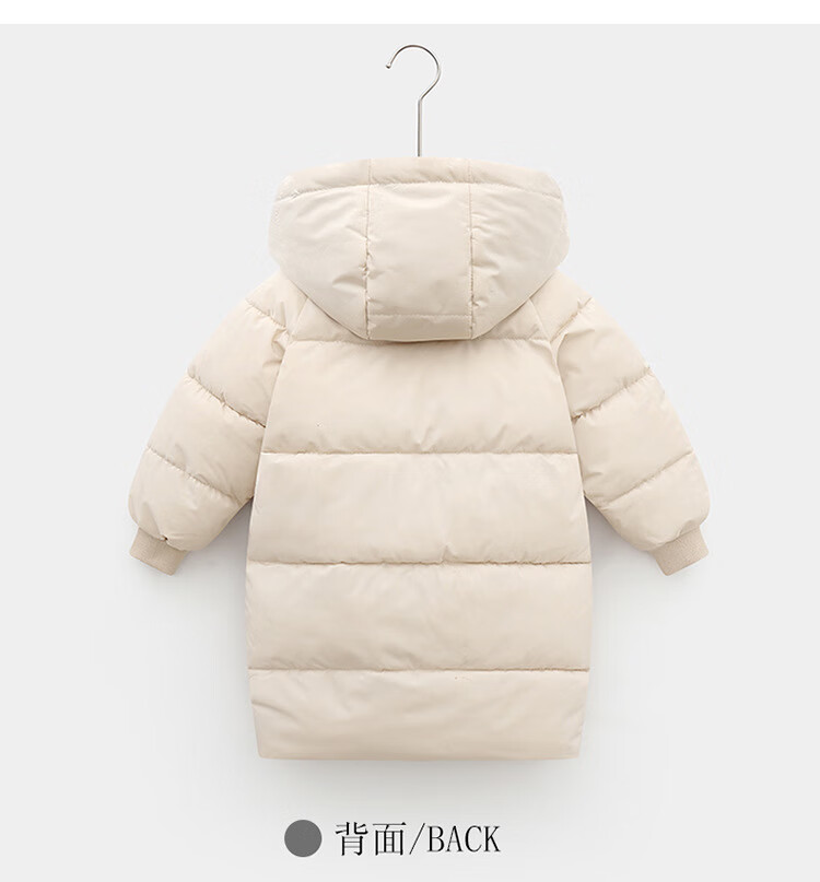贝婴初(BEIYINGCHU)极寒儿童棉服加长款中大童加厚棉外套新款秋冬连帽儿童外套 米白色 150