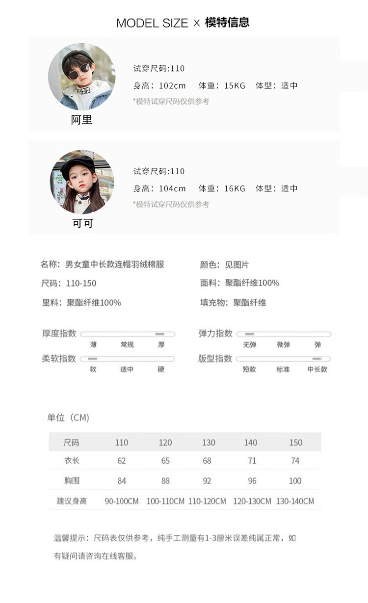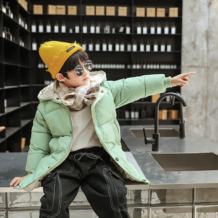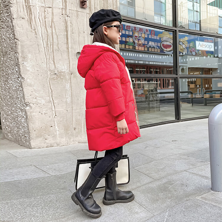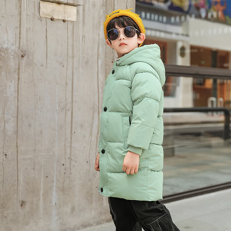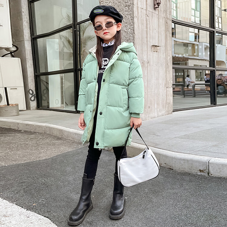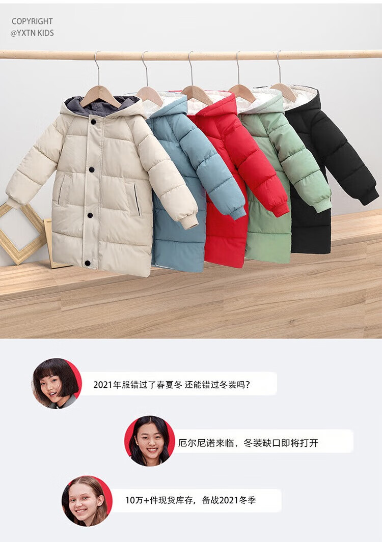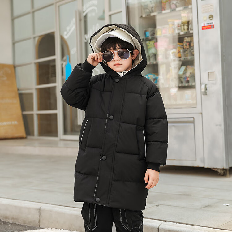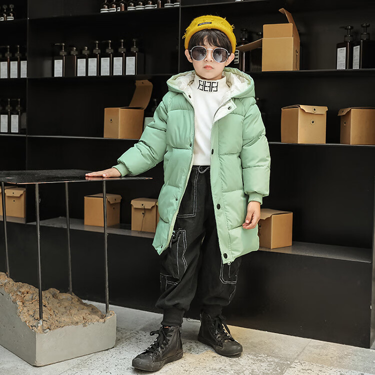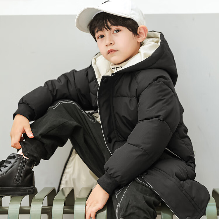 贝婴初(BEIYINGCHU)极寒儿童棉服加长款中大童加厚棉外套新款秋冬连帽儿童外套 米白色 150