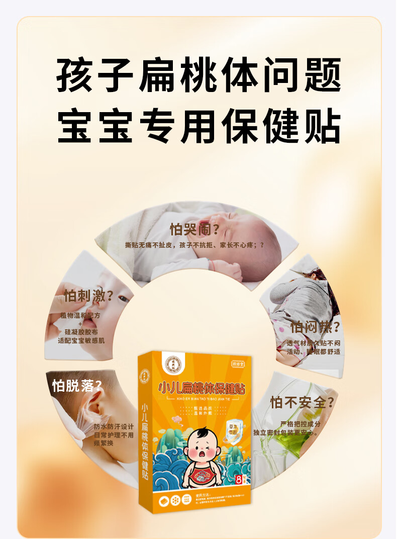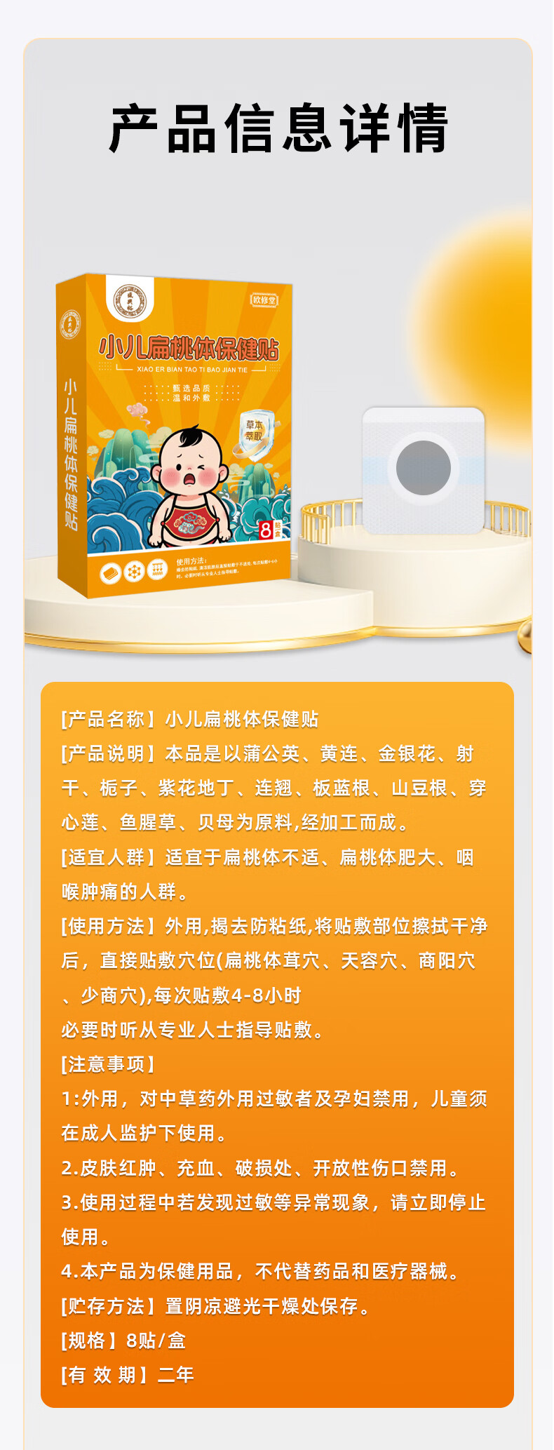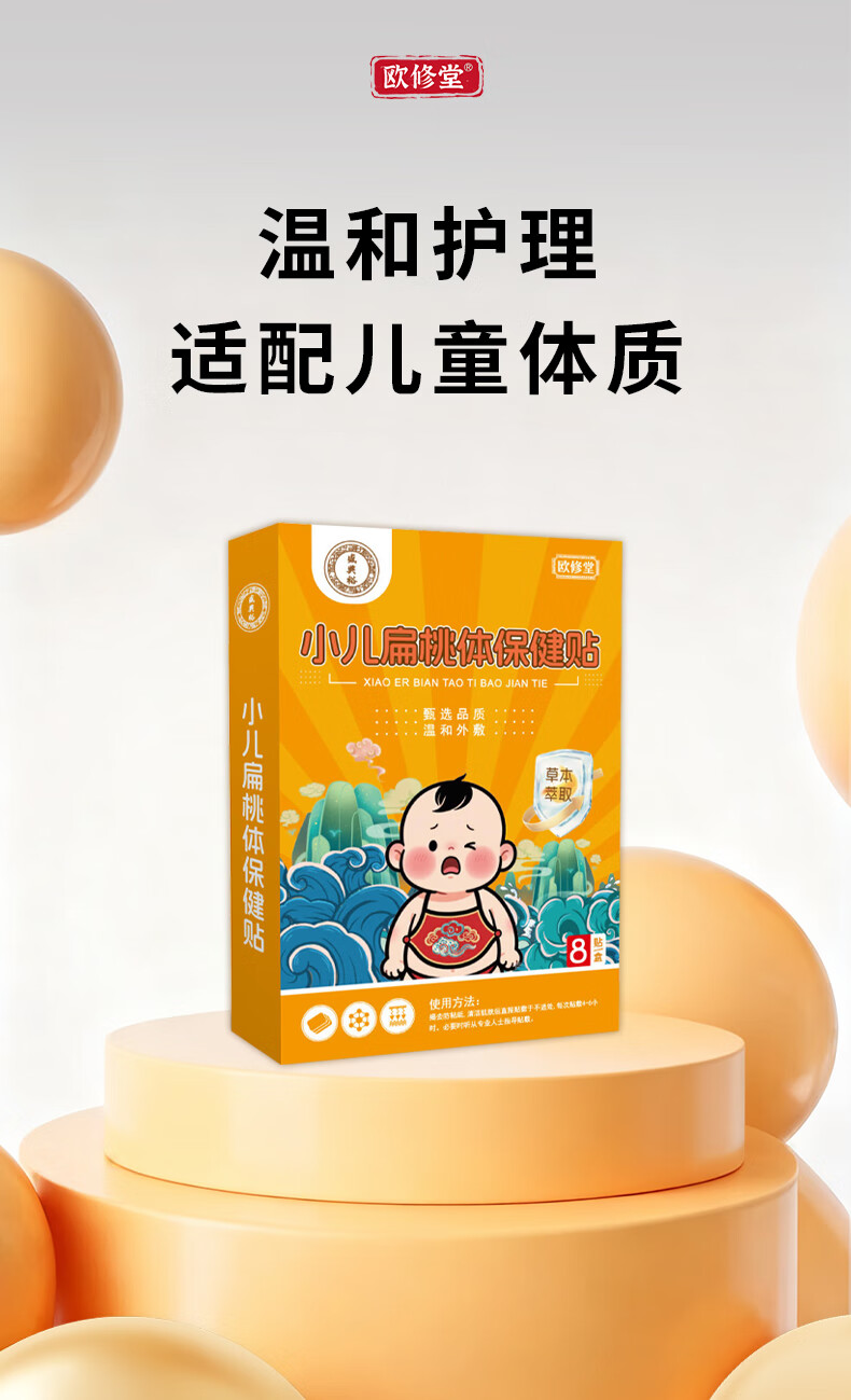 欧修堂小儿咽炎贴扁桃体肥大发炎儿童咽炎咽喉疼痛红肿发炎治中疗药贴 两盒装BT