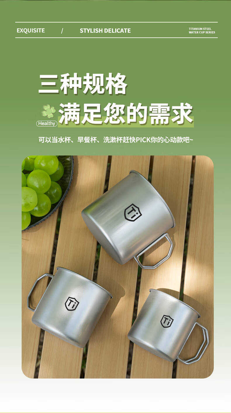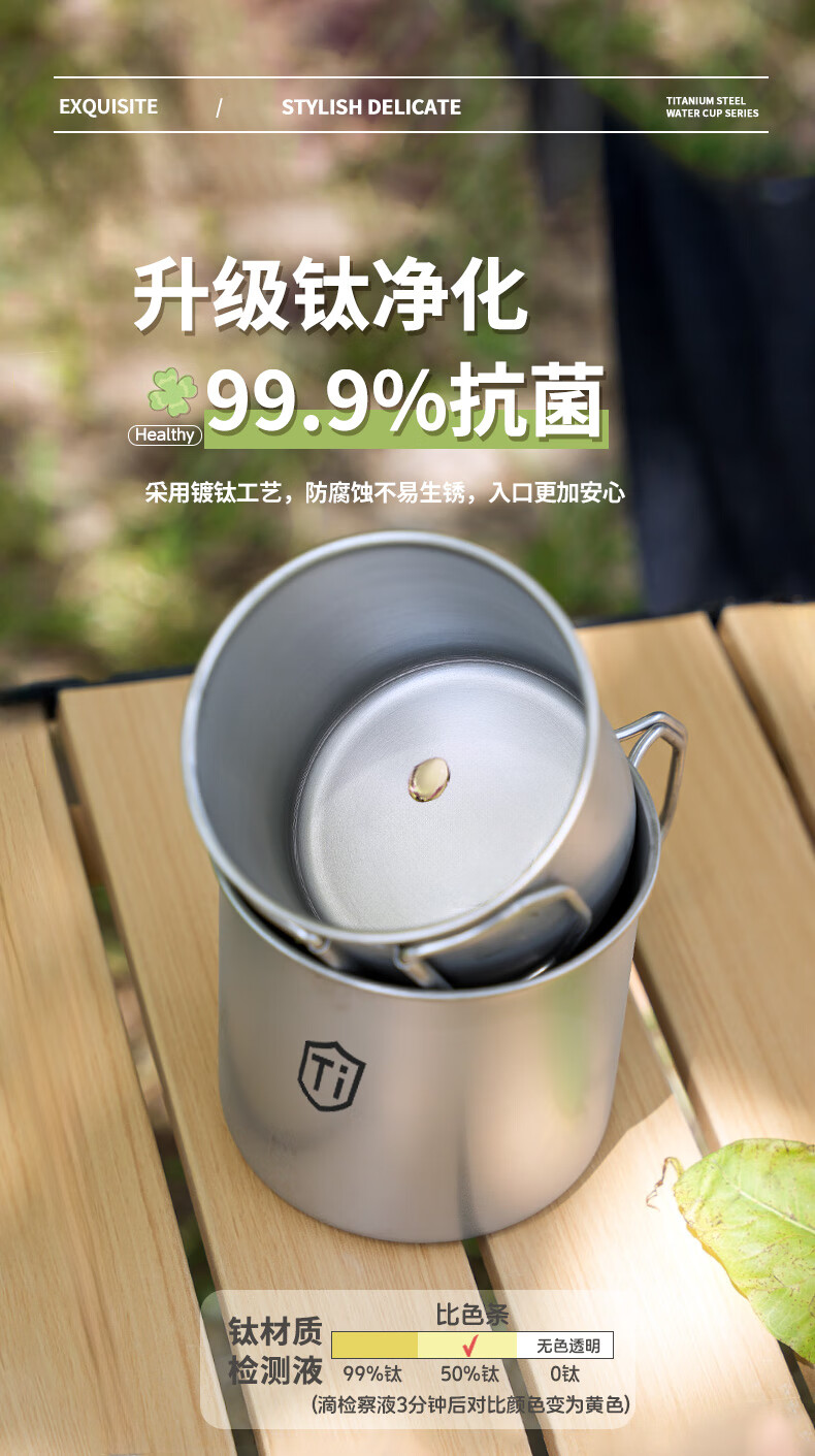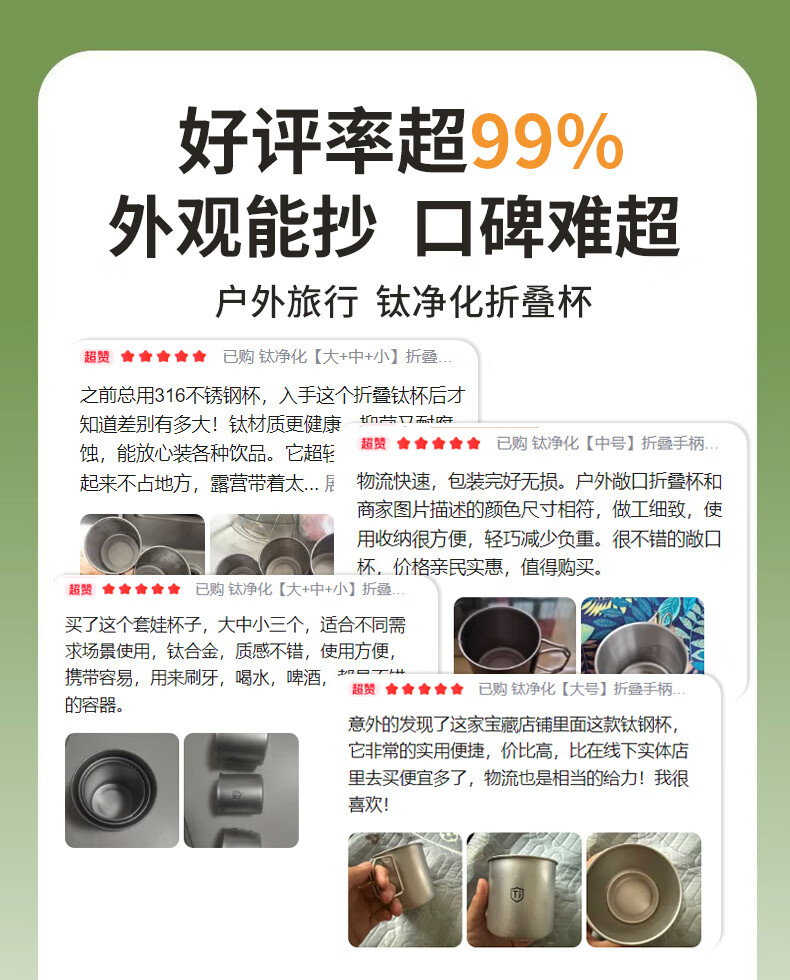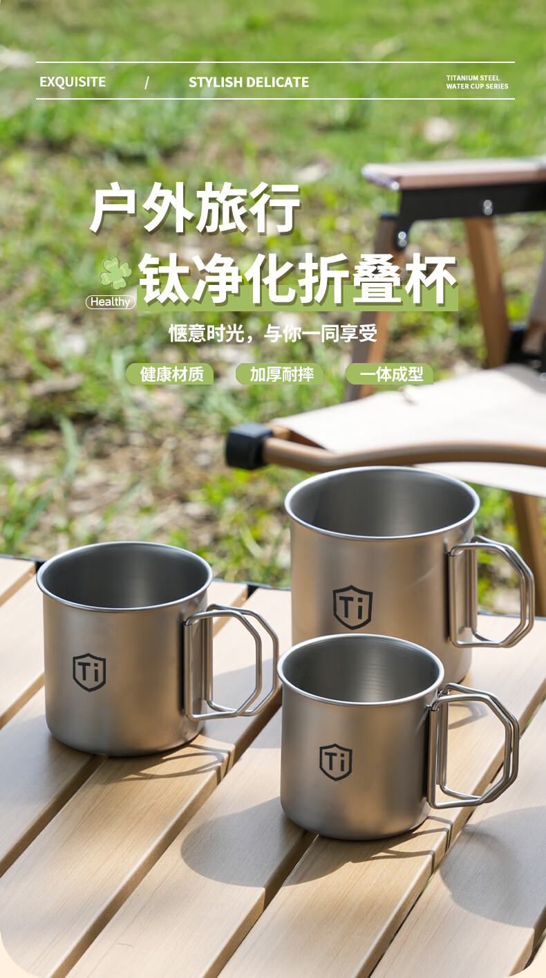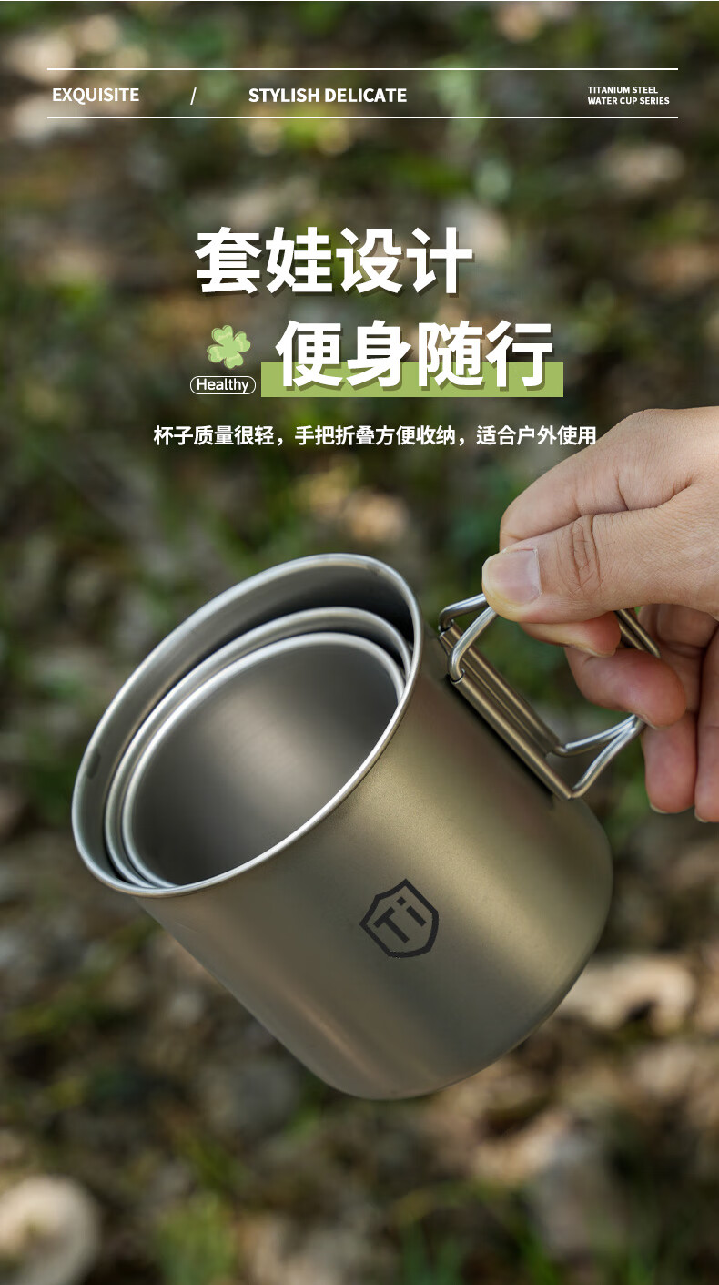 【精选直发】钛净化水杯家用防摔户外男女生便捷式折叠手柄随行敞 钛净化【大+中+小】折叠手柄口杯