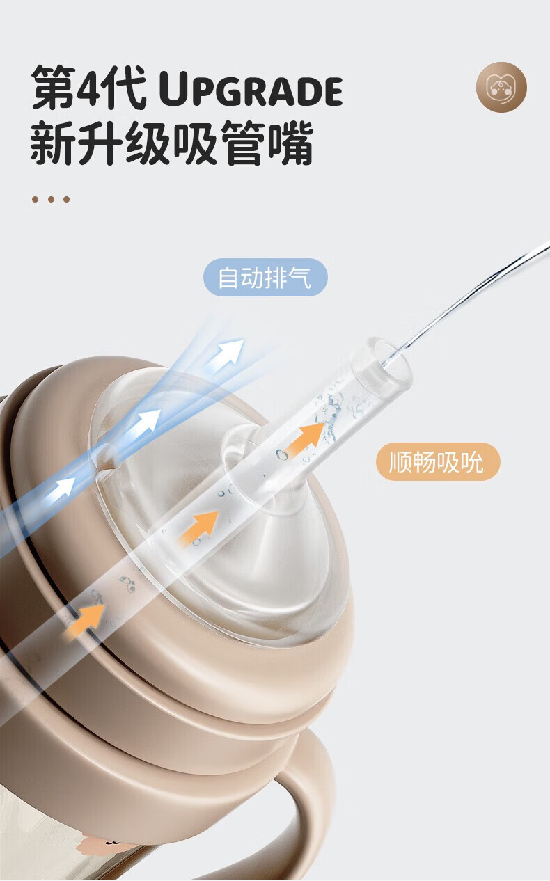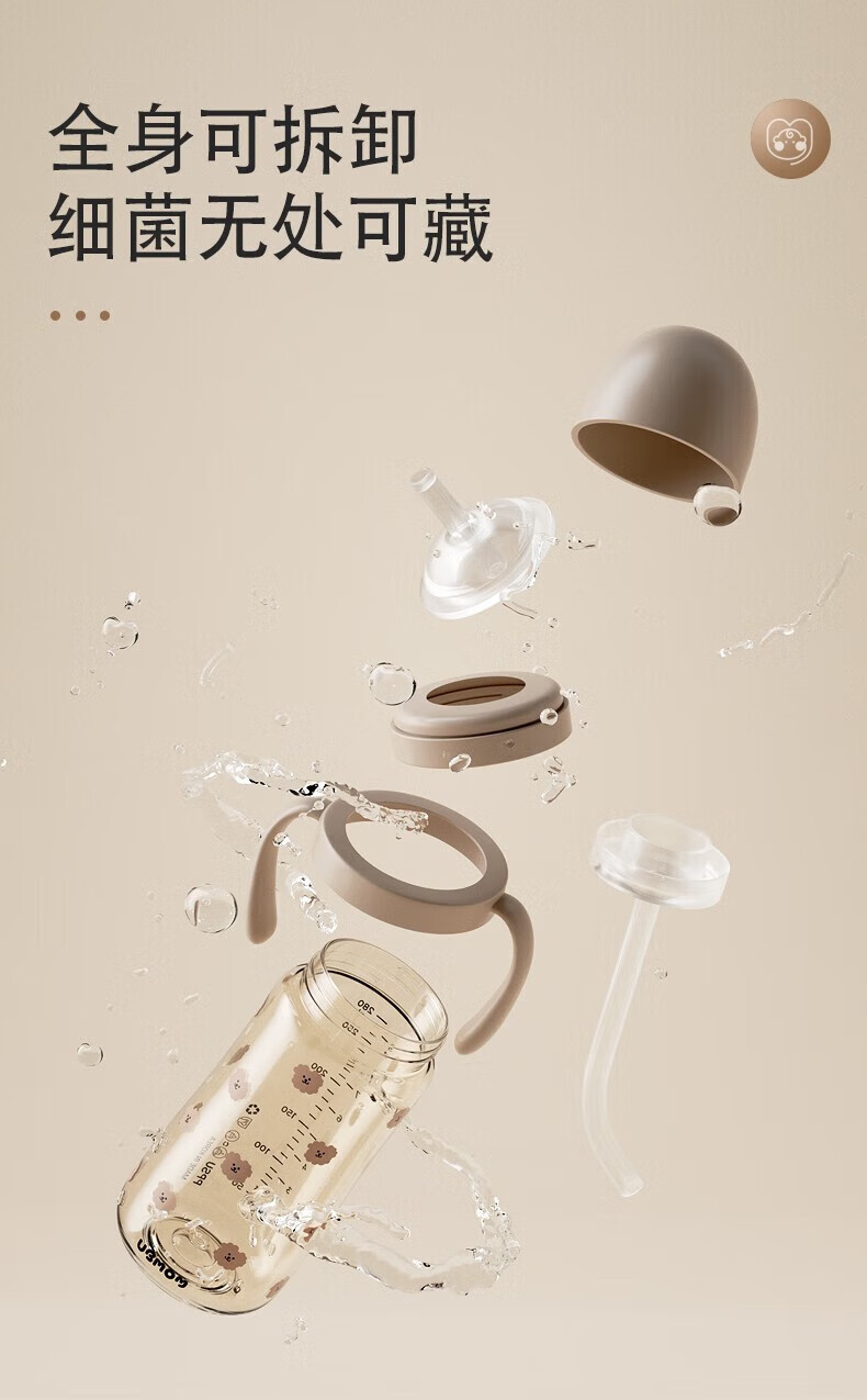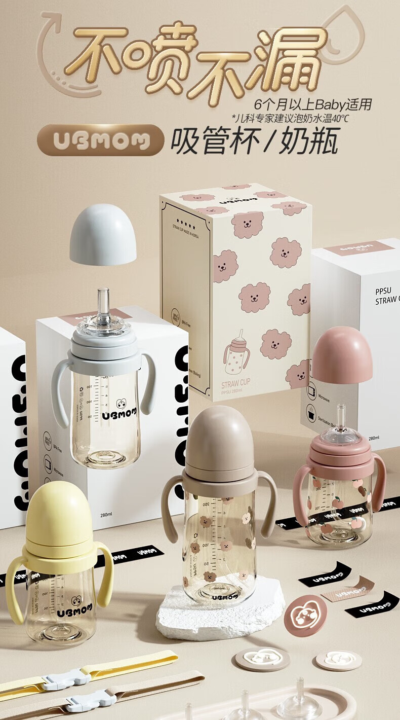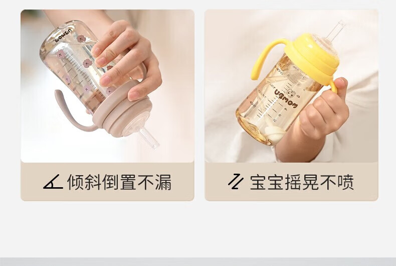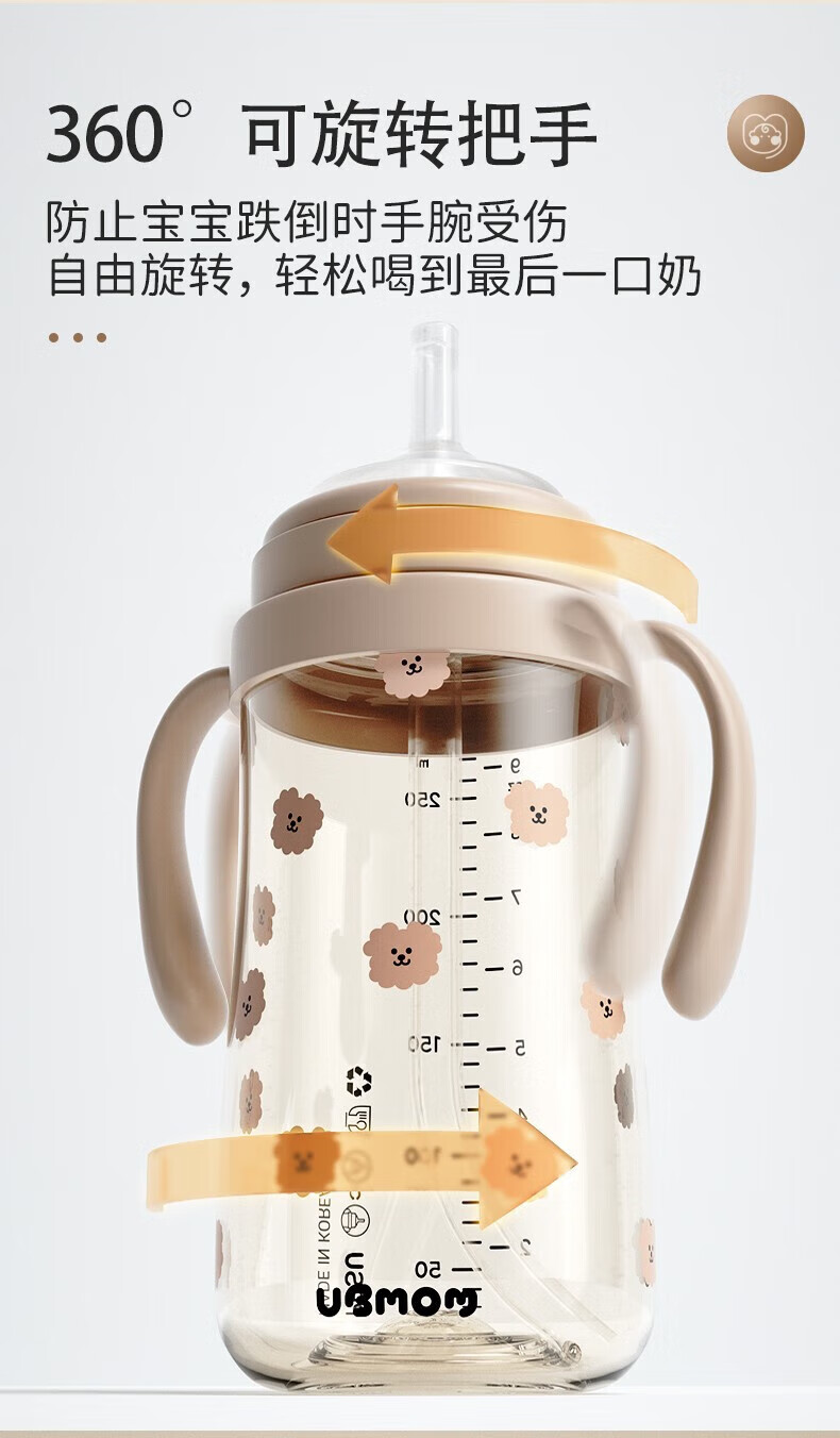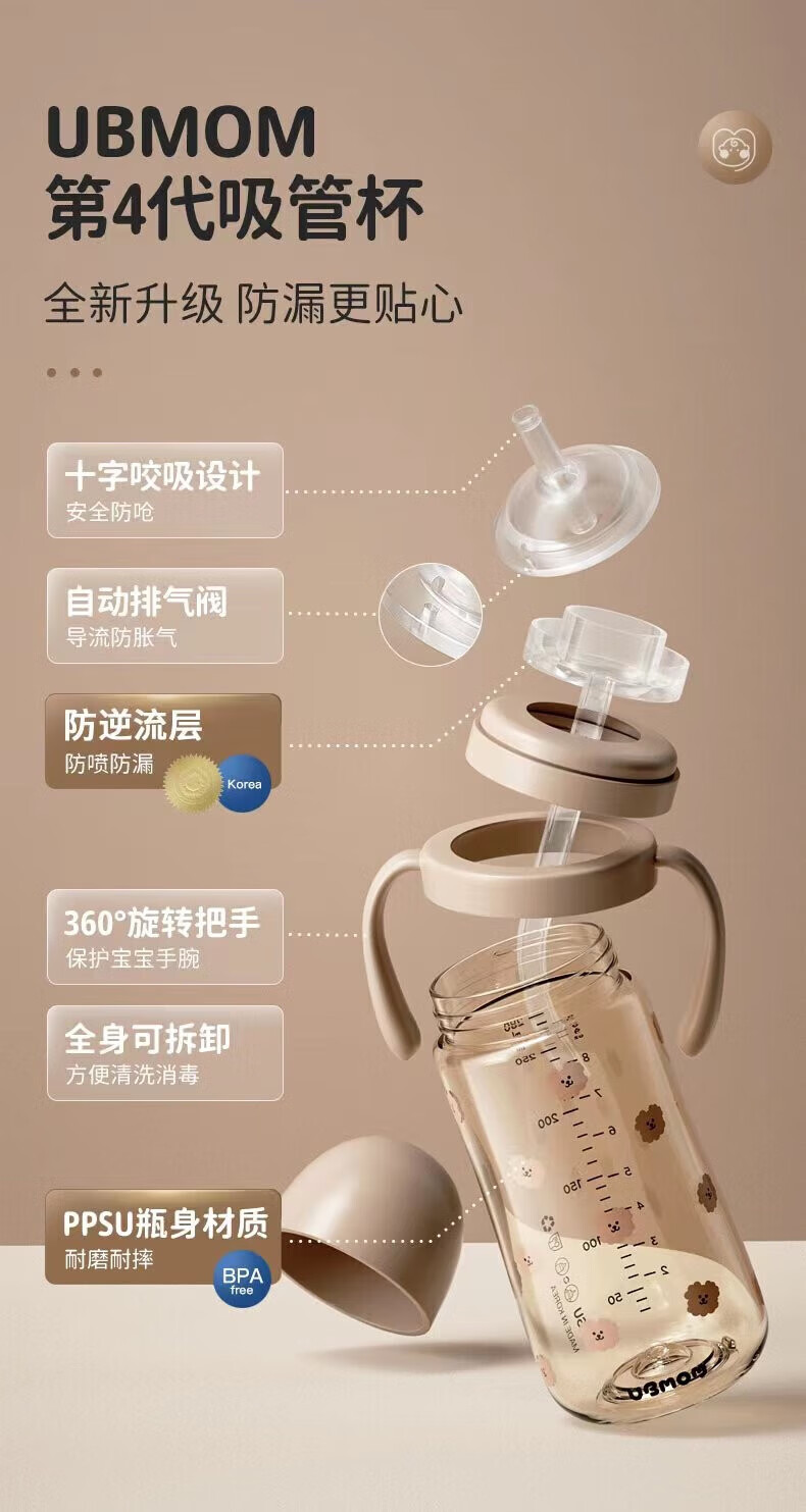 UBMOM吸管杯婴儿宝宝学饮杯儿童喝水杯直饮杯牛奶杯吸管奶瓶一岁以上 咖色-专利防喷 280ml