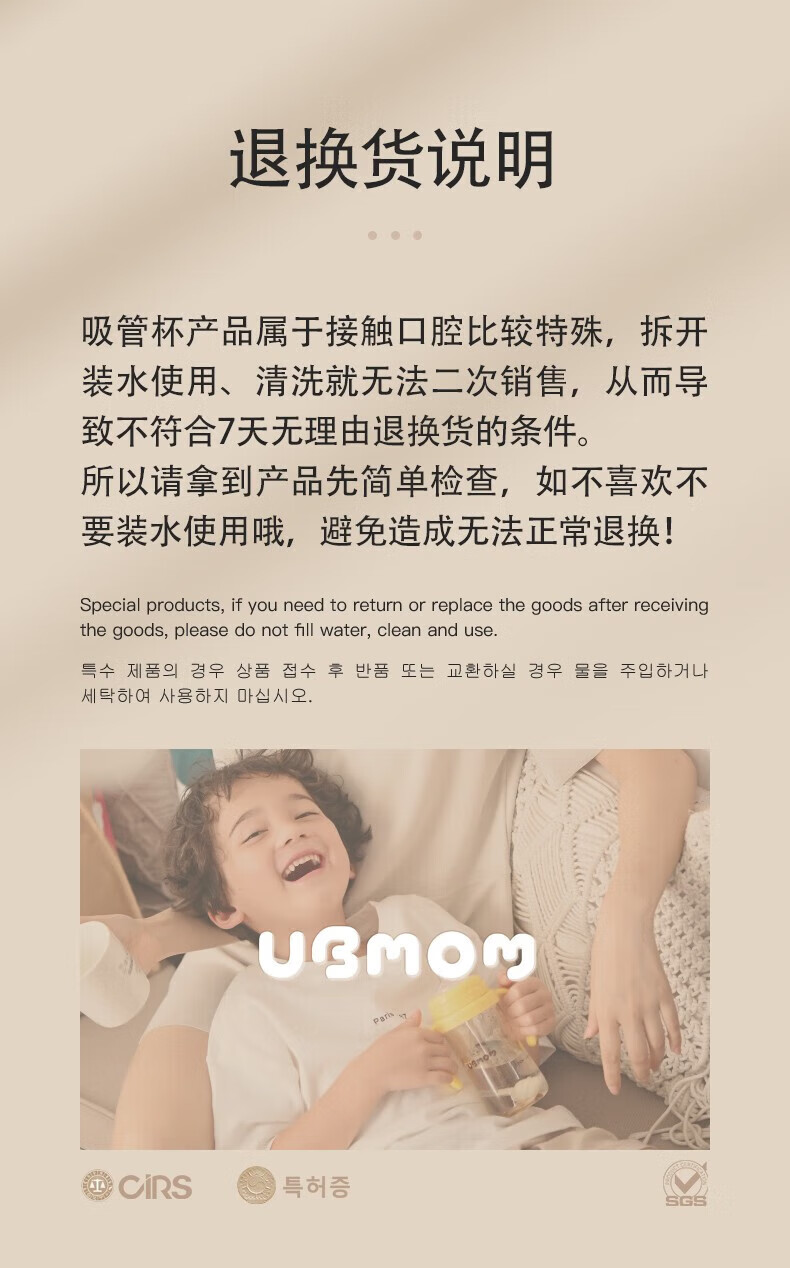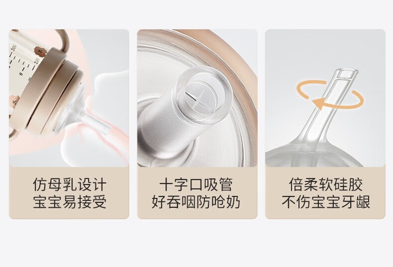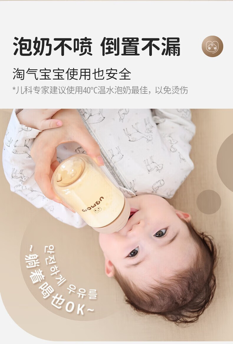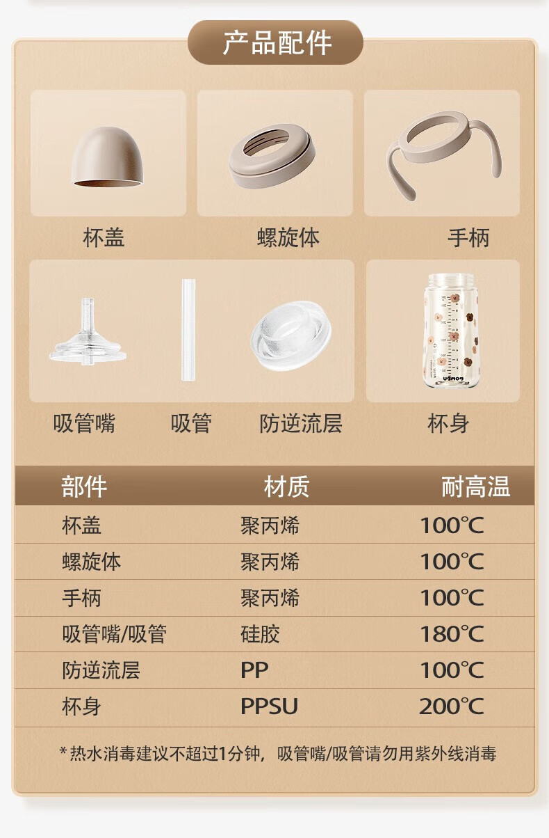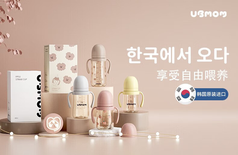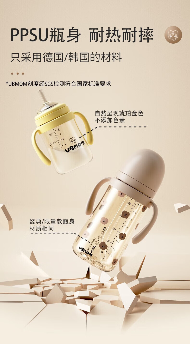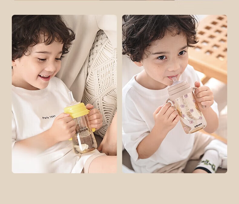 UBMOM吸管杯婴儿宝宝学饮杯儿童喝水杯直饮杯牛奶杯吸管奶瓶一岁以上 咖色-专利防喷 280ml