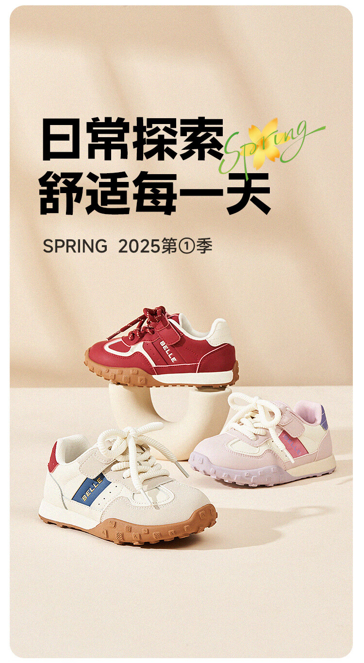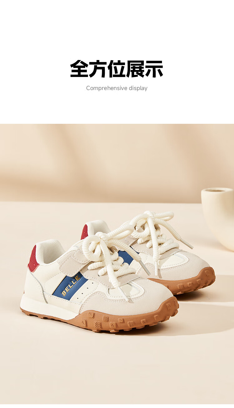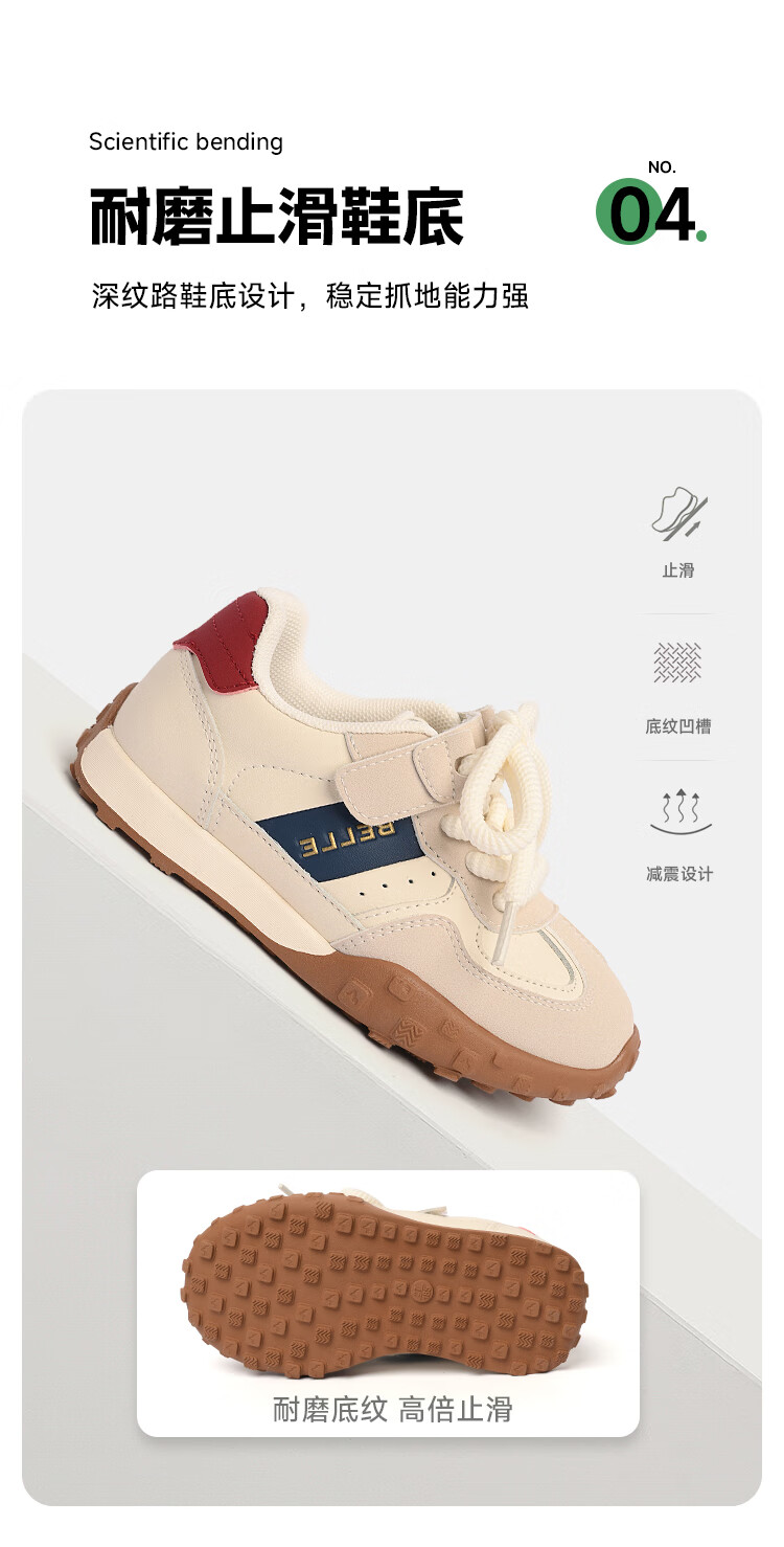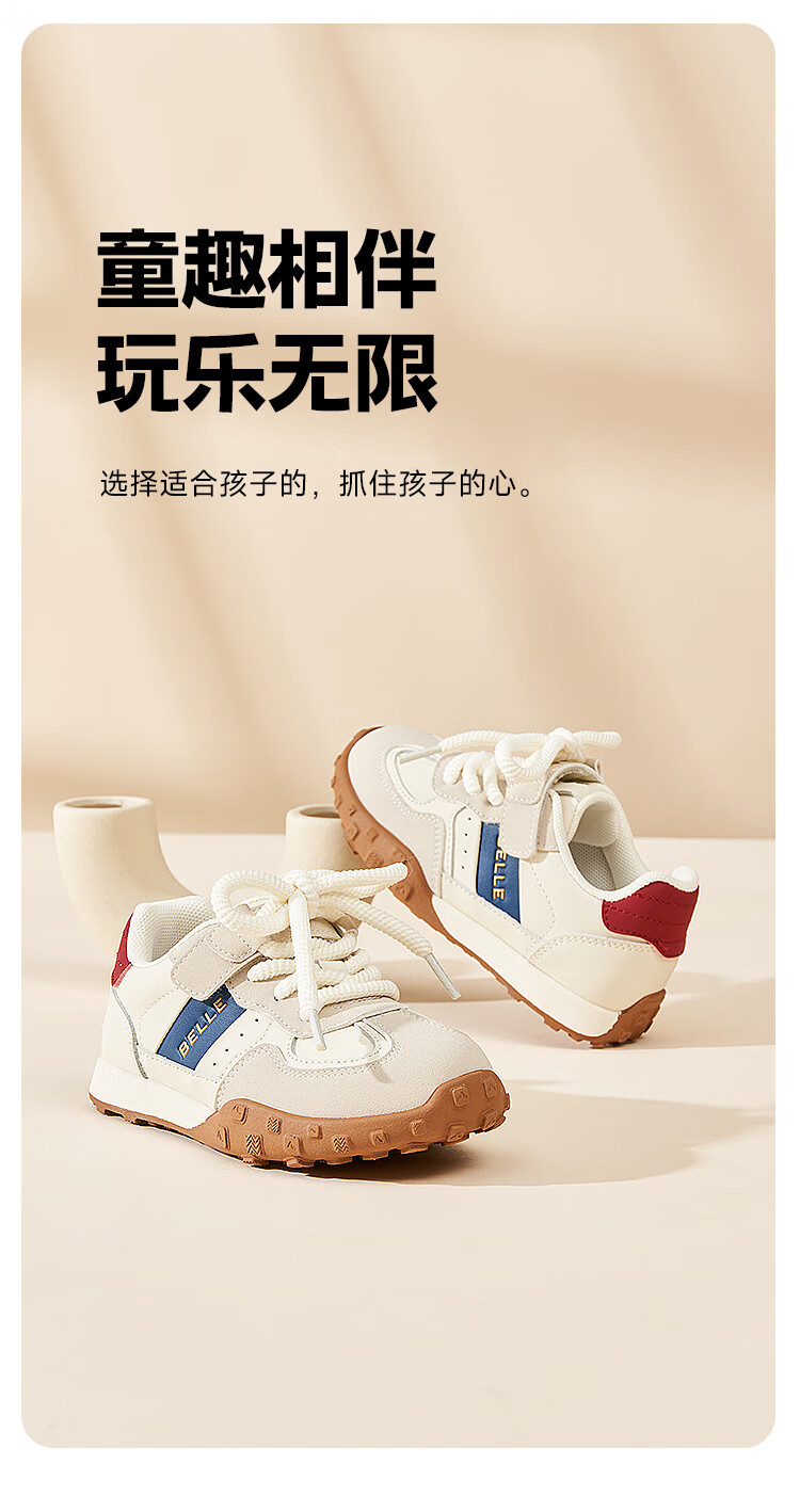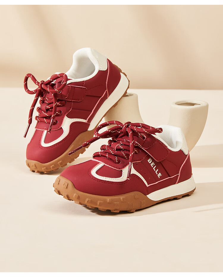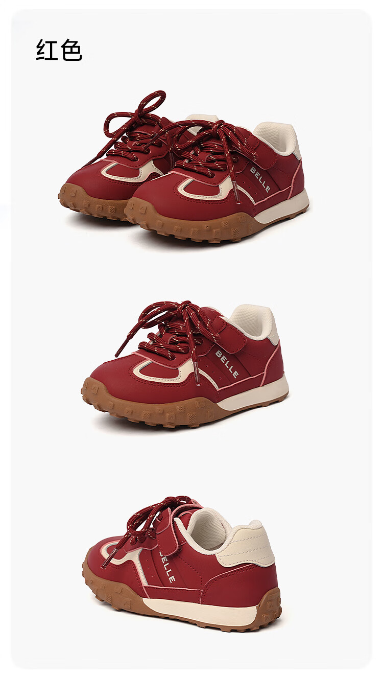 百丽儿童运动鞋25秋新款女童男童休闲鞋便捷魔术贴百搭大童跑步鞋 红色 30 【建议脚长186-191mm】