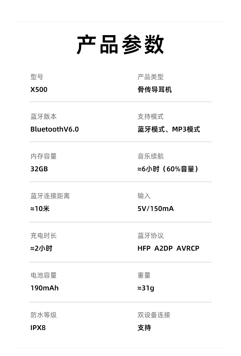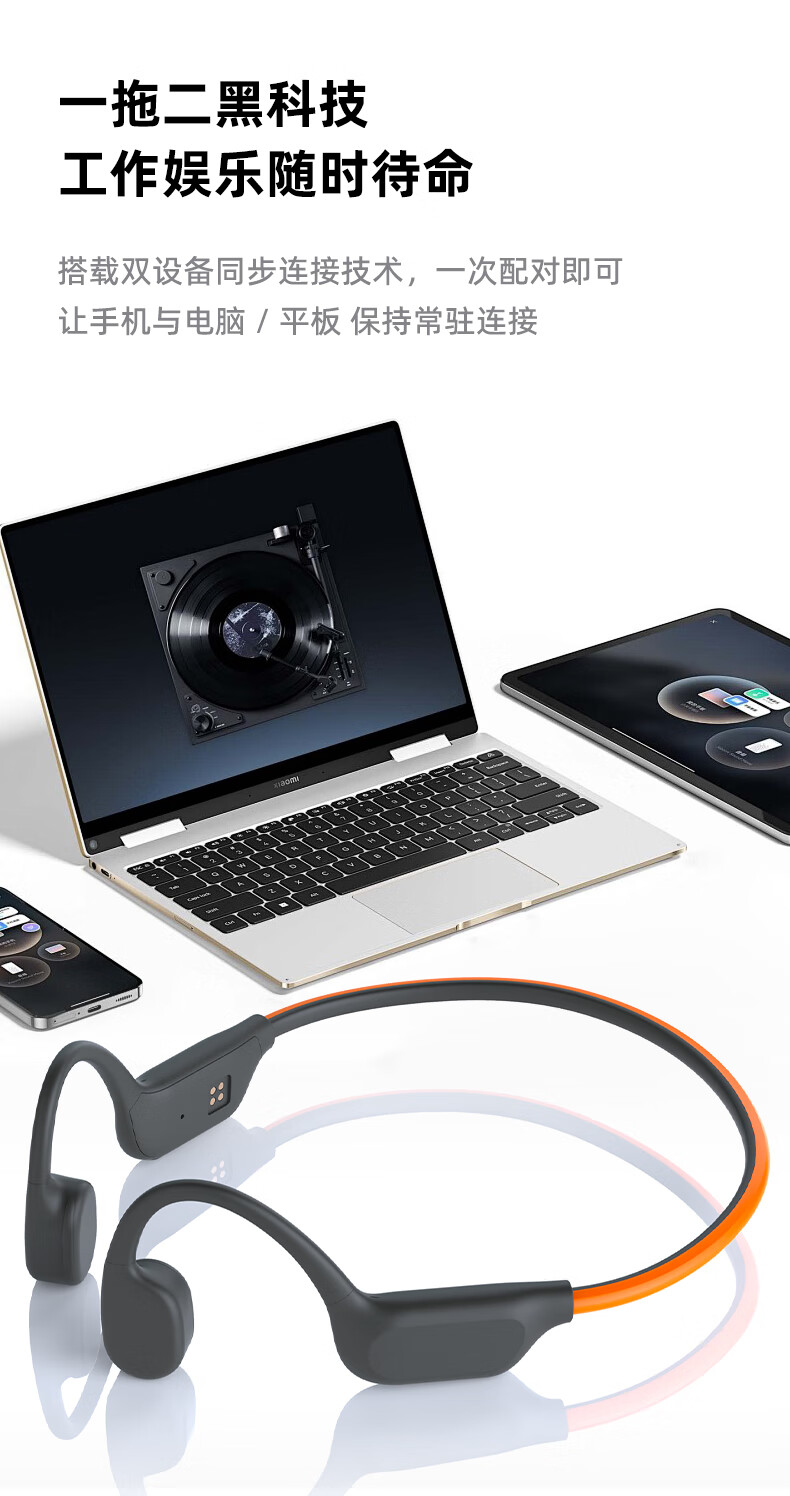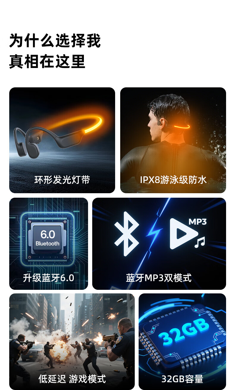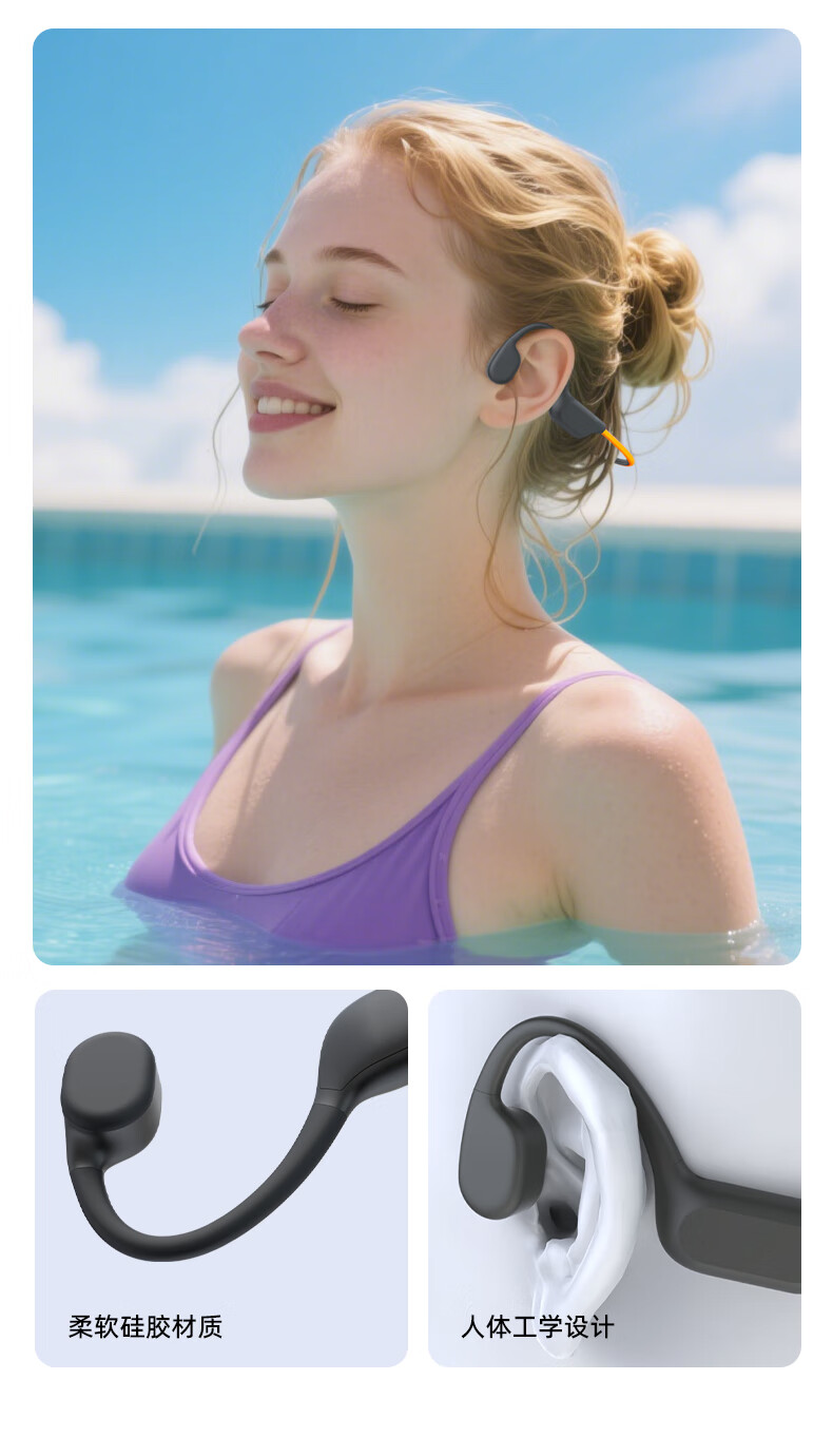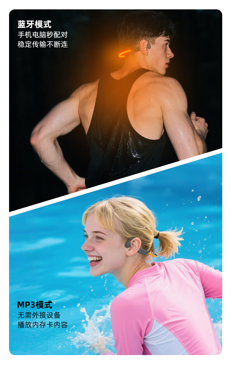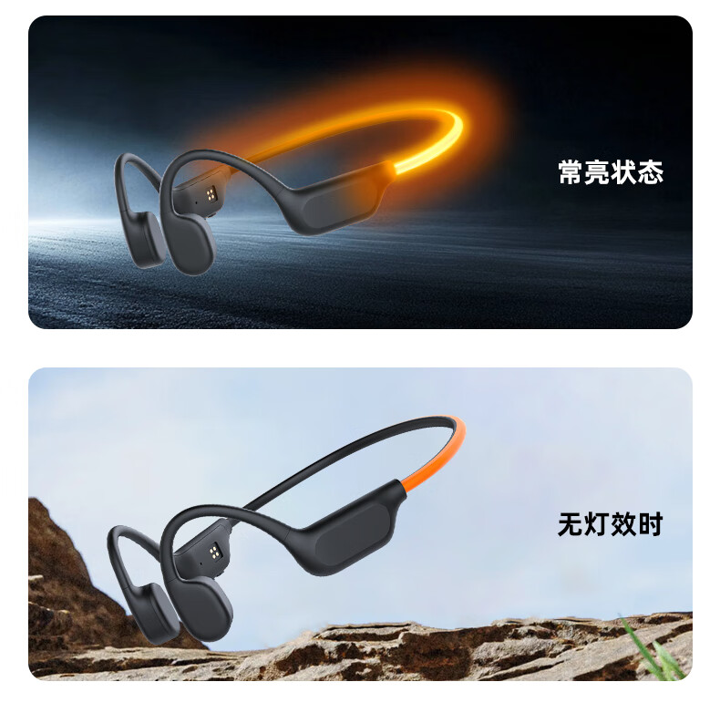 BONETIME骨时X500骨传导蓝牙耳机带灯光8级专业防水游泳跑步骑行32G内存超长续航开放式夜跑骨传导运动耳机 旗舰版【灯效橙】IPX8级防水+16GB内存