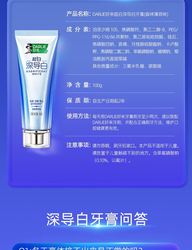 好来原黑人牙膏深导白亮白去黄含氟清新口气成人 深导白60g
