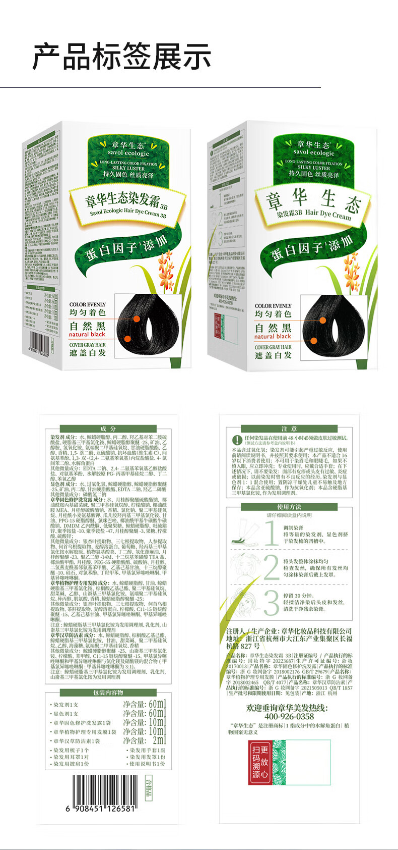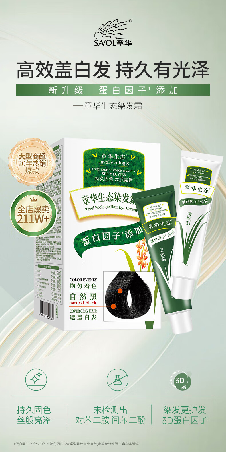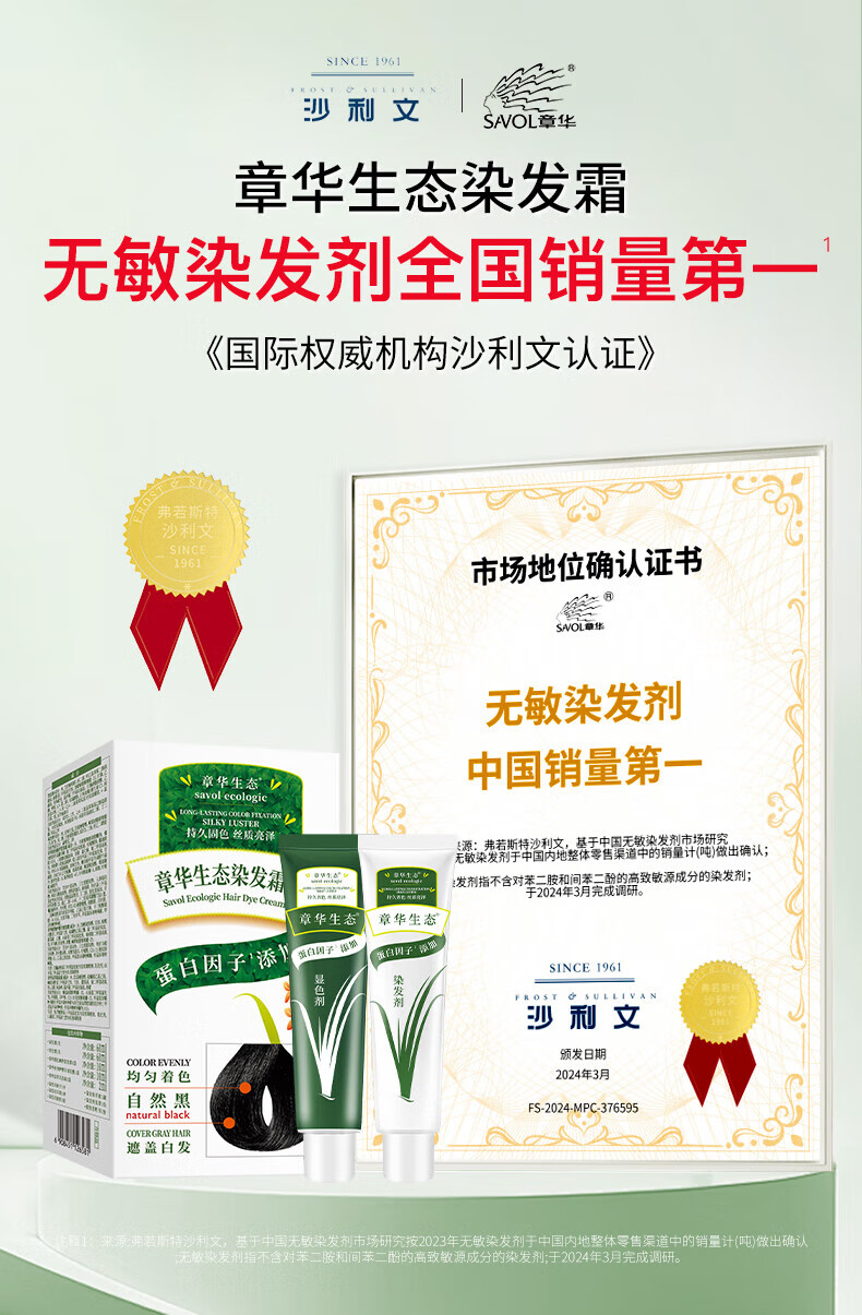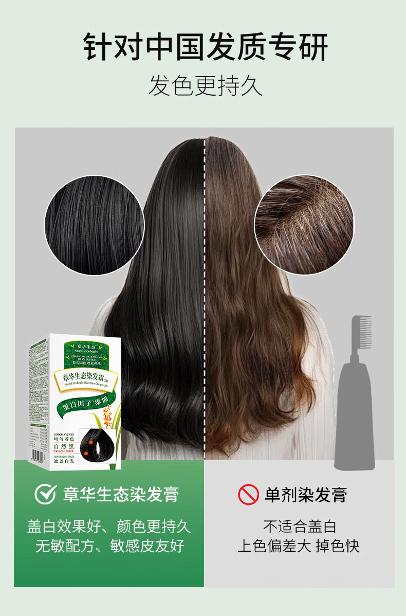 章华(SAVOL)生态染发剂盖白不含对苯二胺送染烫修护发膜500ml蛋白因子染发霜 生态棕黑色(低调显白)+小麦500ml
