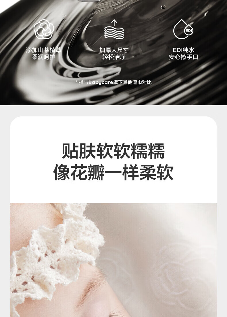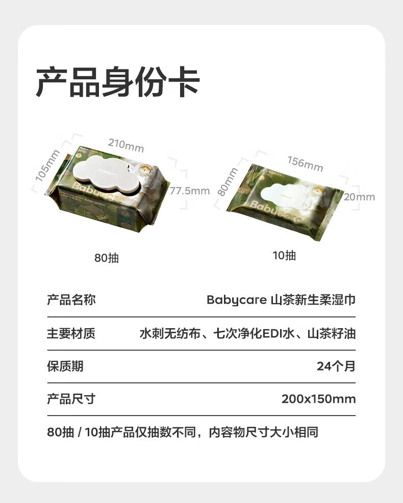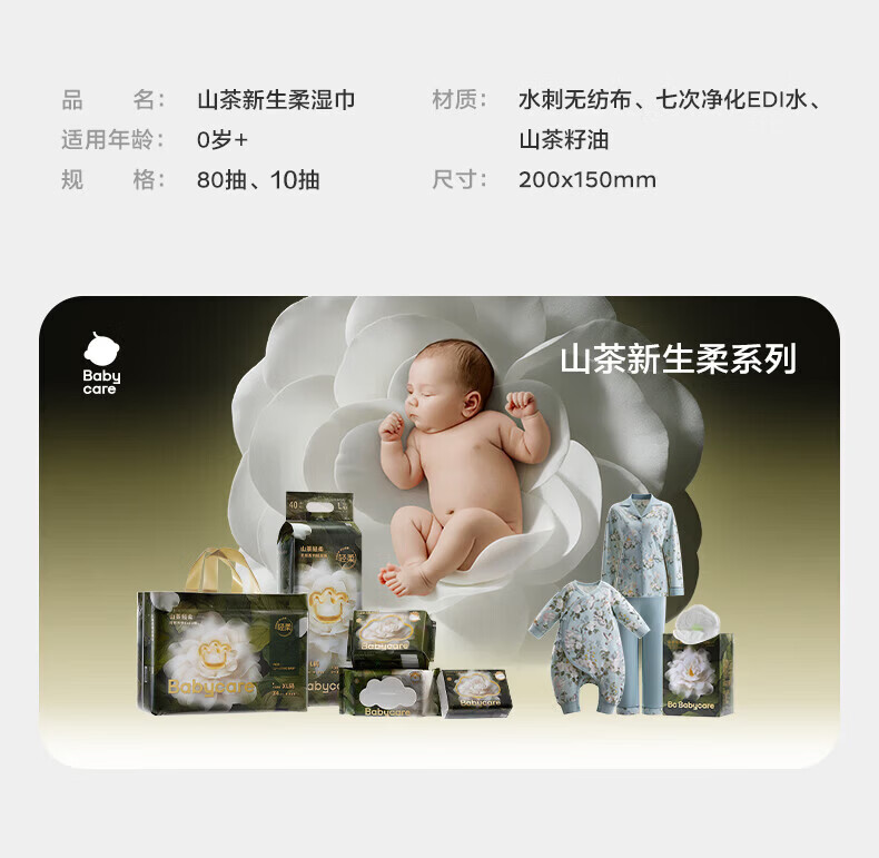 babycare 1山茶新生柔湿巾新生儿湿纸巾加大加厚擦脸 山茶湿巾 10抽 20包