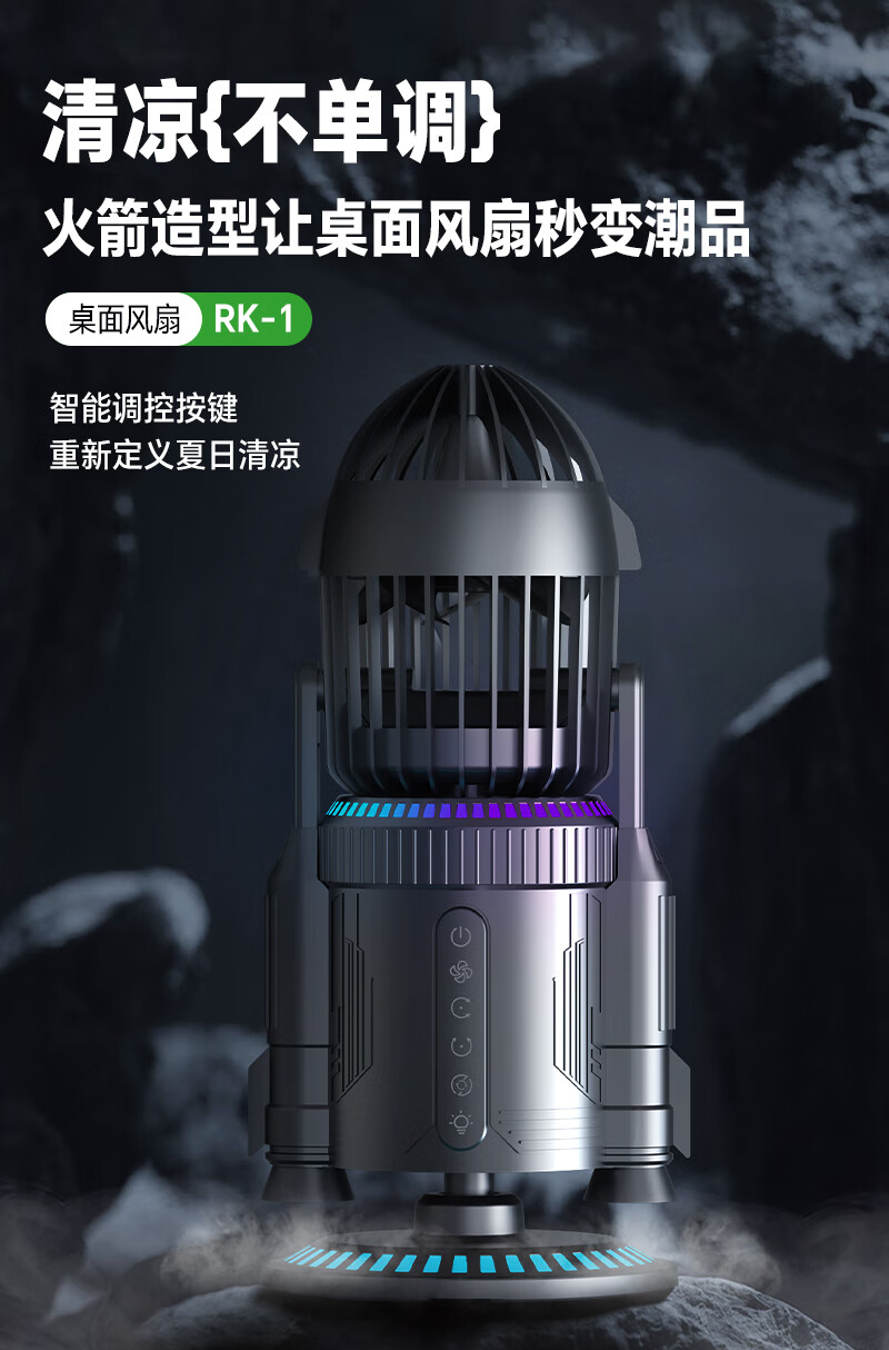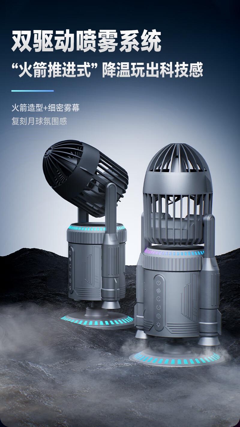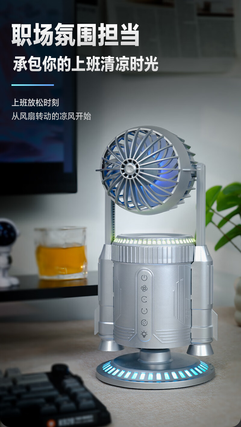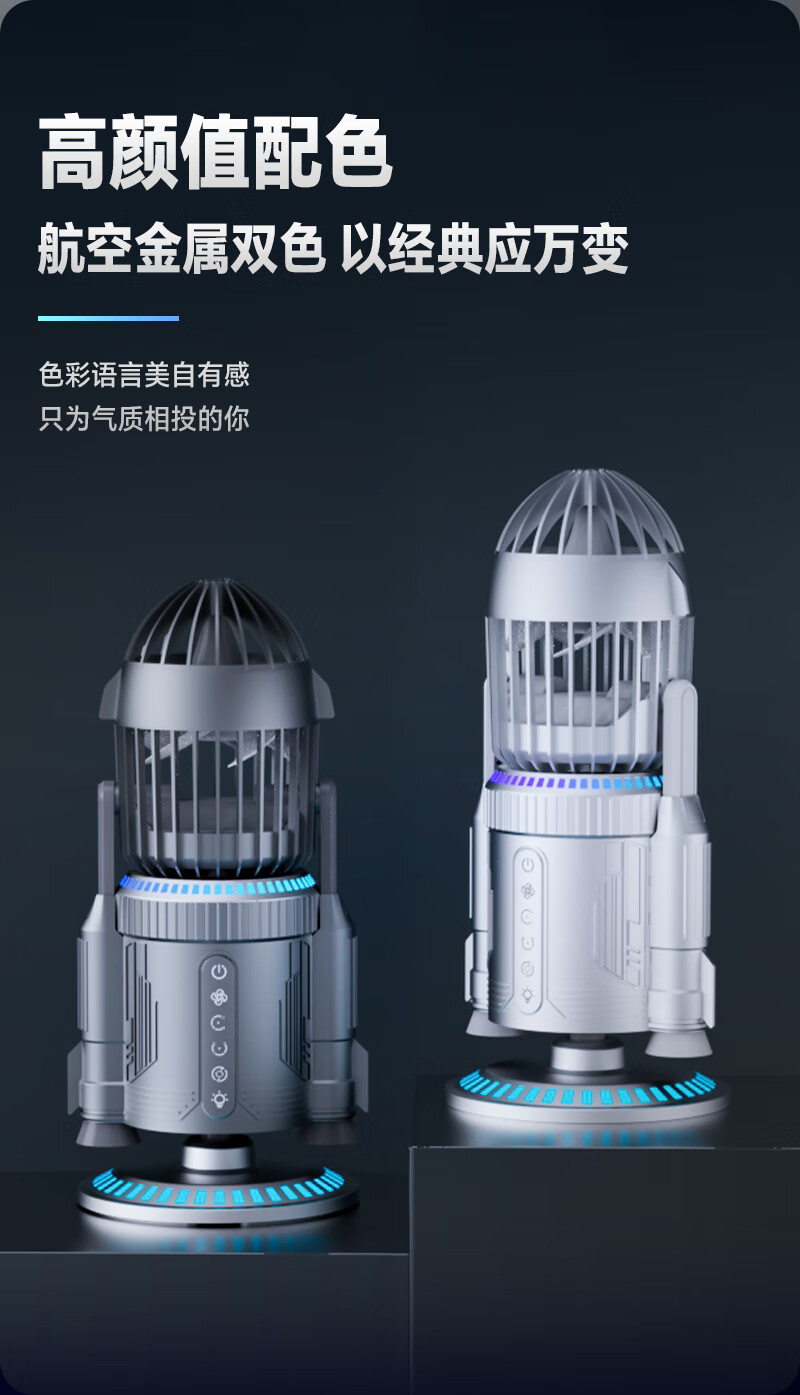 LAMJIE潮玩火箭引擎造型usb充电电风扇办公室桌面宿舍学生电竞摆件静音风扇超长续航夏天喷雾降温神器 星际钛【自动喷雾+超炫灯光】 5000mAh
