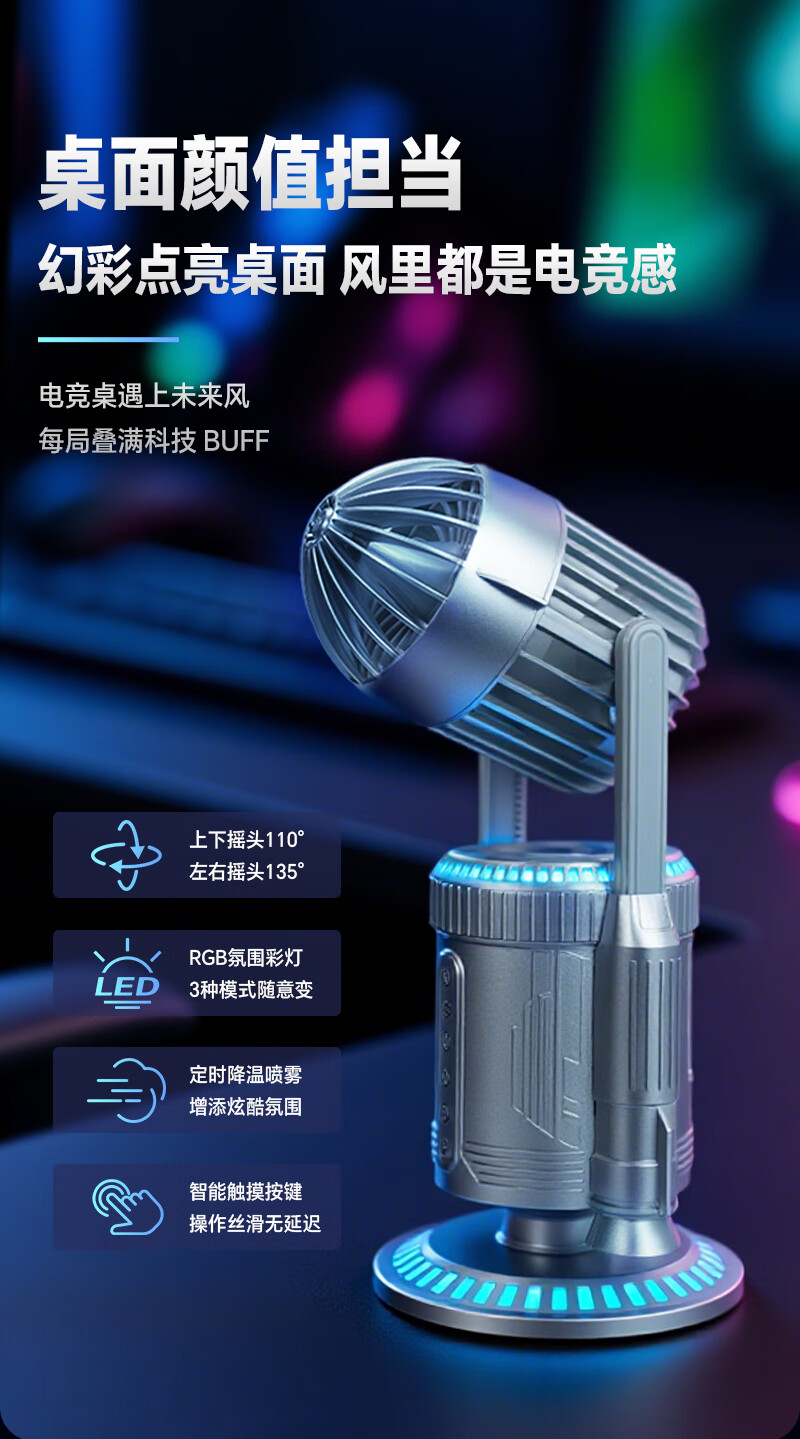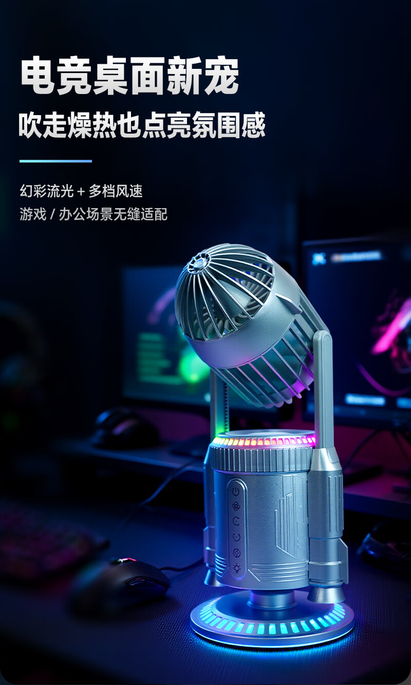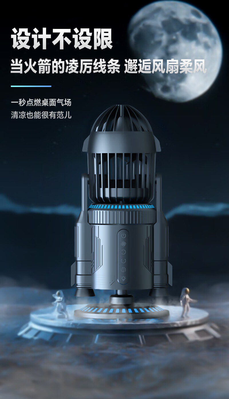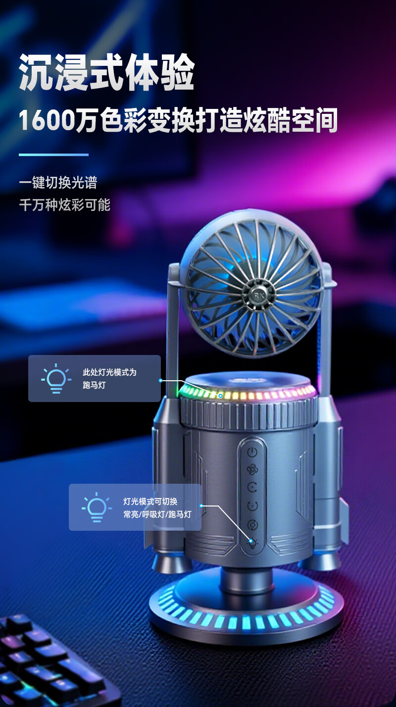LAMJIE潮玩火箭引擎造型usb充电电风扇办公室桌面宿舍学生电竞摆件静音风扇超长续航夏天喷雾降温神器 星际钛【自动喷雾+超炫灯光】 5000mAh