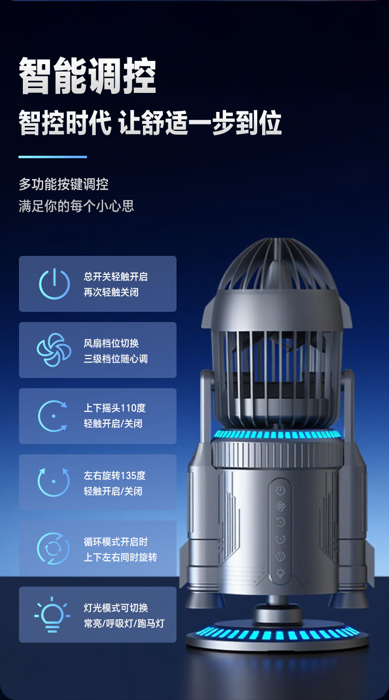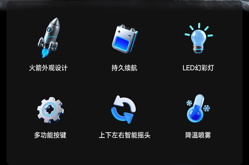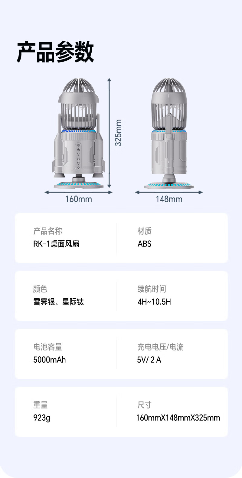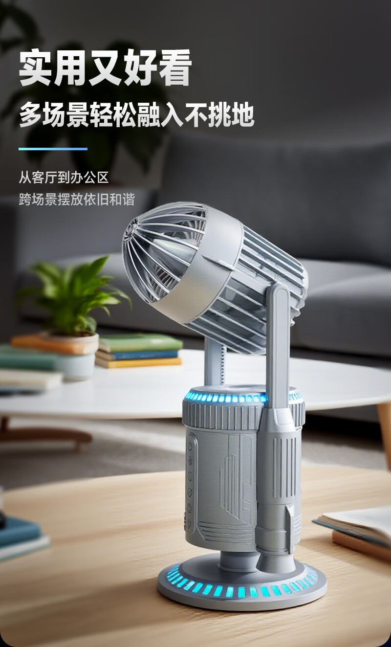 LAMJIE潮玩火箭引擎造型usb充电电风扇办公室桌面宿舍学生电竞摆件静音风扇超长续航夏天喷雾降温神器 星际钛【自动喷雾+超炫灯光】 5000mAh