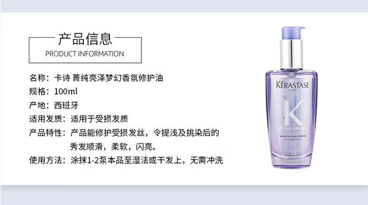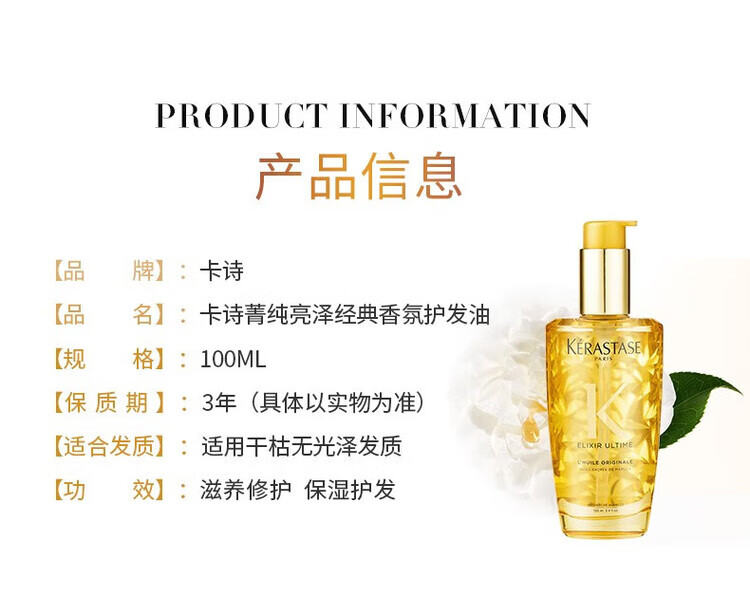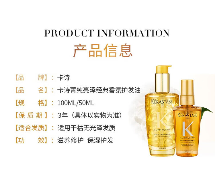 卡诗;KARSI正品保证护发精油进口山茶花菁纯亮泽经典香氛护发油菁纯修护 赋源芯丝头皮防掉精华液90ml