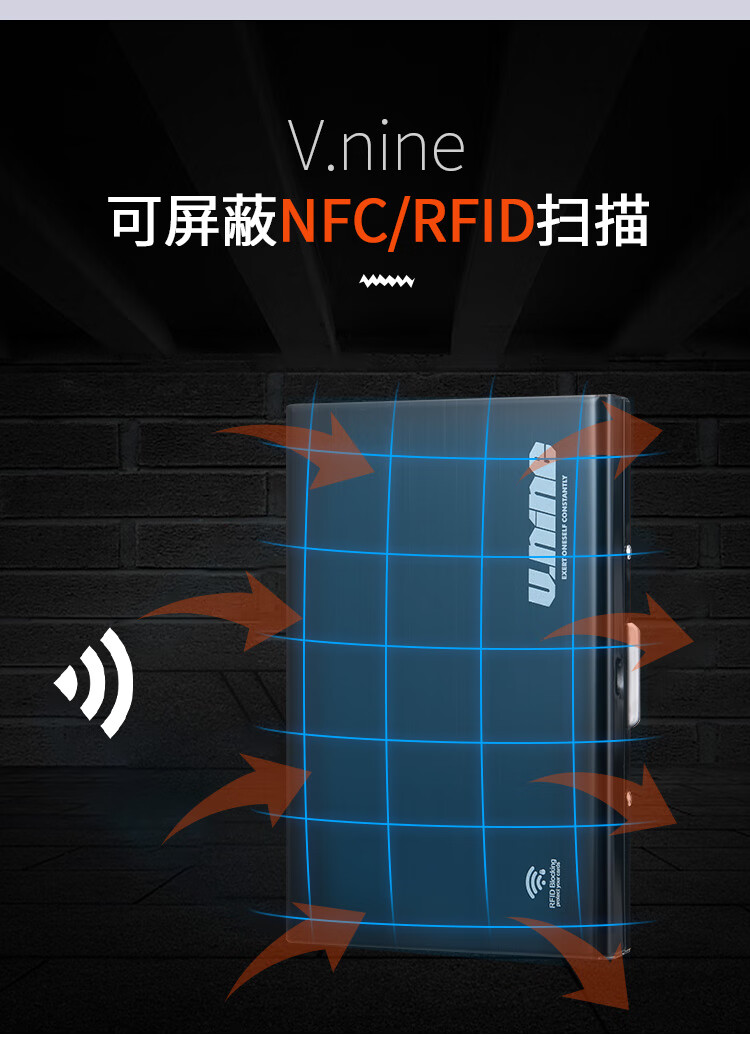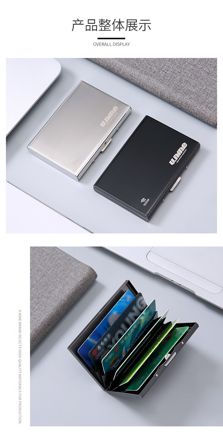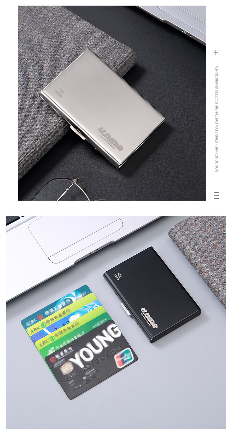 第九城(V.NINE) 卡包金属防盗刷NFC防消磁卡套大容量超薄银行卡防读取卡盒 银色
