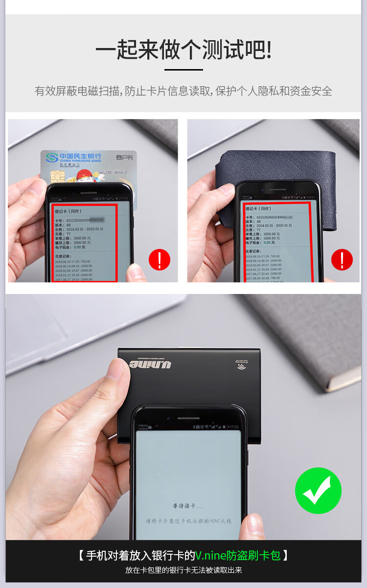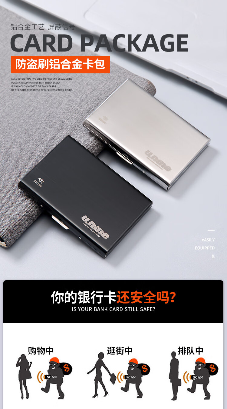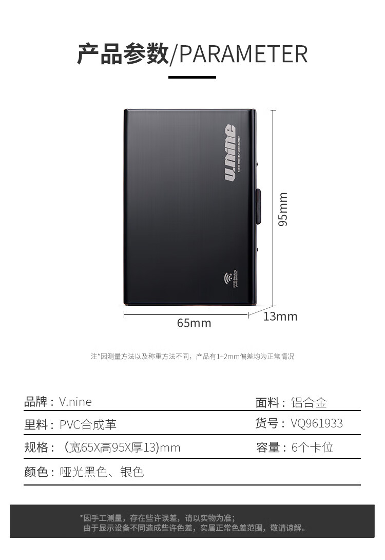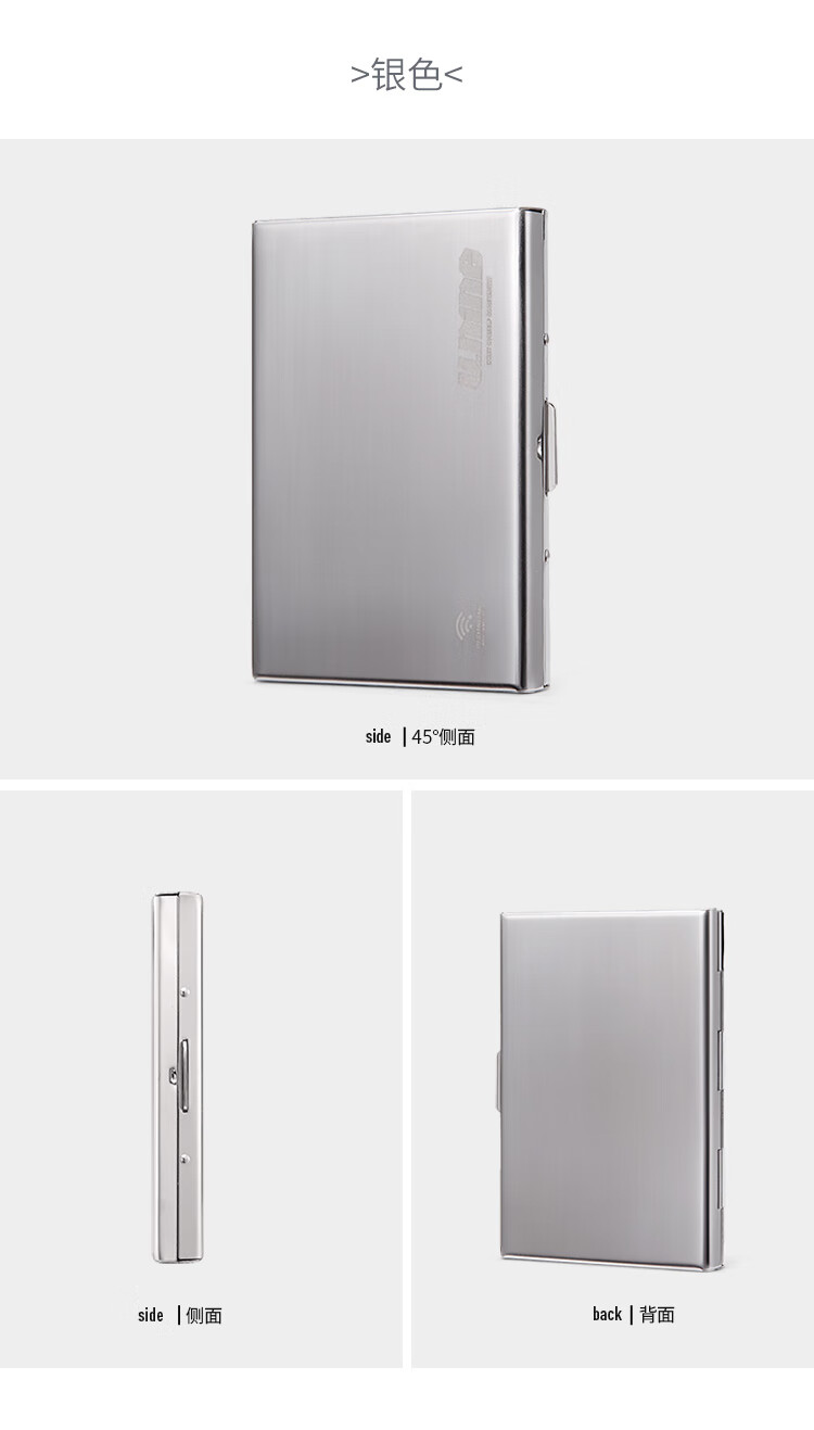 第九城(V.NINE) 卡包金属防盗刷NFC防消磁卡套大容量超薄银行卡防读取卡盒 银色