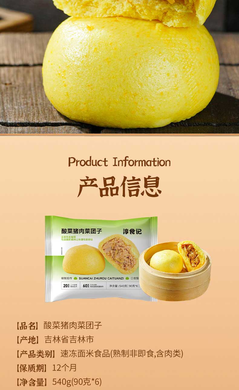 淳食记酸菜猪肉菜团子早餐半成品粗粮速冻早餐儿童早餐540g 2袋装540g*2(90g*12)