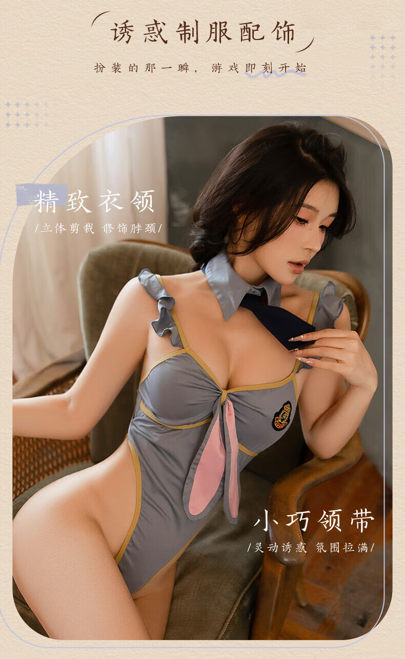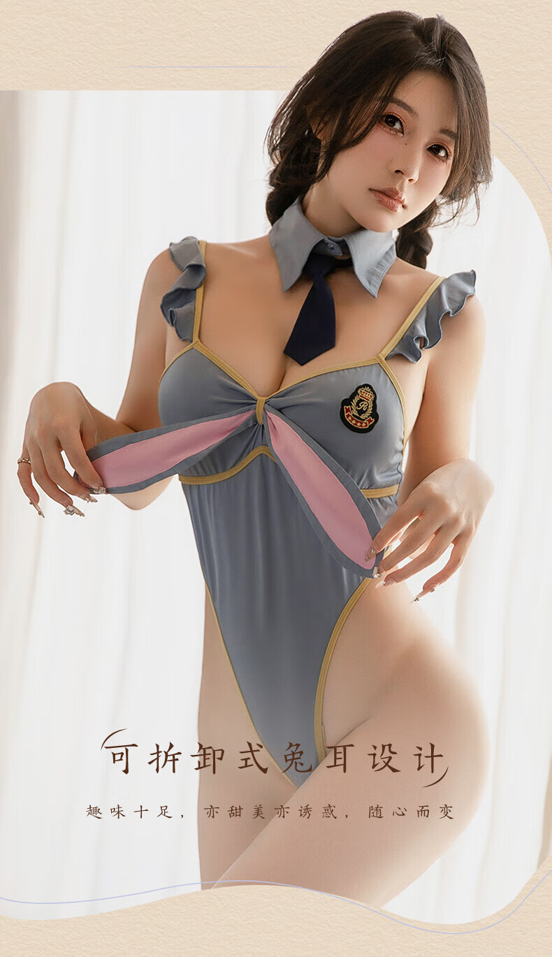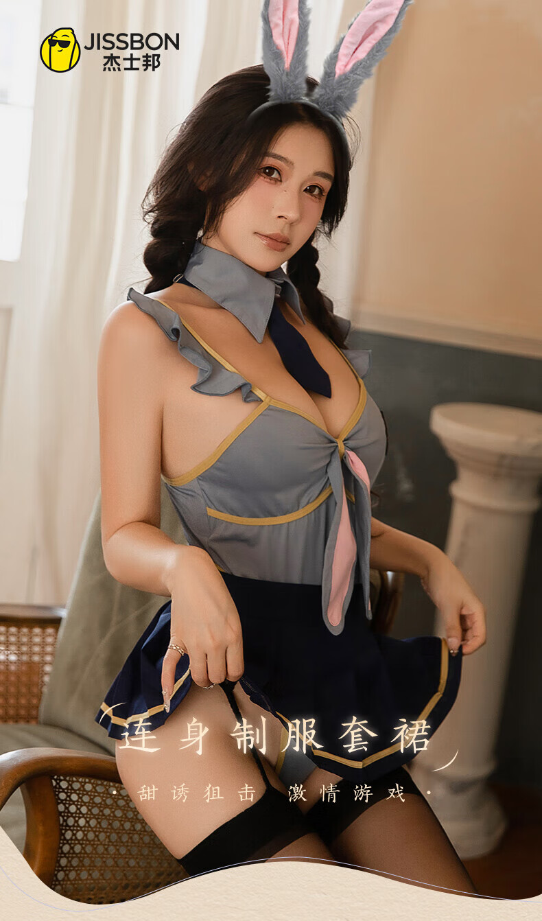 杰士邦小兔警兔子警官新百褶裙性感制服情侣诱惑装女 【现货】情趣兔子警官套装 (含连体衣+短裙+领带+ 均码 (建议80-130斤)