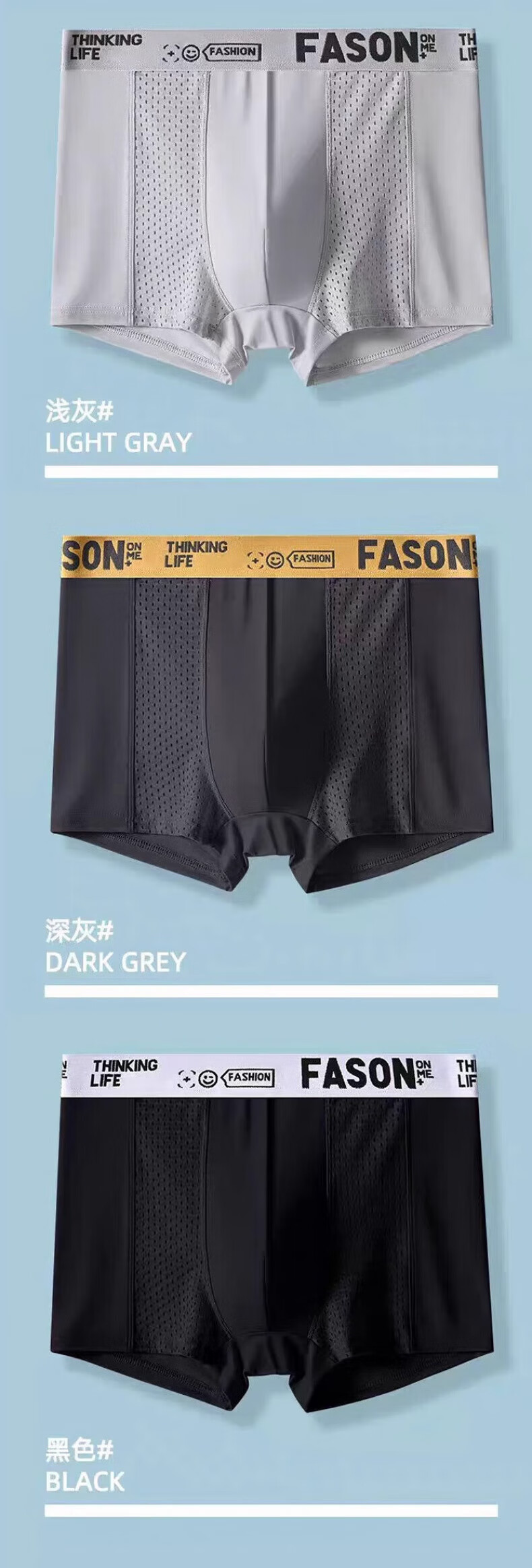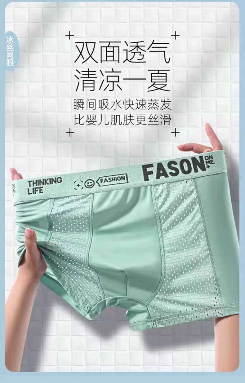 雅鹿加大码加肥冰丝男士内裤平角网眼四角短裤头夏季肥佬胖子男款 NLP-浅灰+绿色+深灰+黑色 4条 L 【80-100斤】