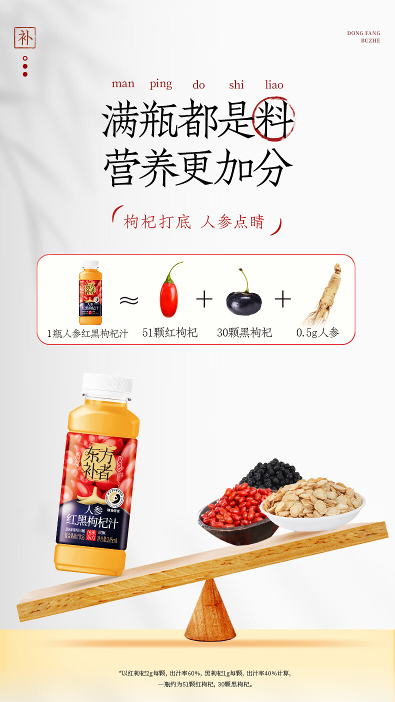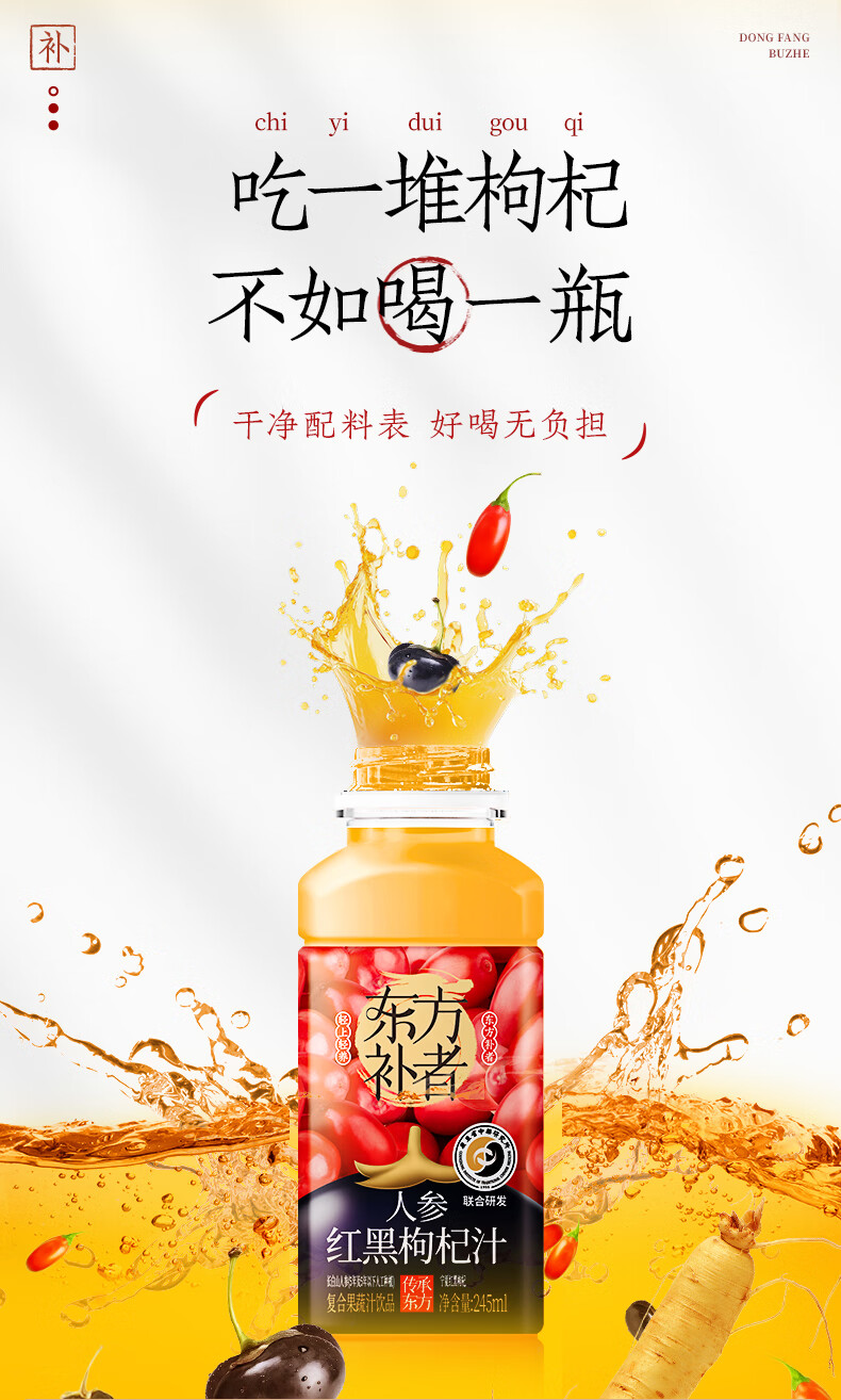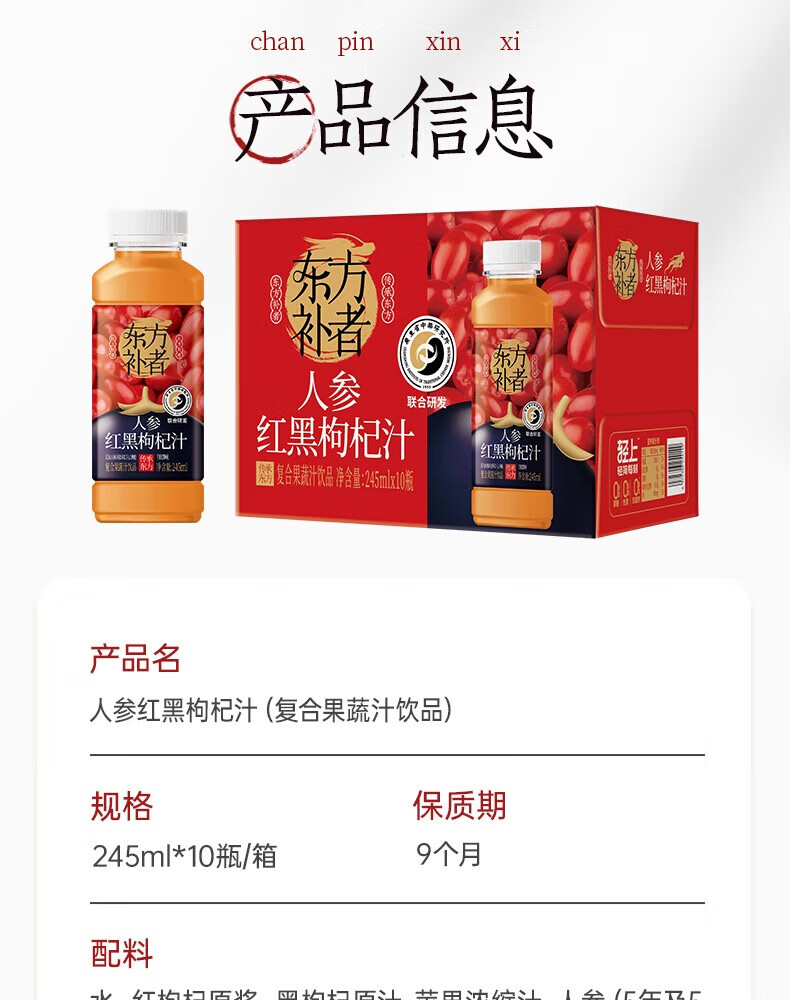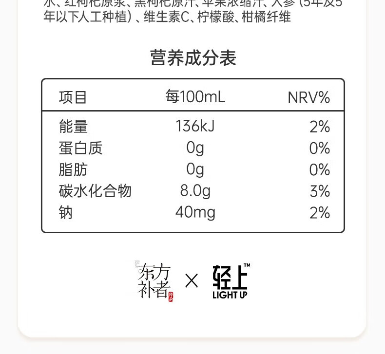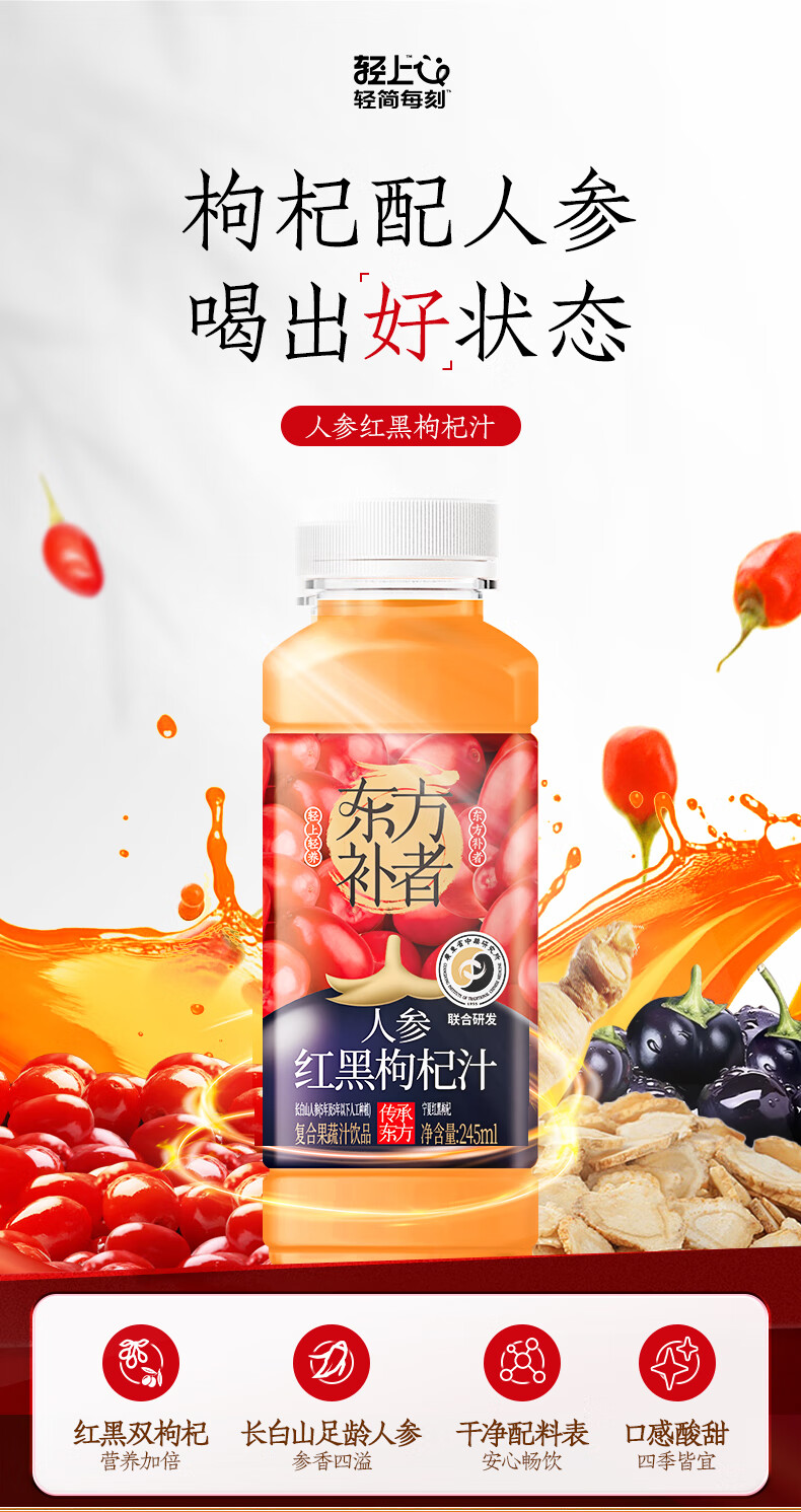 轻上【年货礼盒】轻上人参红黑枸杞汁添加长白山人参复合果蔬汁饮品 白桦树汁245ml*10瓶-