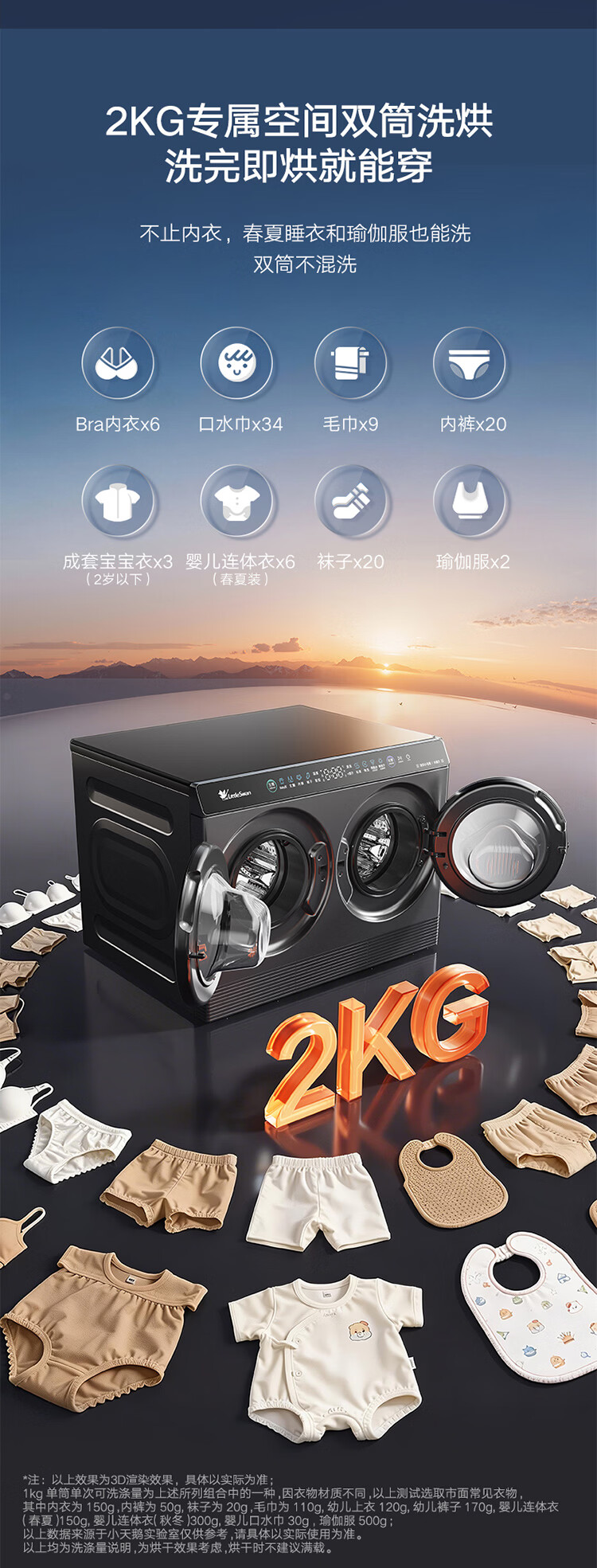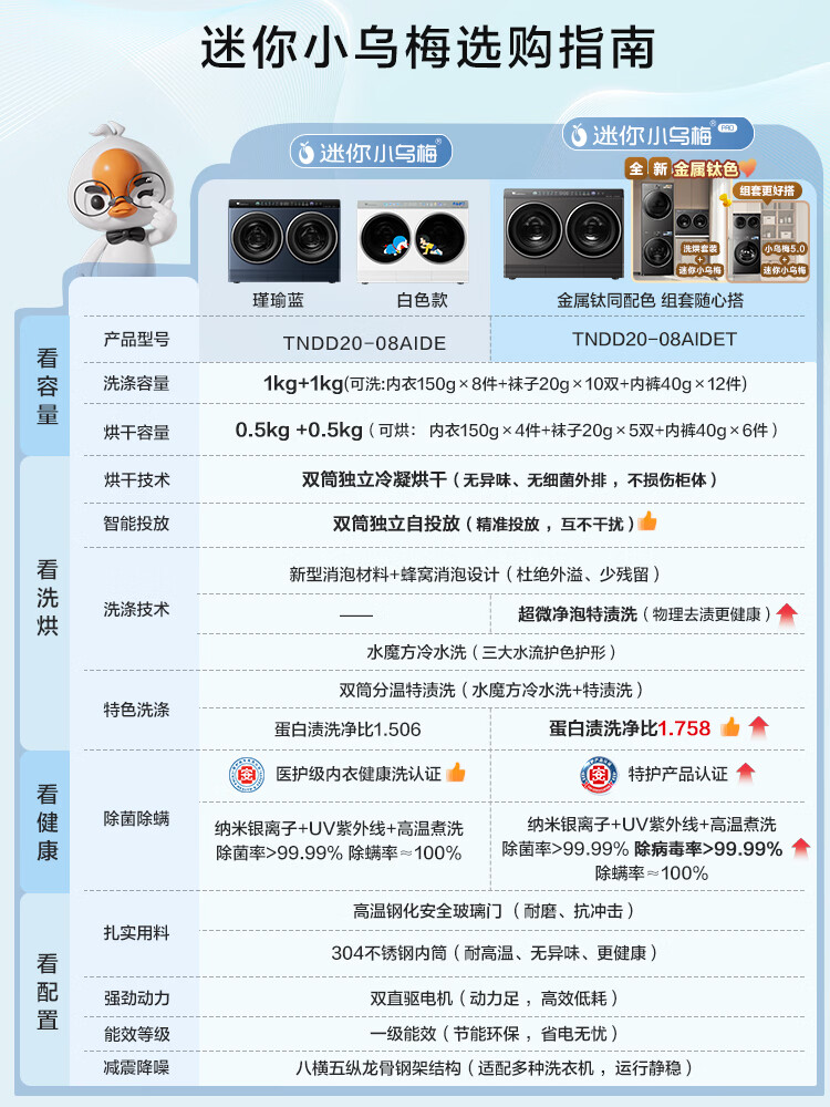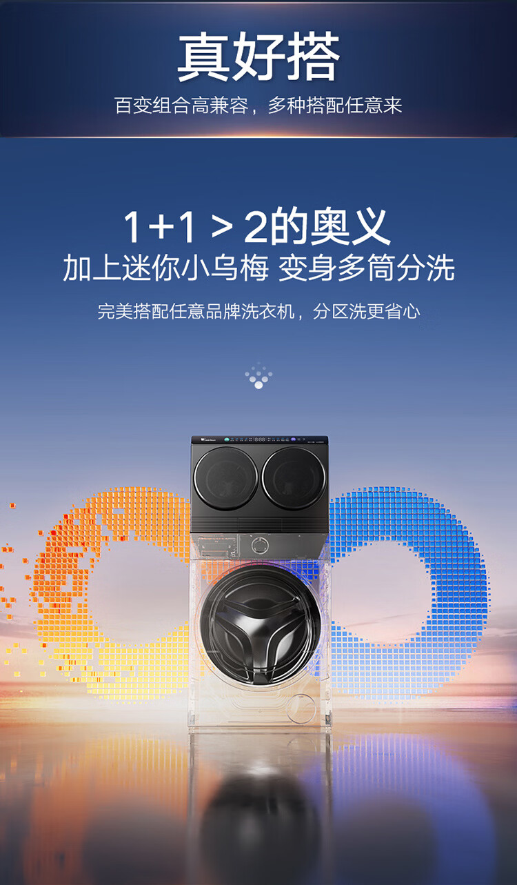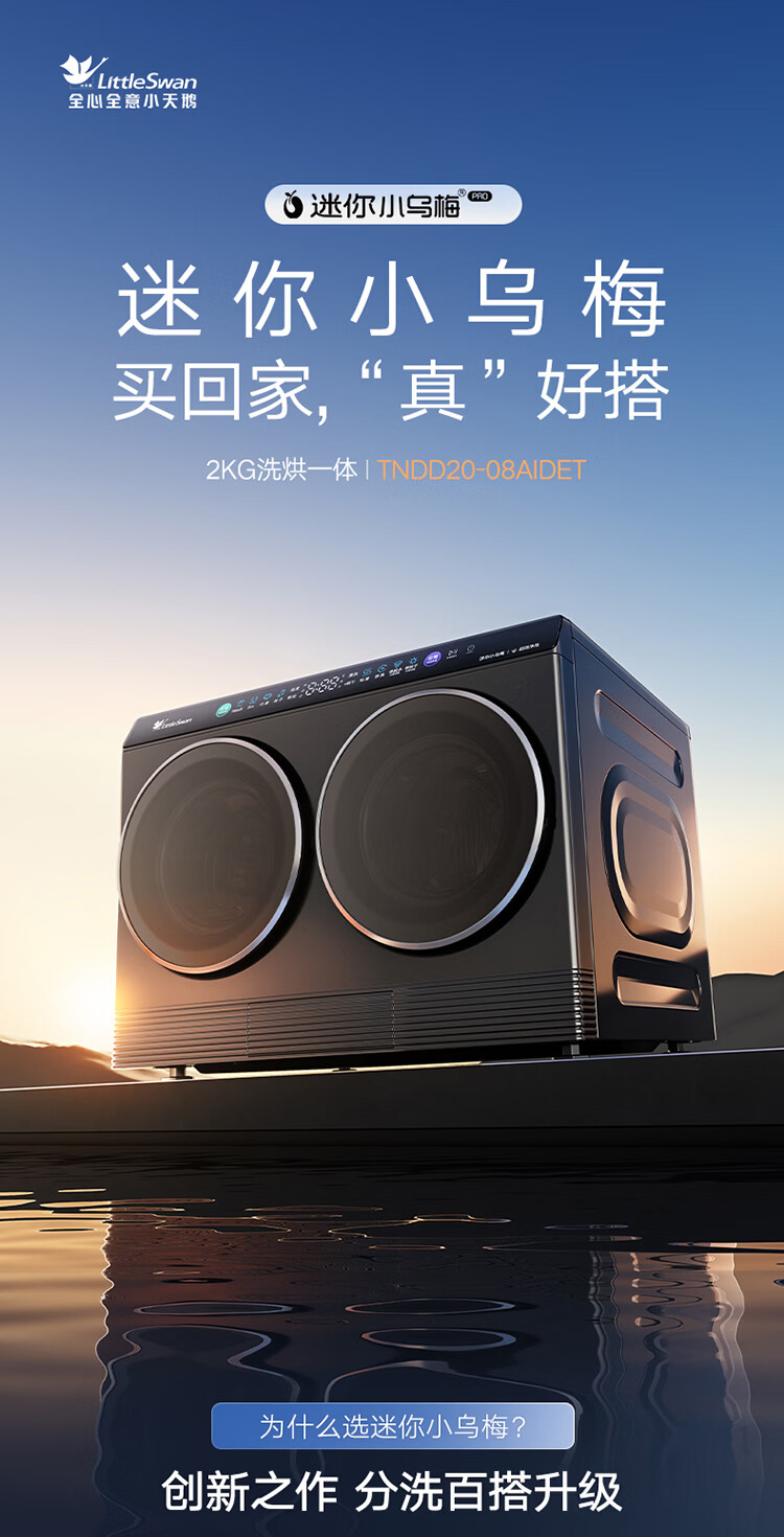 小天鹅(LittleSwan)迷你小乌梅PRO AWE同款 双筒分区洗 2KG洗烘一体 TNDD20-08AIDET 可组懒人三筒洗衣机 内衣洗