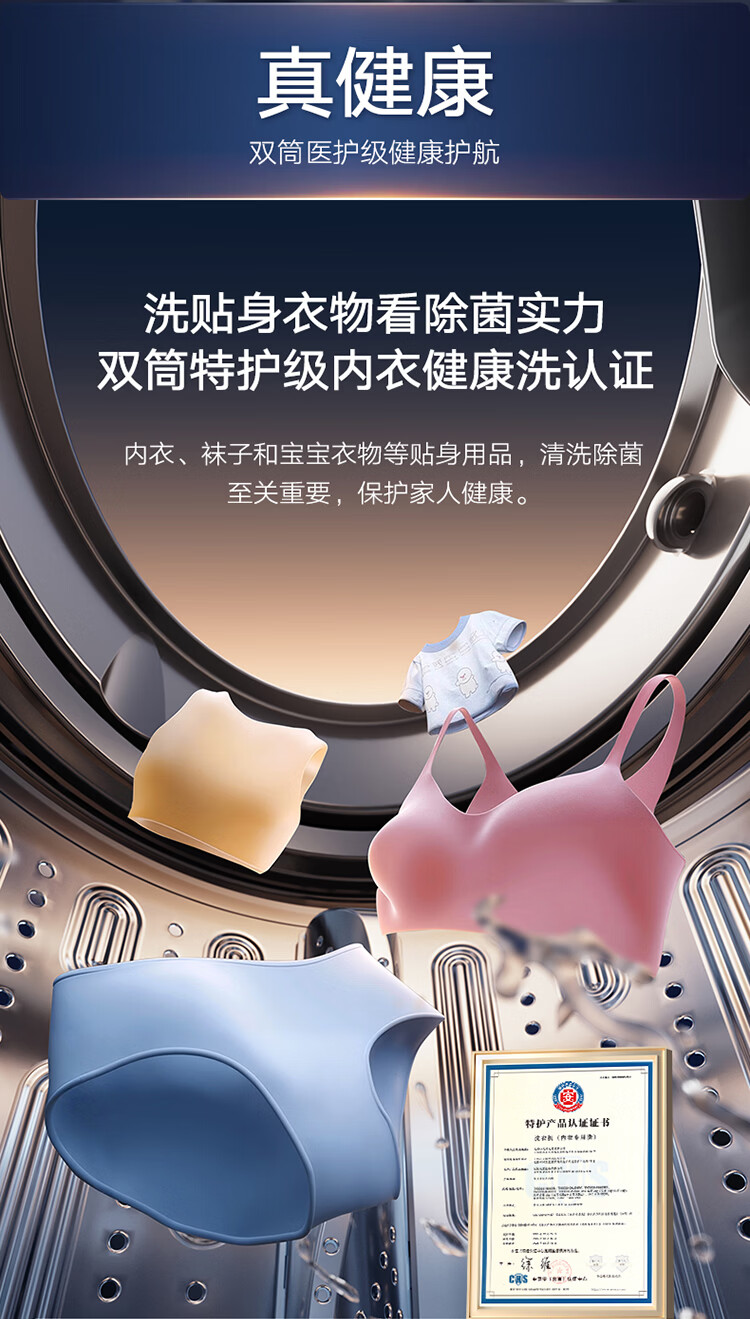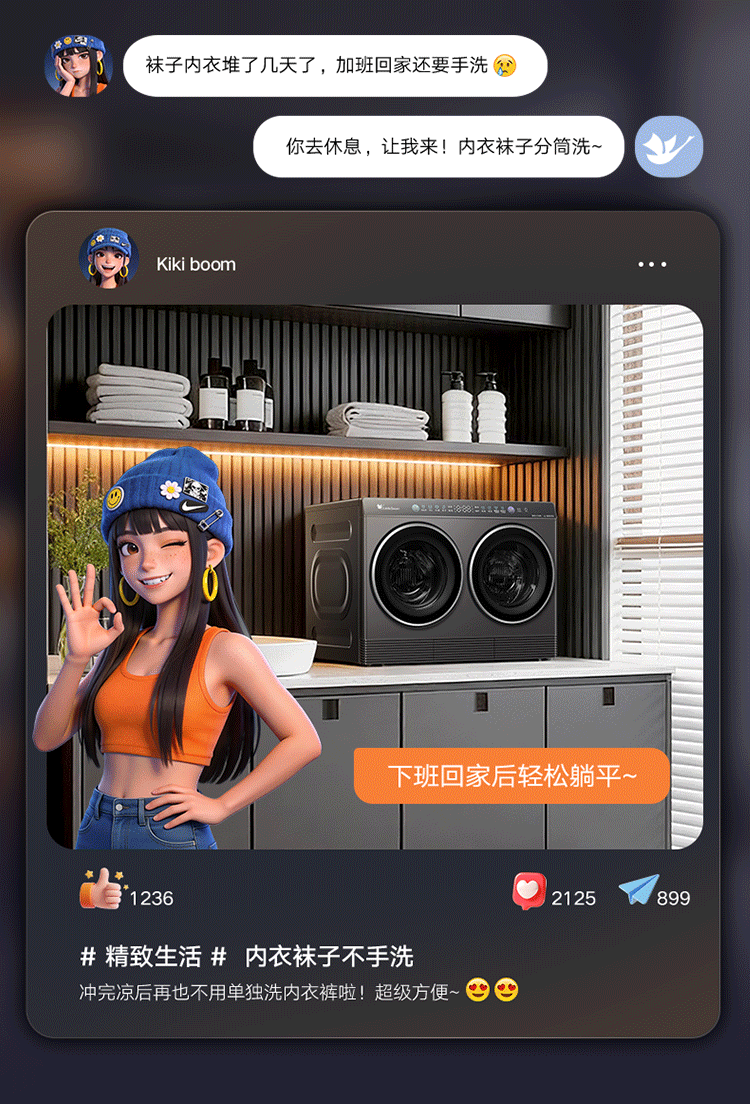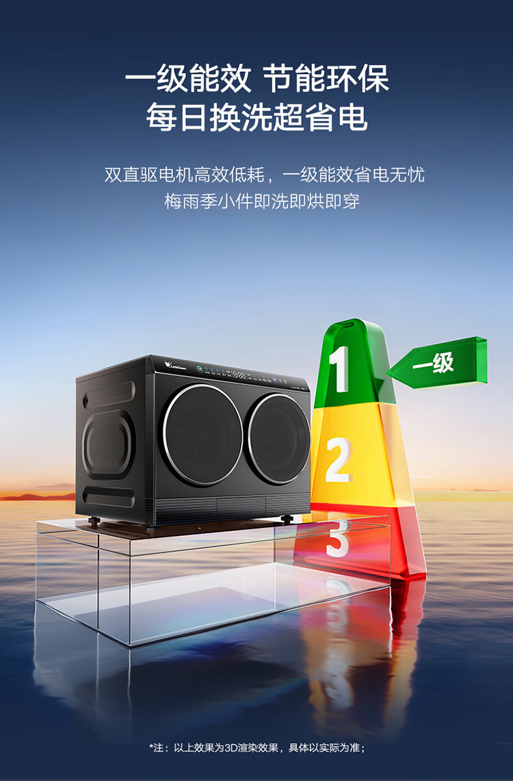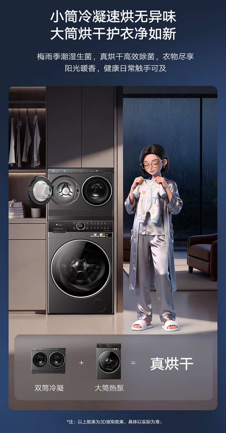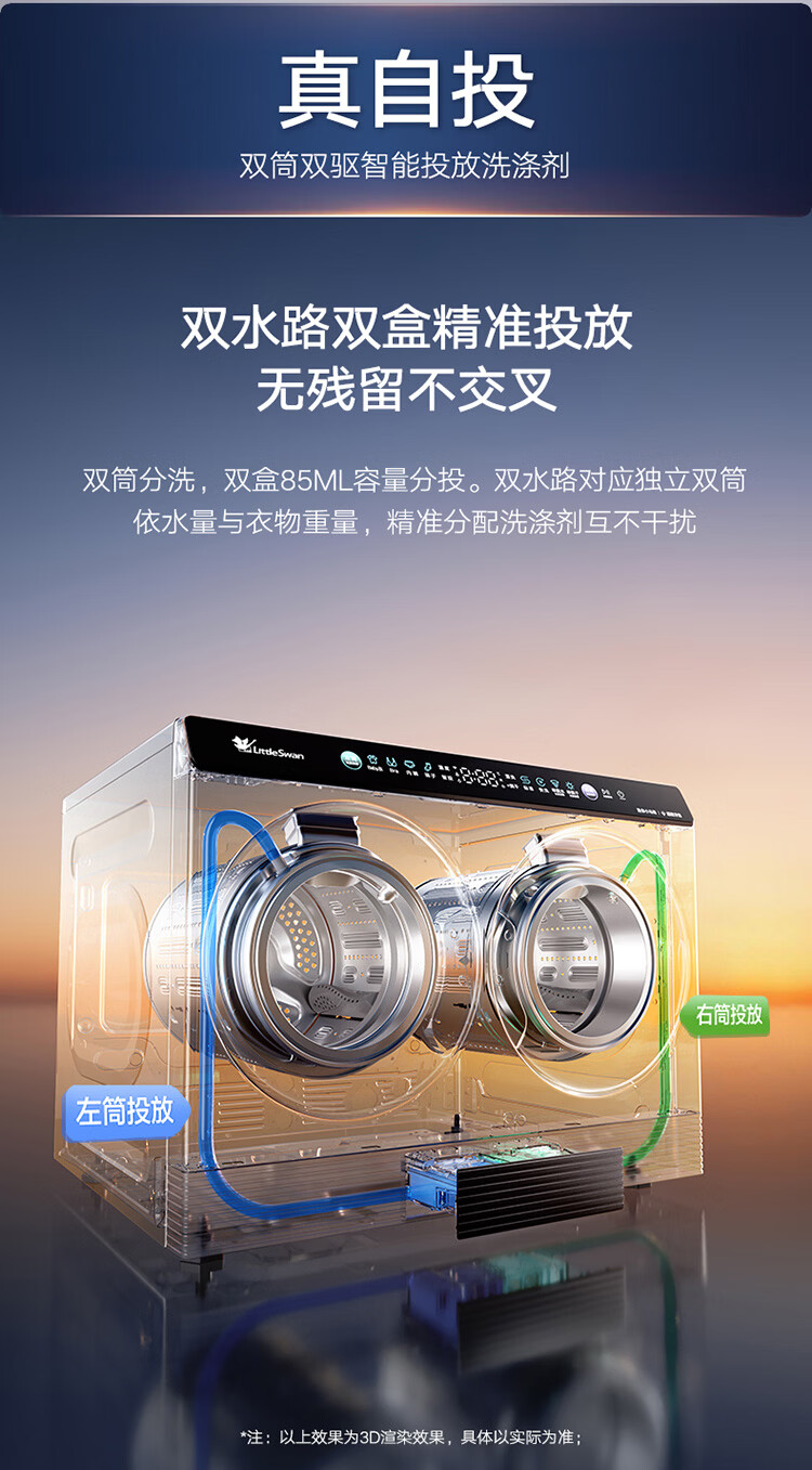 小天鹅(LittleSwan)迷你小乌梅PRO AWE同款 双筒分区洗 2KG洗烘一体 TNDD20-08AIDET 可组懒人三筒洗衣机 内衣洗