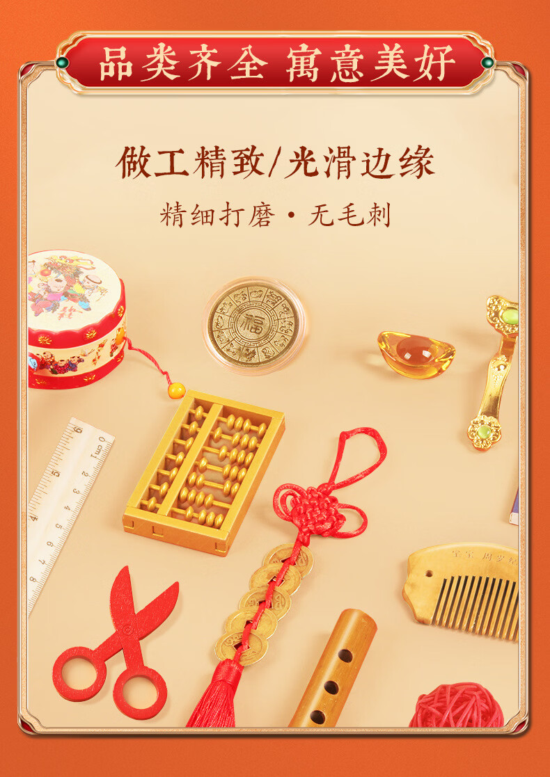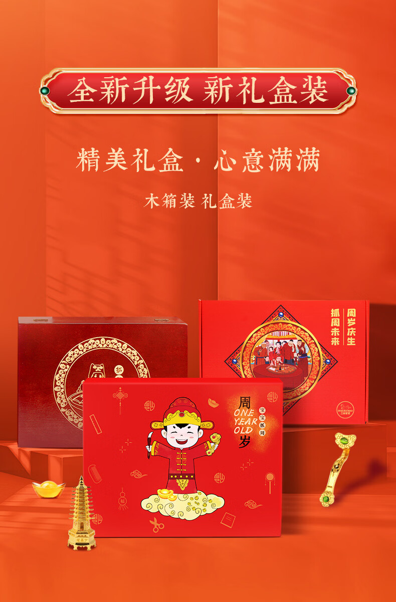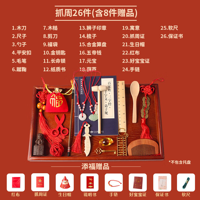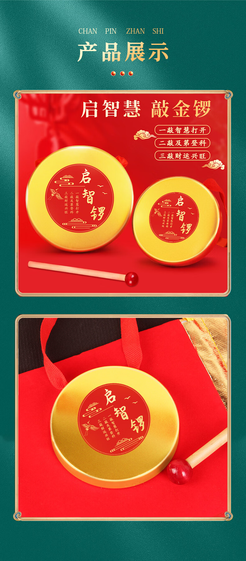沃有家抓周用品套装抓阄道具敲启智慧金锣鼓周岁生日礼物仪式宴场景装饰 启智锣(大号12cm)+锣锤+丝带+福袋