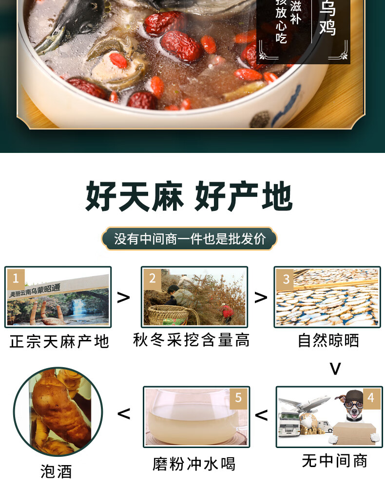 同仁堂甄选精品正宗云南天麻片500g中药材干货非野生特级粉小草坝乌新鲜 甄选好货【精品天麻10克】(尝试装-不挣钱)