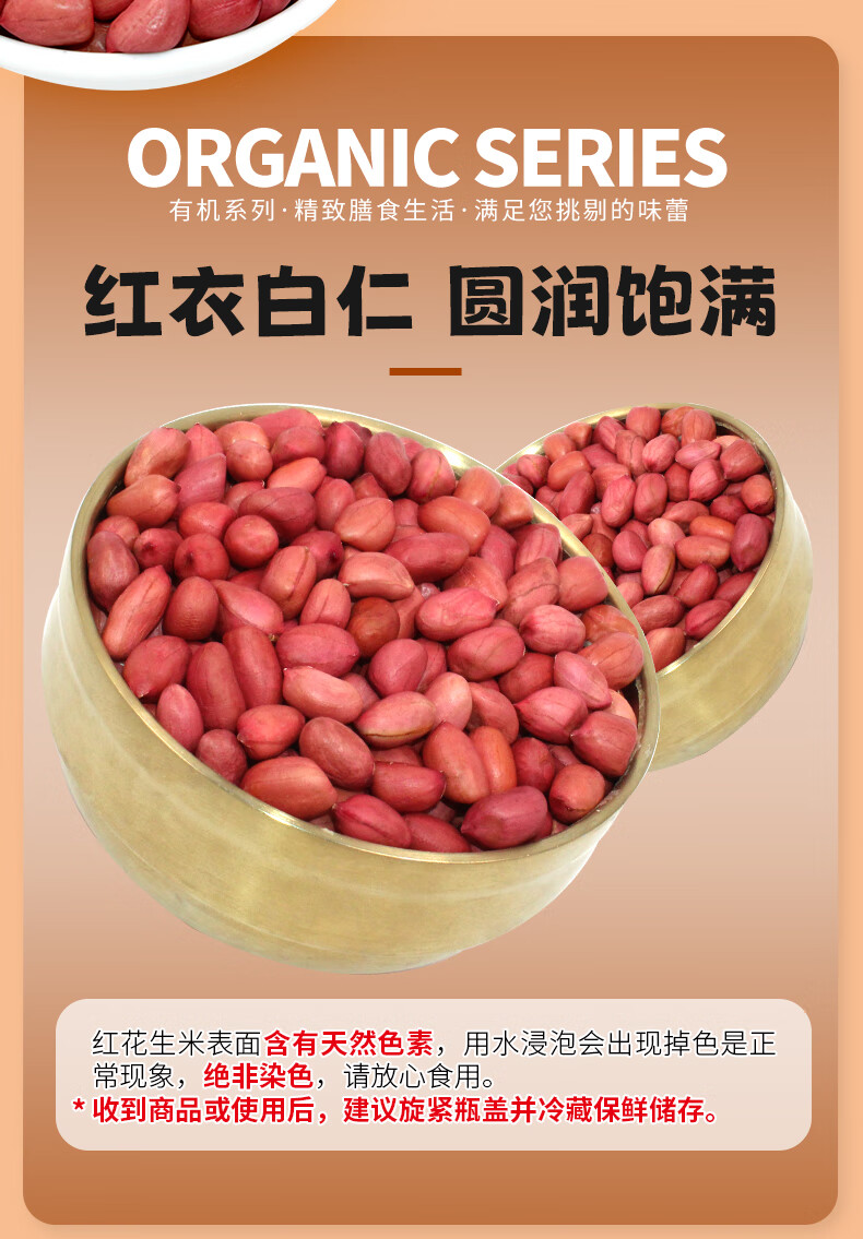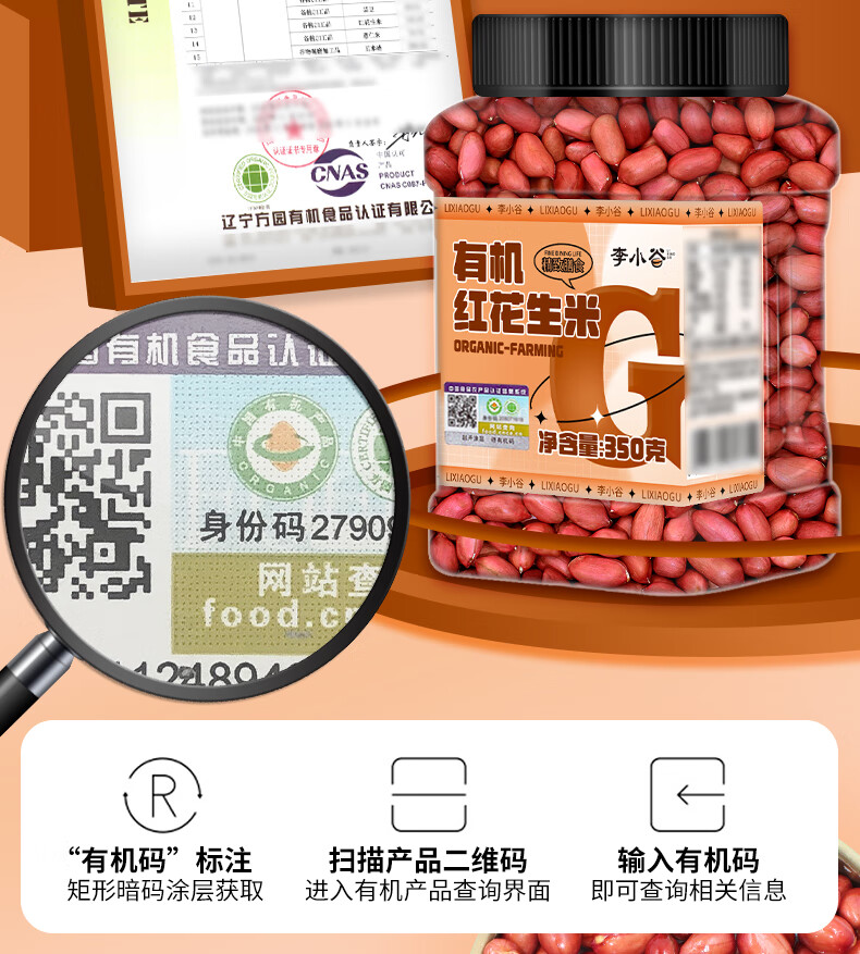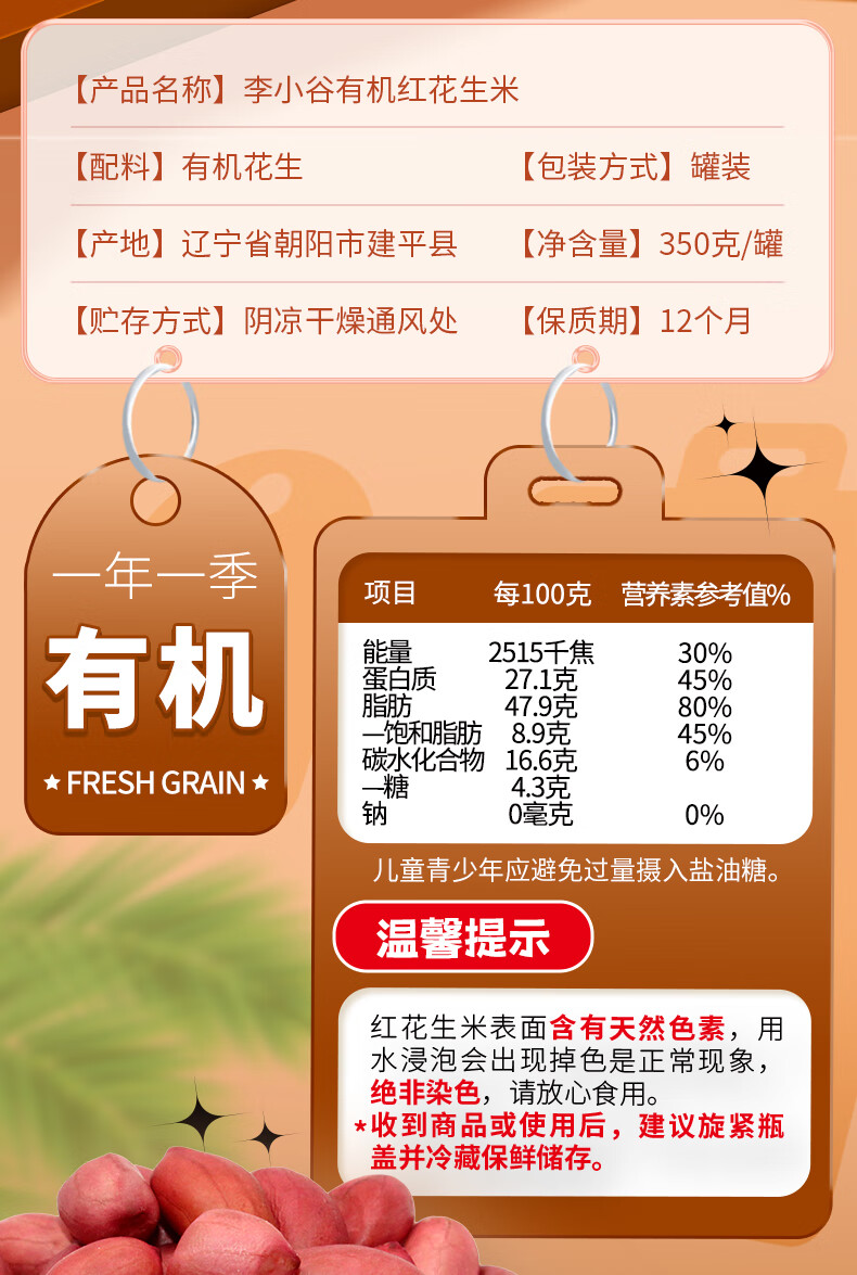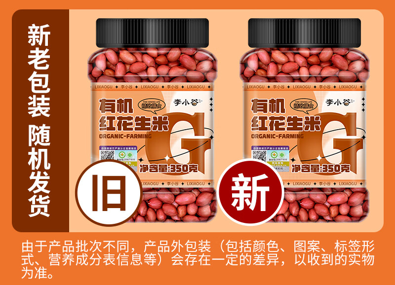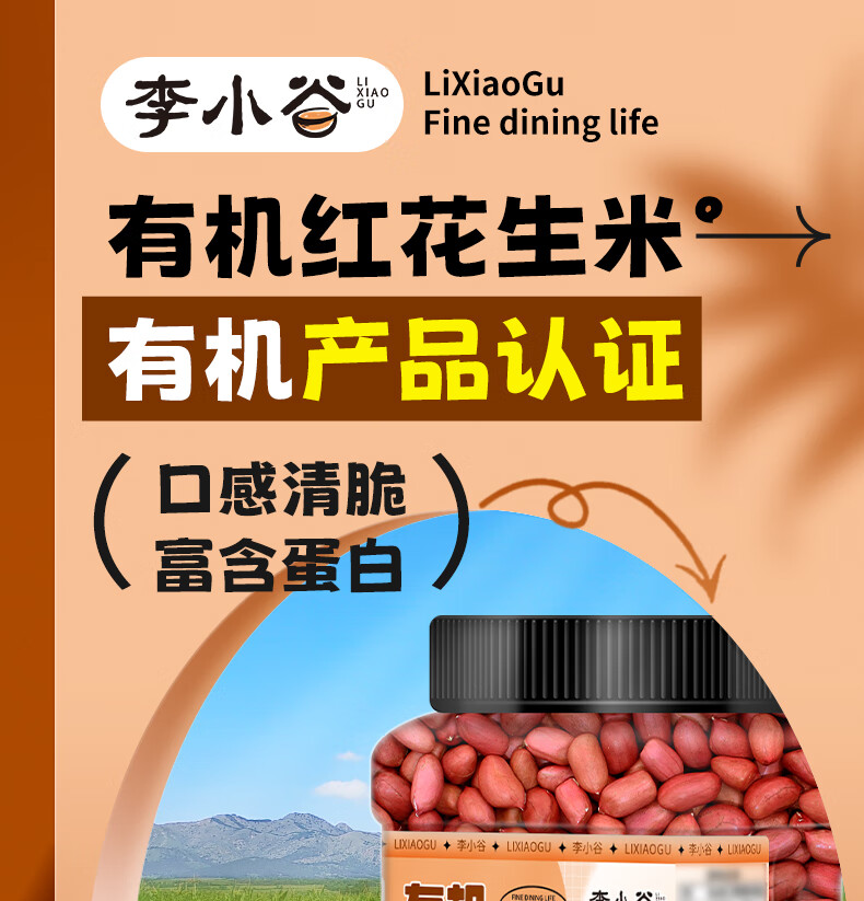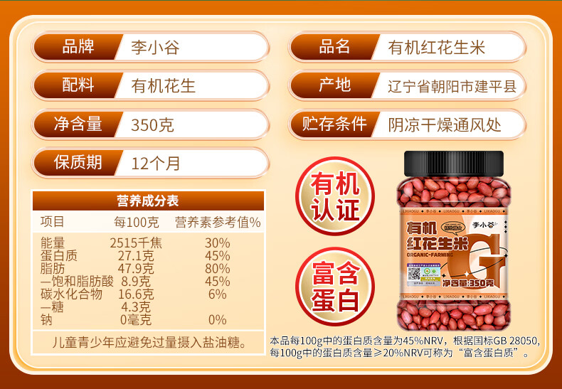 李小谷 有机红花生350克罐装(四粒红中小粒生花生米红皮花生杂粮粗粮)