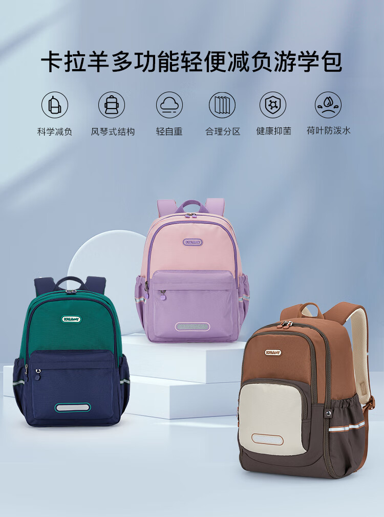 卡拉羊书包小学生1-3-6年级儿童超轻背包户外出游男女大容量休闲双肩包