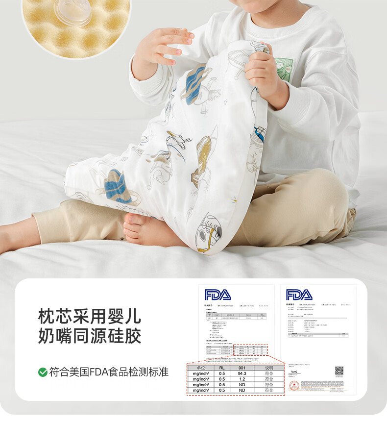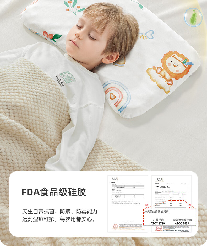 贝肽斯儿童硅胶枕头3个月-6岁新款透气定型宝宝枕头幼儿园婴儿四季通用 星光兔梦-【3个月-1岁】抗菌防螨