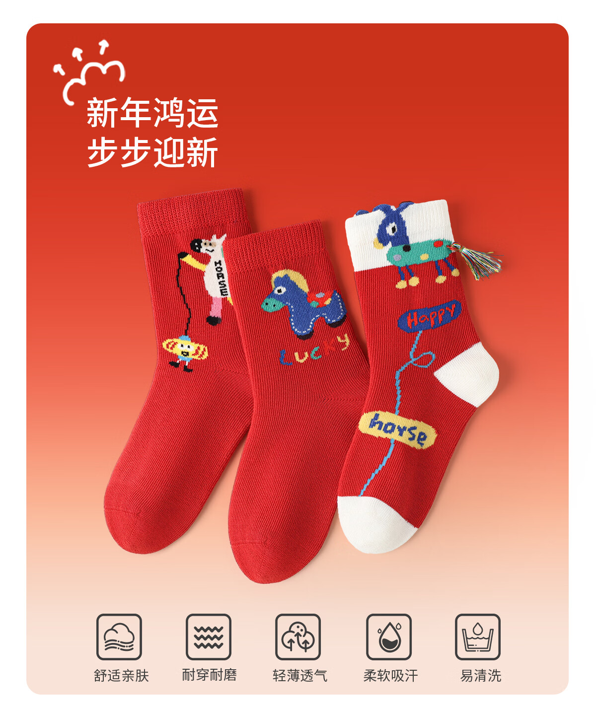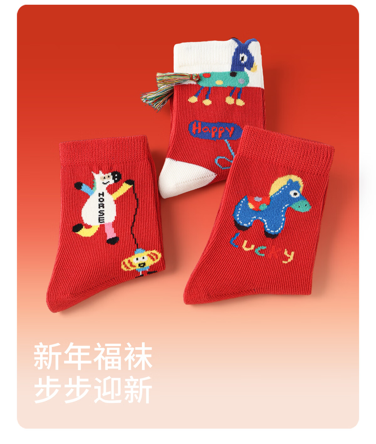斑比儿童新年红色袜子秋冬季棉袜大童宝宝男女童春秋款马年中筒袜 BB25574 儿童新年红袜子 3双 12岁以上 建议脚码38-42【22-24】