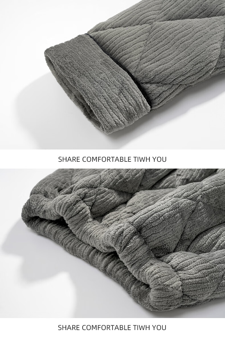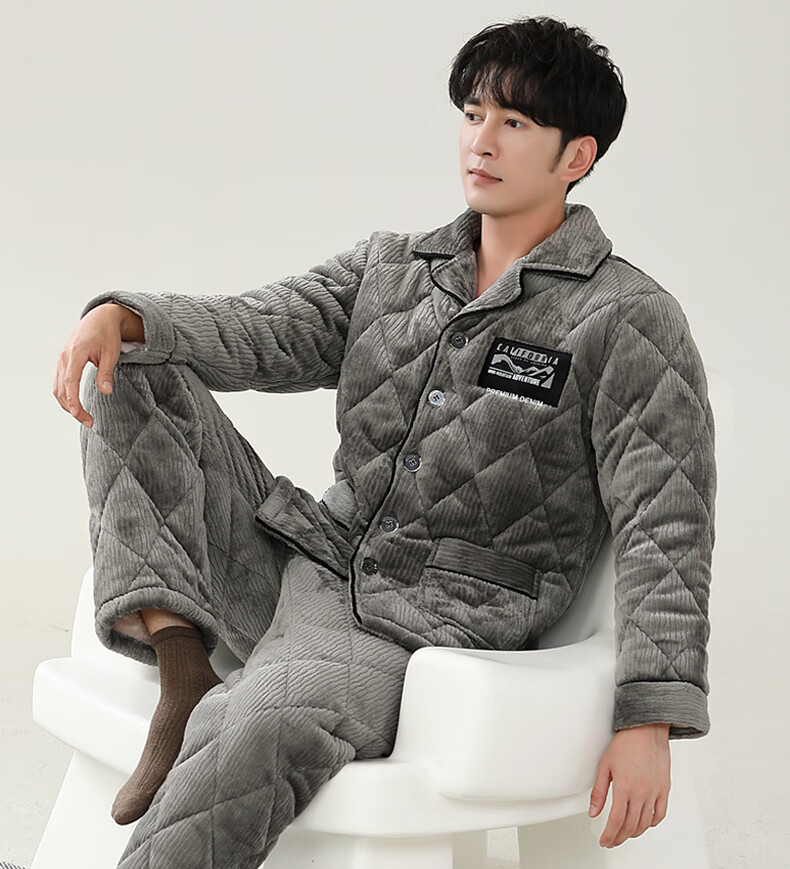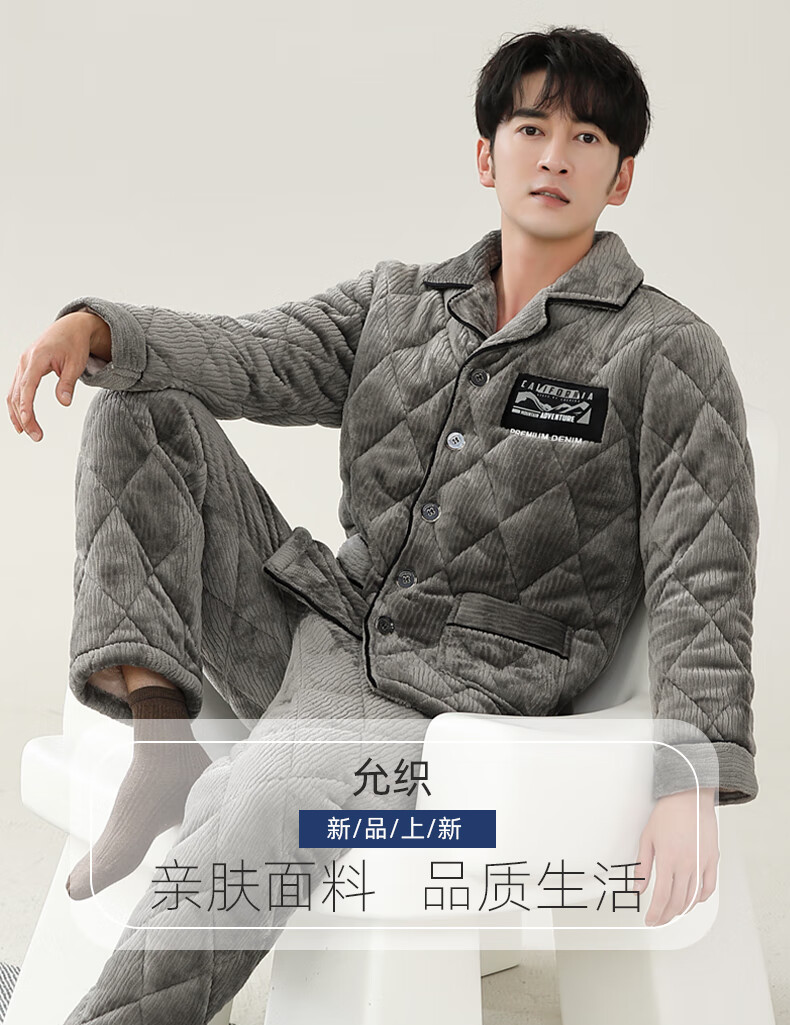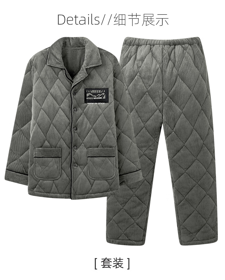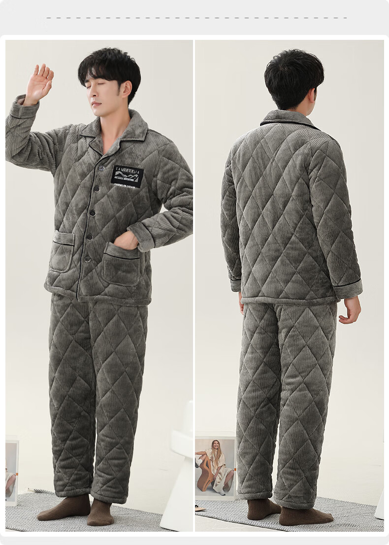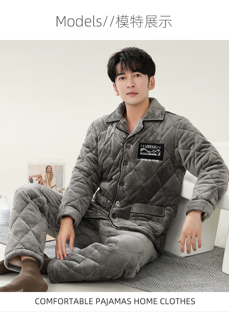 允织睡衣男冬季珊瑚绒三层夹棉加厚加绒棉袄冬天保暖套装男士家居服 6902-深灰 L (170) :建议100-120斤穿着