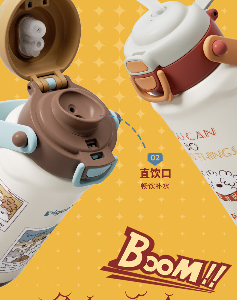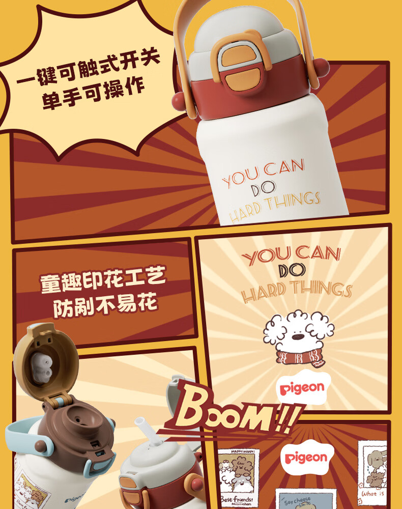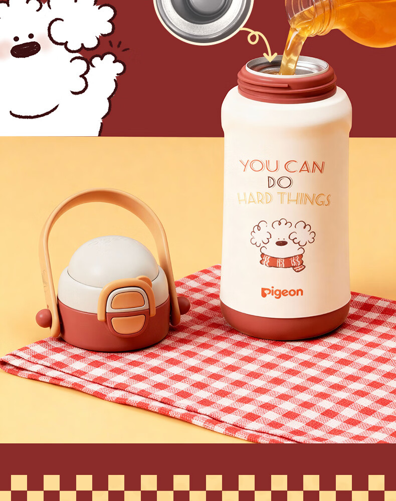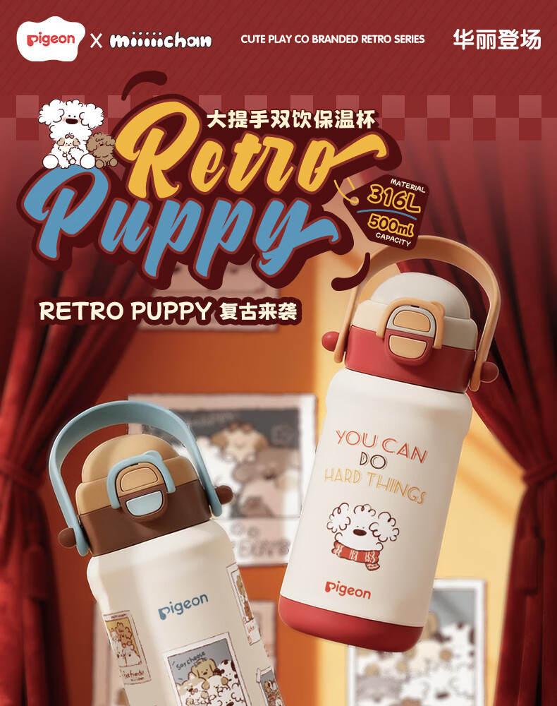 贝亲(Pigeon)儿童保温杯 双饮提手杯500ml (复古贴画小狗)