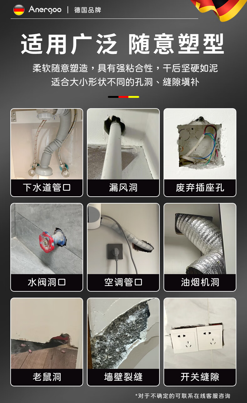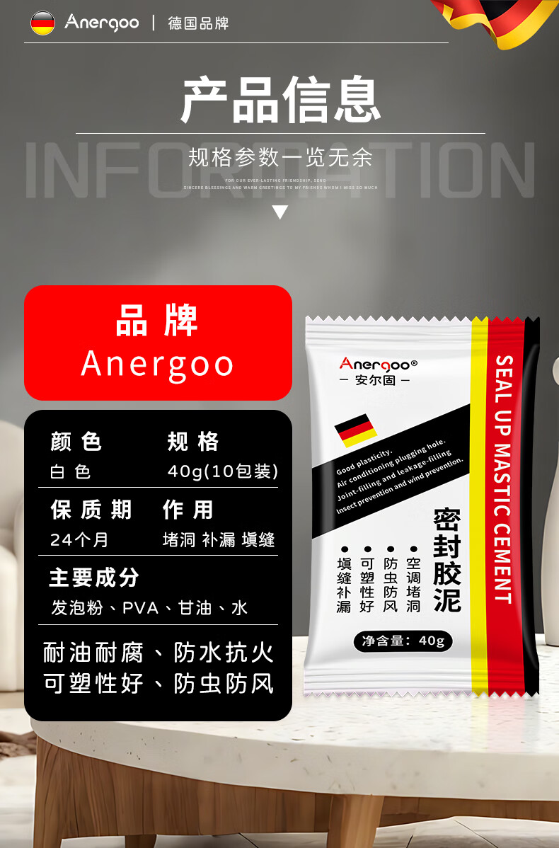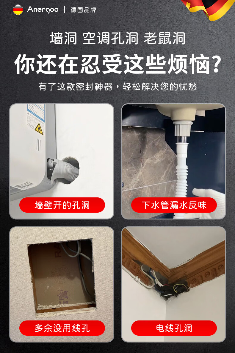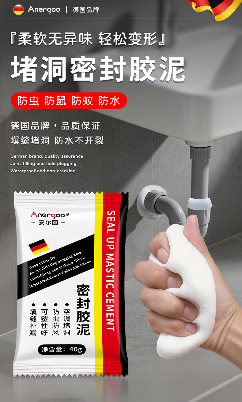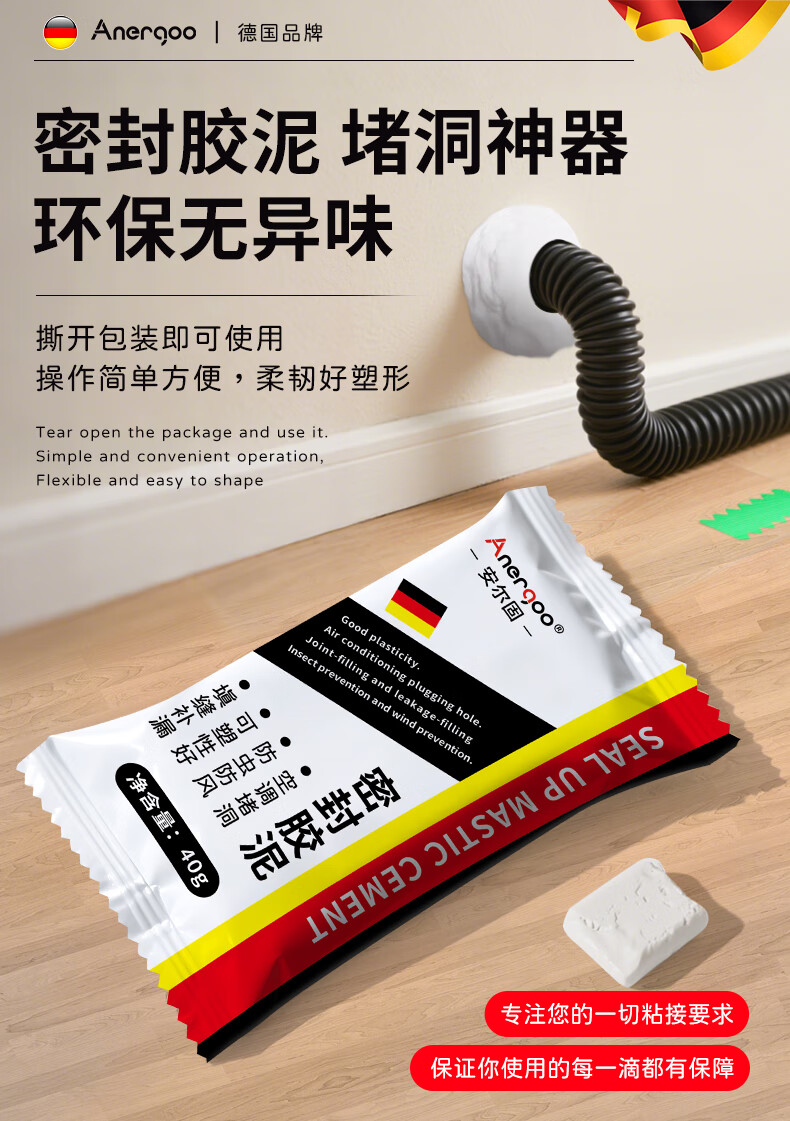 ANERGOO 安尔固【10包装】密封胶泥京东自营 堵洞神器 下水管道墙壁空调孔封堵泥 防水防虫堵漏胶泥 缝隙填充泥