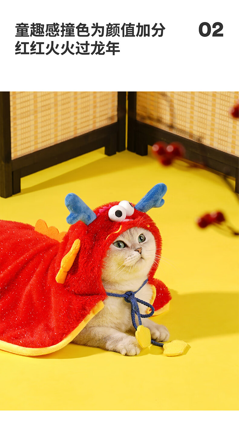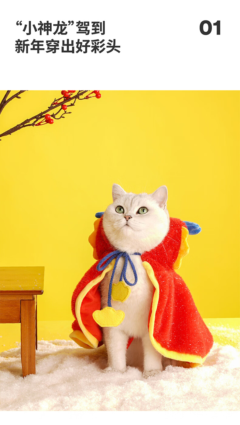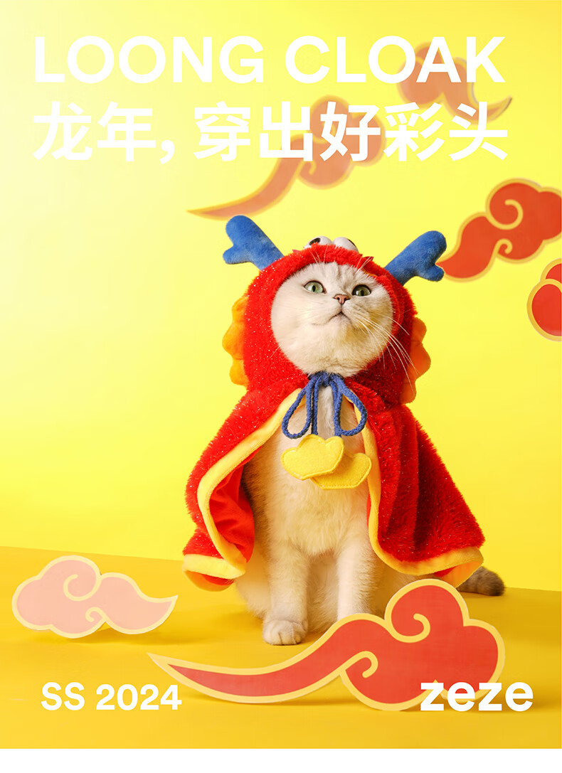 ZEZE新年猫咪披风冬季保暖宠物衣服猫猫衣服绒加厚狗狗防风斗篷 奶牛披风 冬季保暖