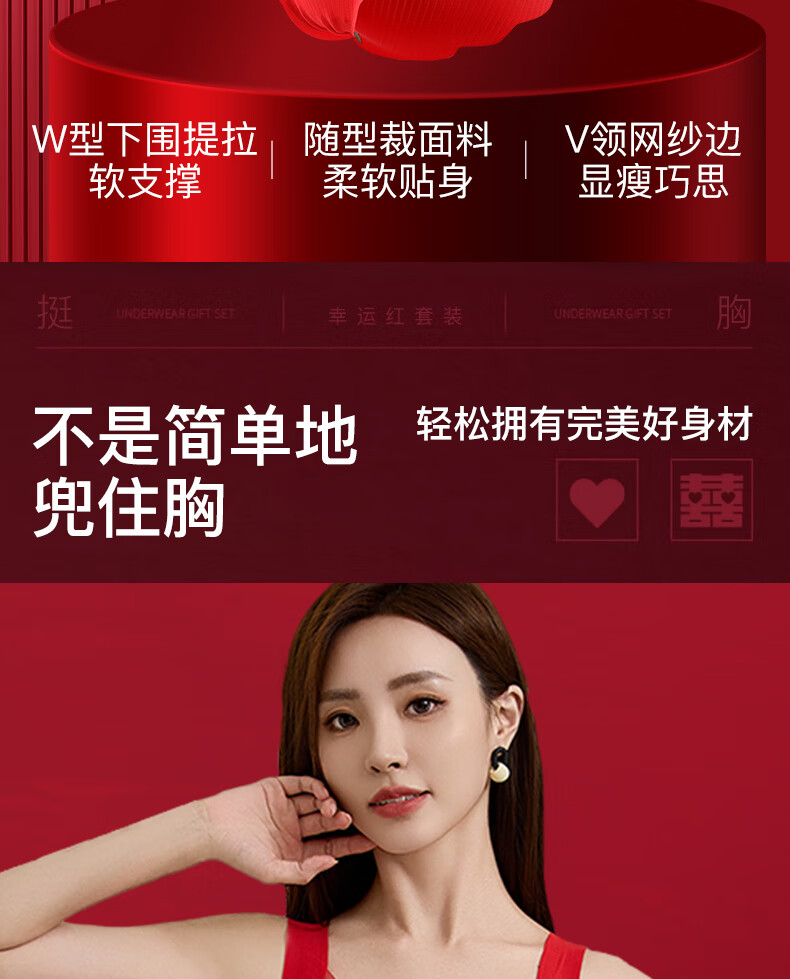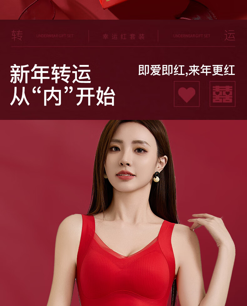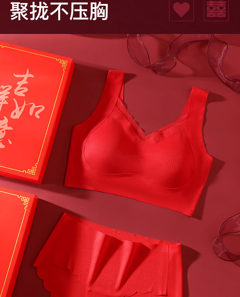 新款本命年红色无痕内衣收副乳聚拢收副乳防下垂大胸美背文胸背心 【套装】红色礼盒-1120# XL 【体重110-130斤】