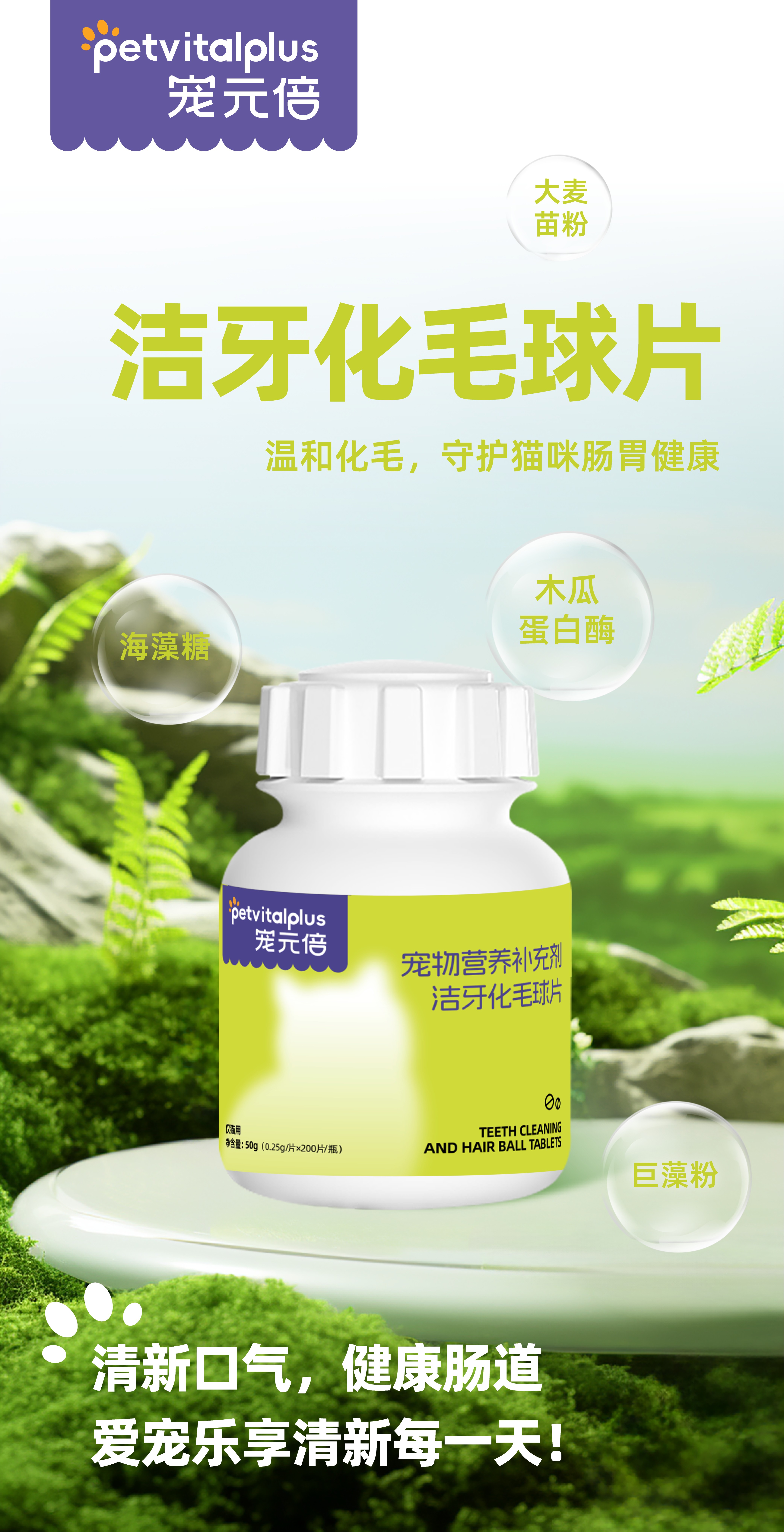 【养猫必备】宠元倍猫咪化毛片洁齿洁牙毛球吐毛温和排毛保护肠道 【体验装】洁牙化毛球片5包(100片)