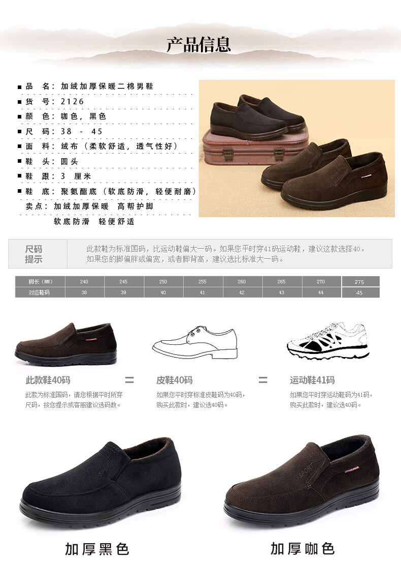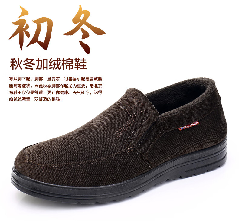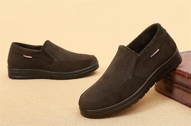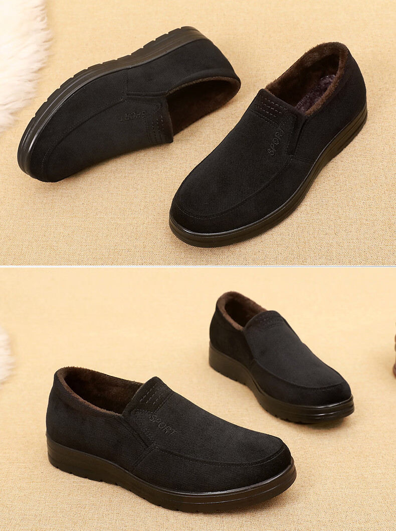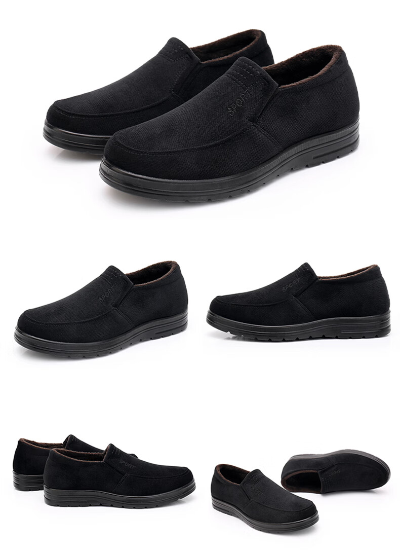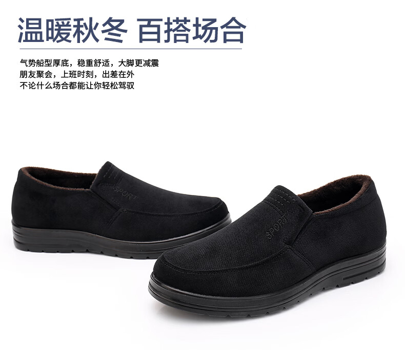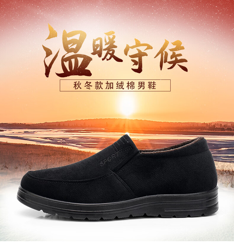 稻草人(MEXICAN)秋冬季老北京布鞋男士棉鞋加绒保暖爸爸鞋二棉老人鞋一脚蹬懒人鞋 男棉921黑色 38 标准