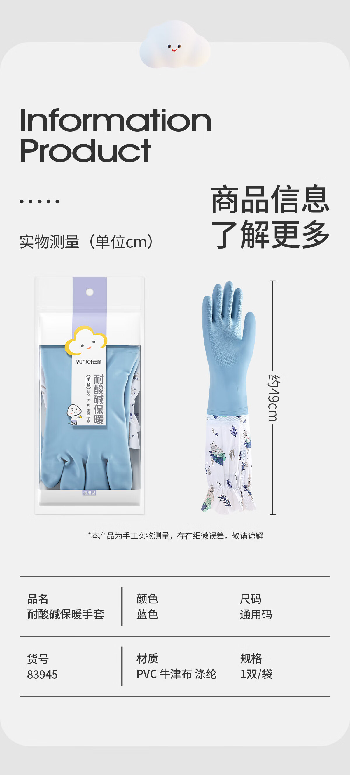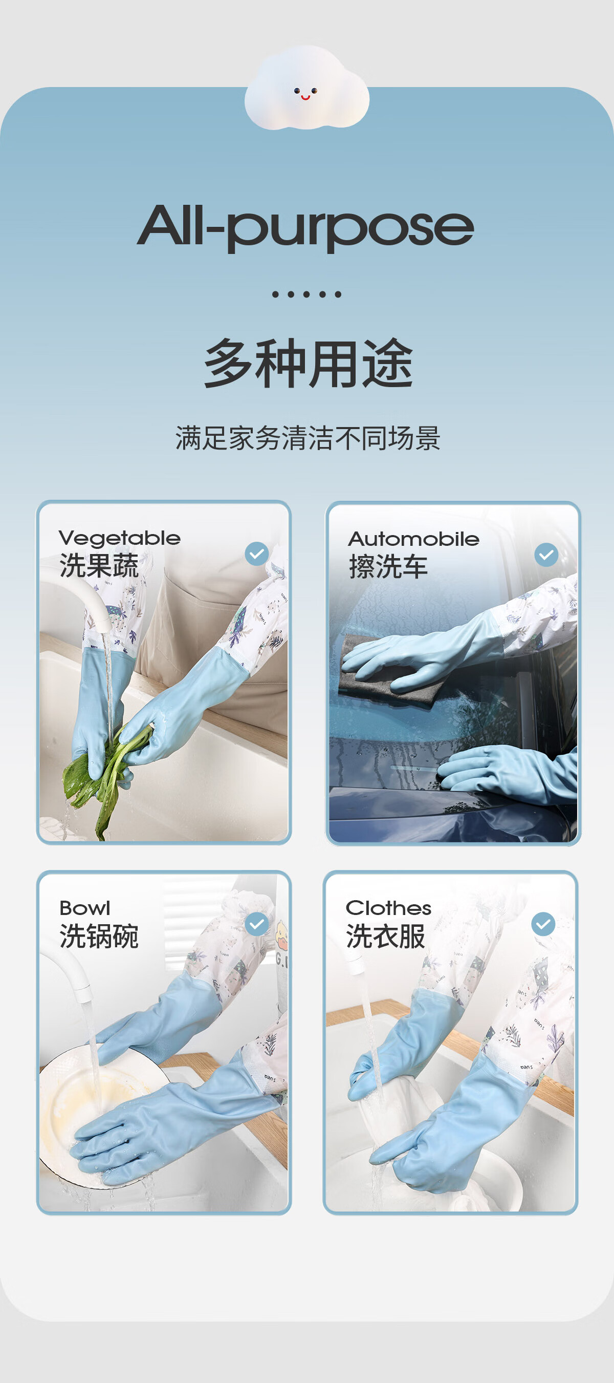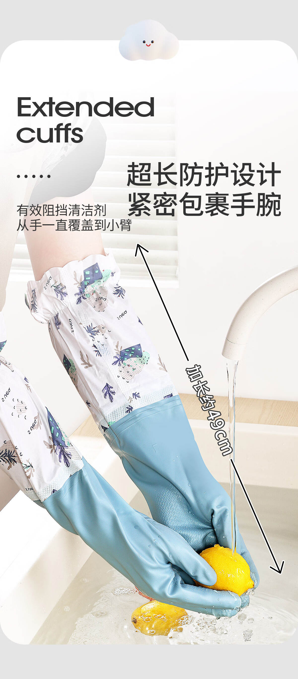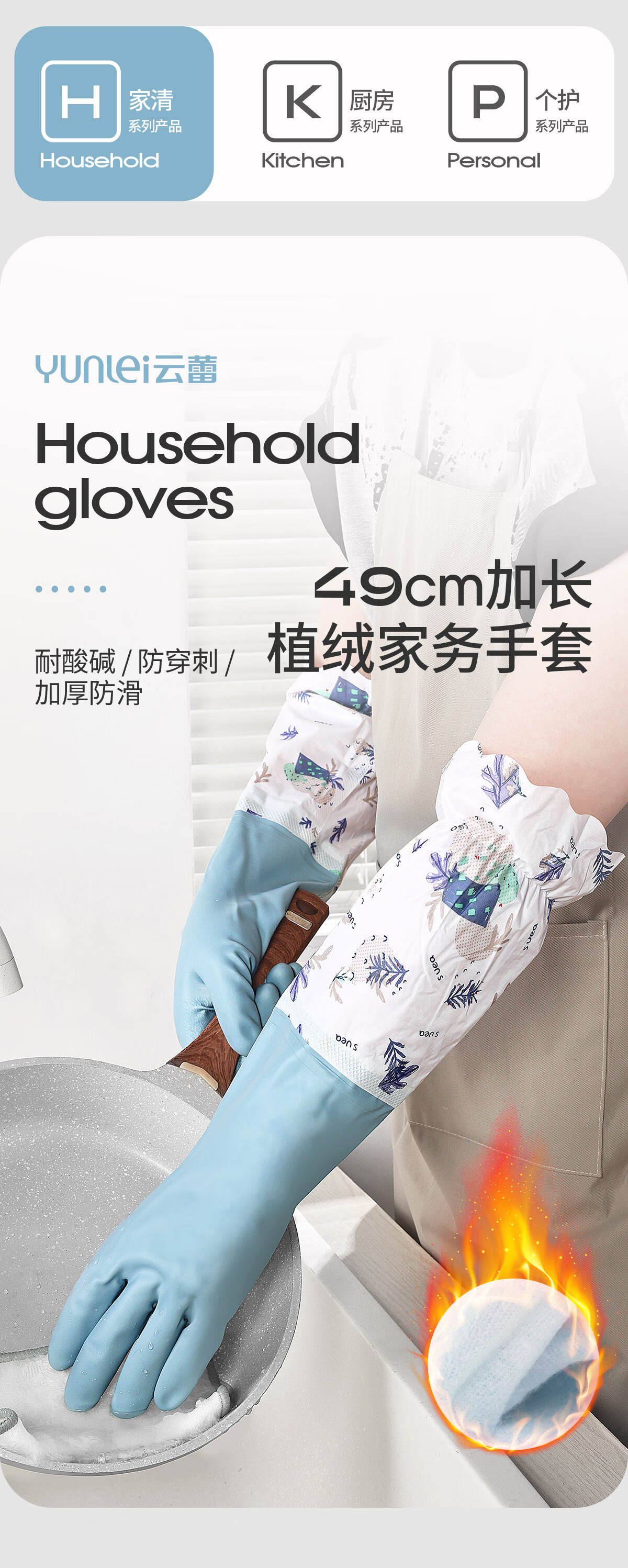 云蕾耐酸碱手套加长48cm1双家务手套加厚厨房清洁洗碗洗衣服防水防滑