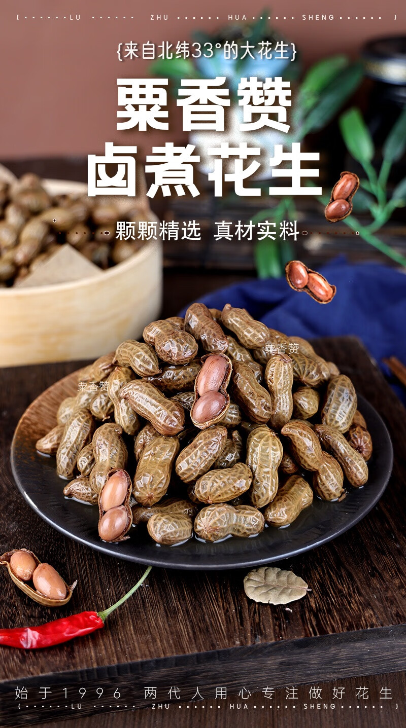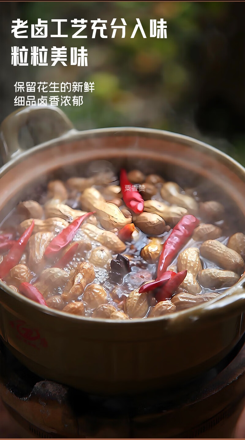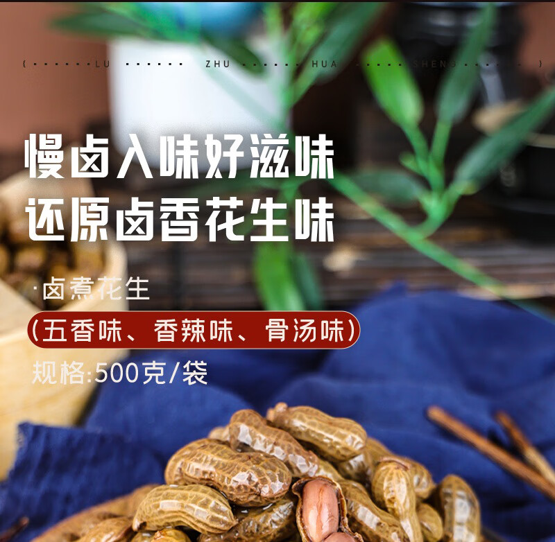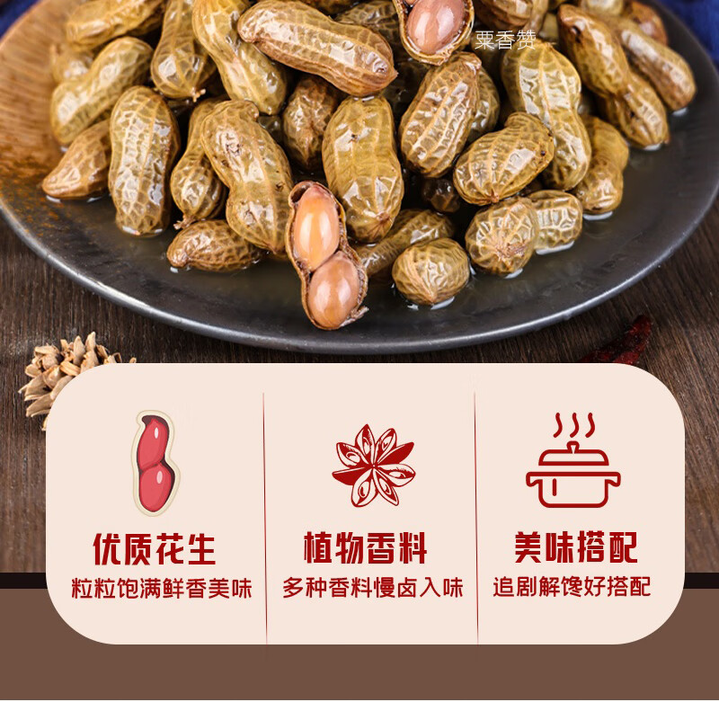 [啤酒搭档]水煮卤味花生下酒菜五香香辣骨汤带壳即食新鲜500g/袋 五香卤花生1斤