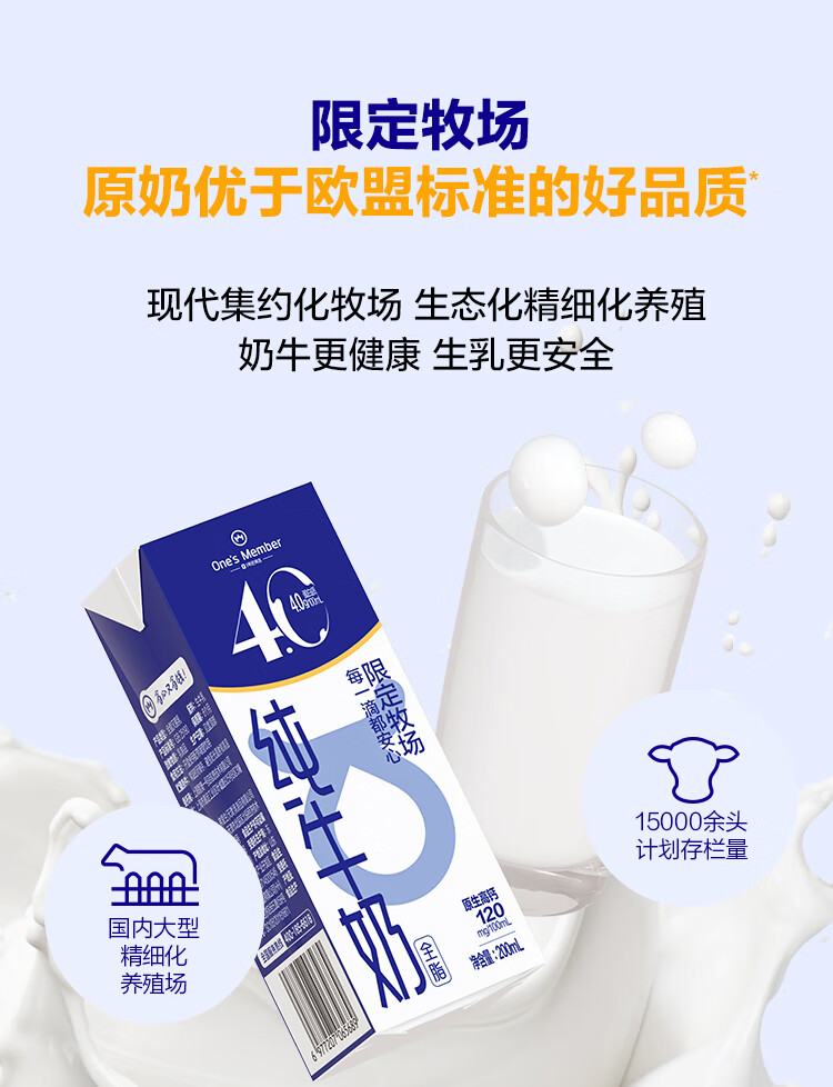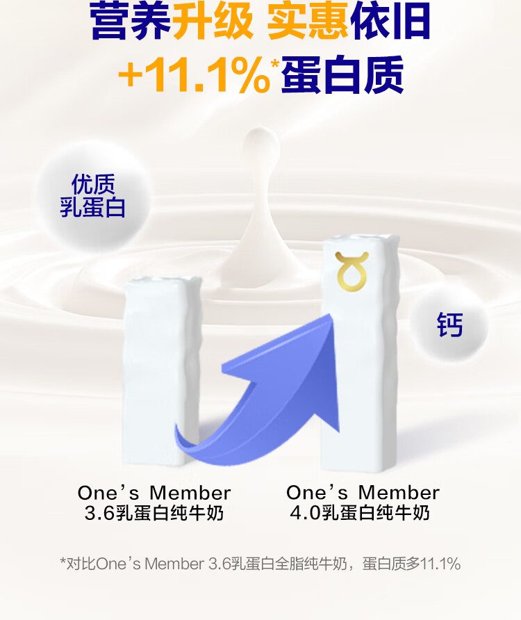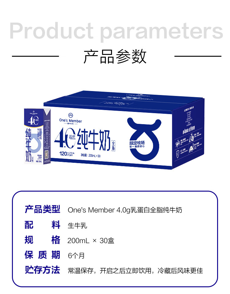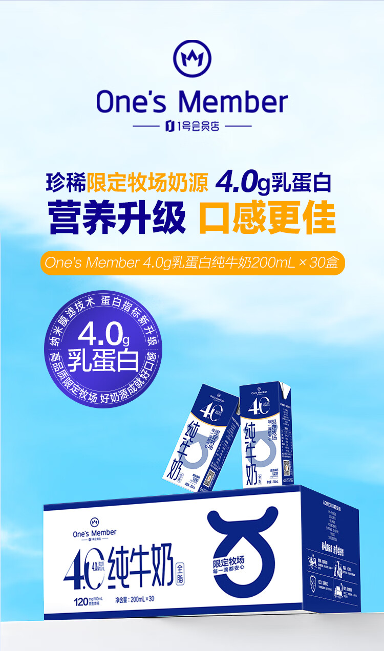 1号会员店(One's Member)4.0g蛋白纯牛奶200ml*30盒 每盒8g蛋白240mg高钙性价比整箱牛奶