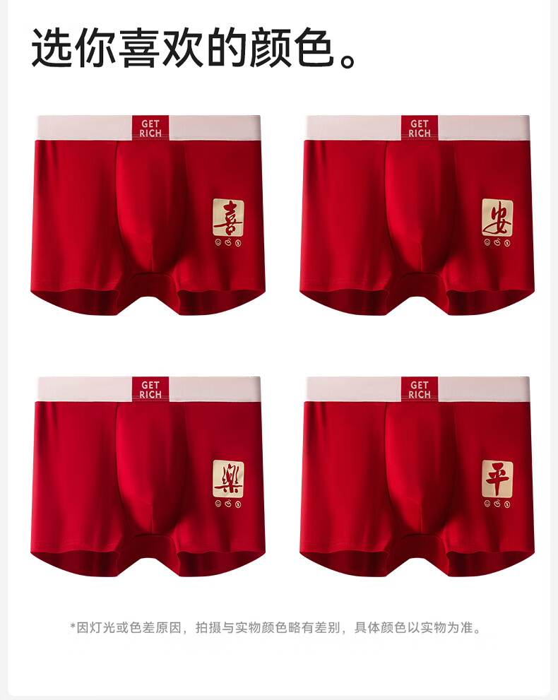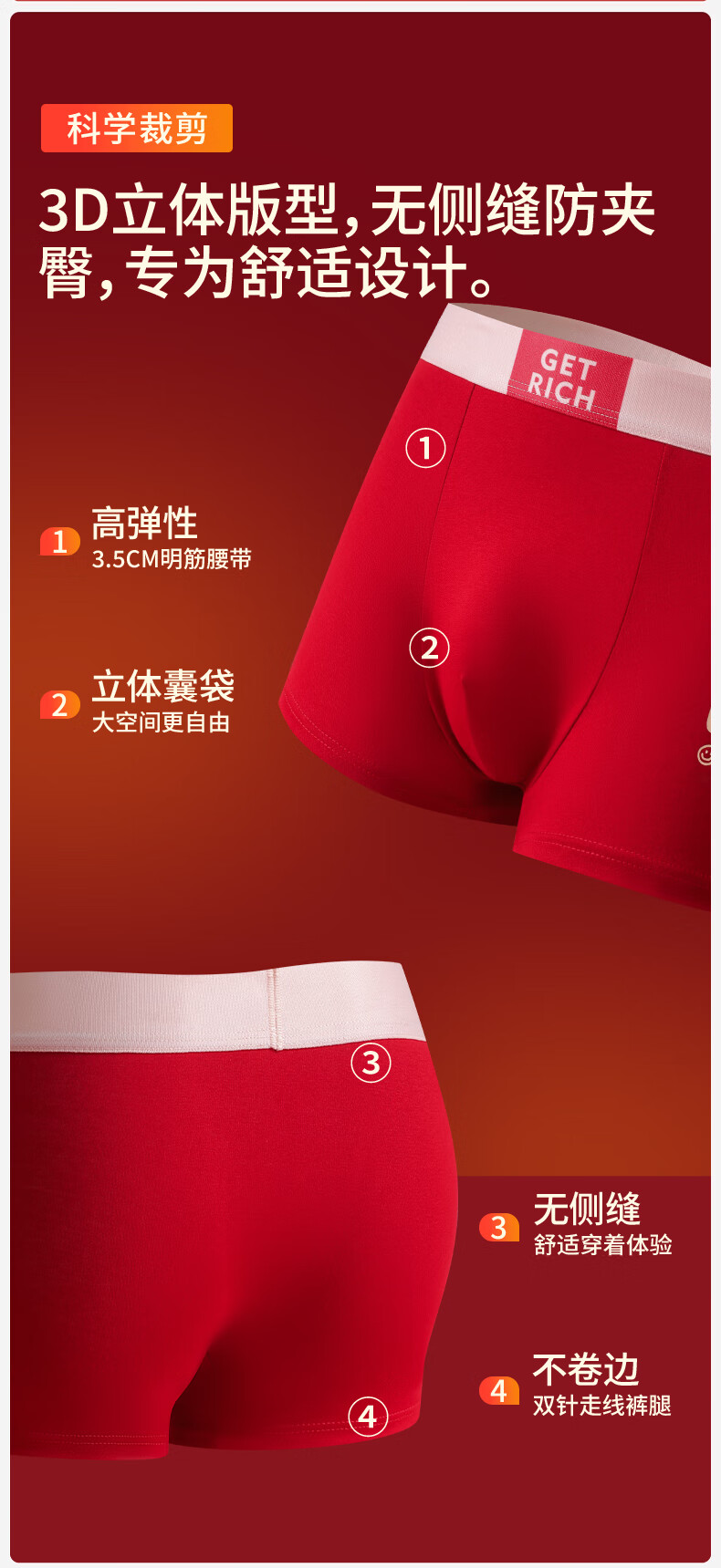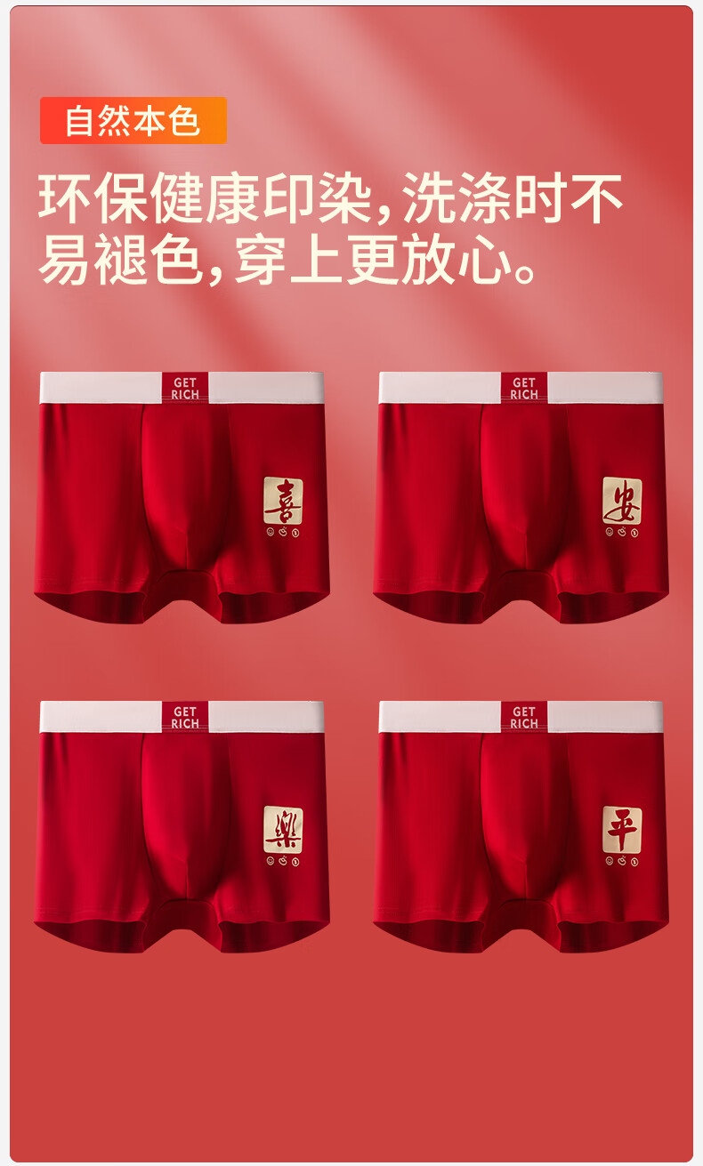 UFEEL内裤男本命年马年抗菌平安喜乐好运内裤立体版型纯棉四角裤2192 平安喜乐 4条 4XL (165斤-185斤)