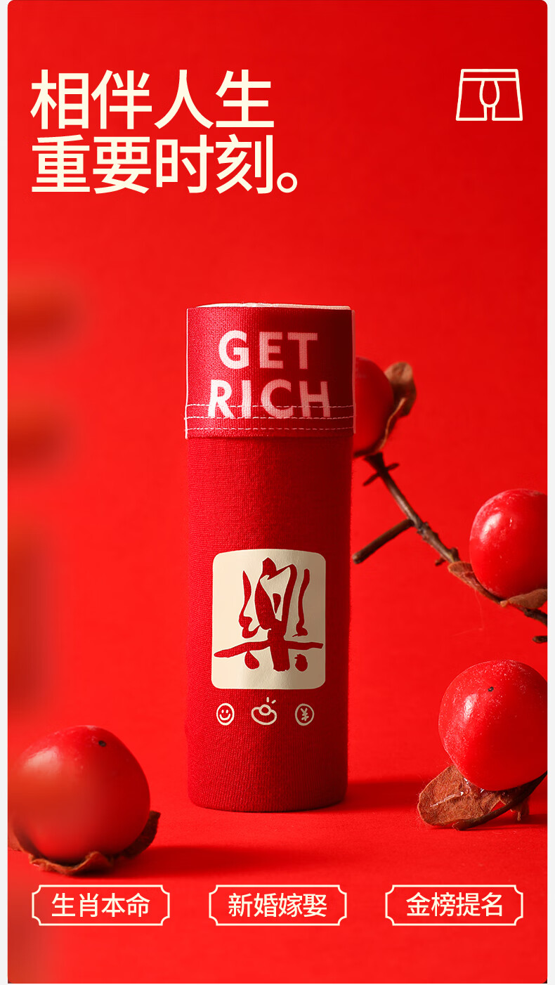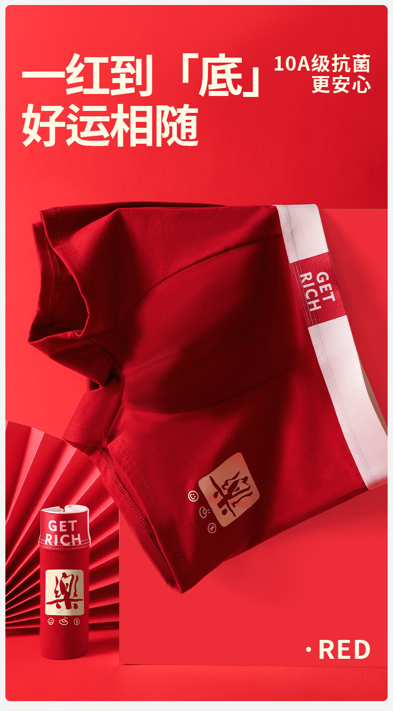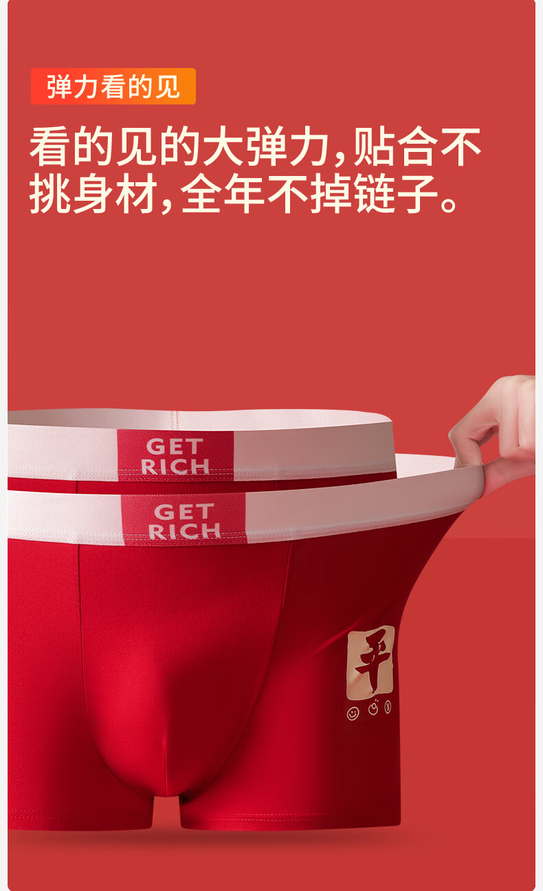 UFEEL内裤男本命年马年抗菌平安喜乐好运内裤立体版型纯棉四角裤2192 平安喜乐 4条 4XL (165斤-185斤)
