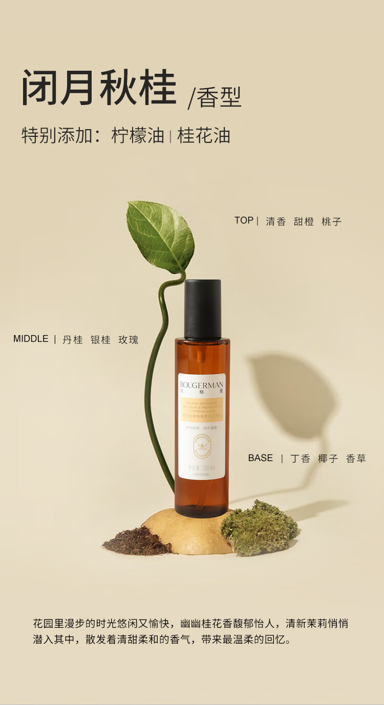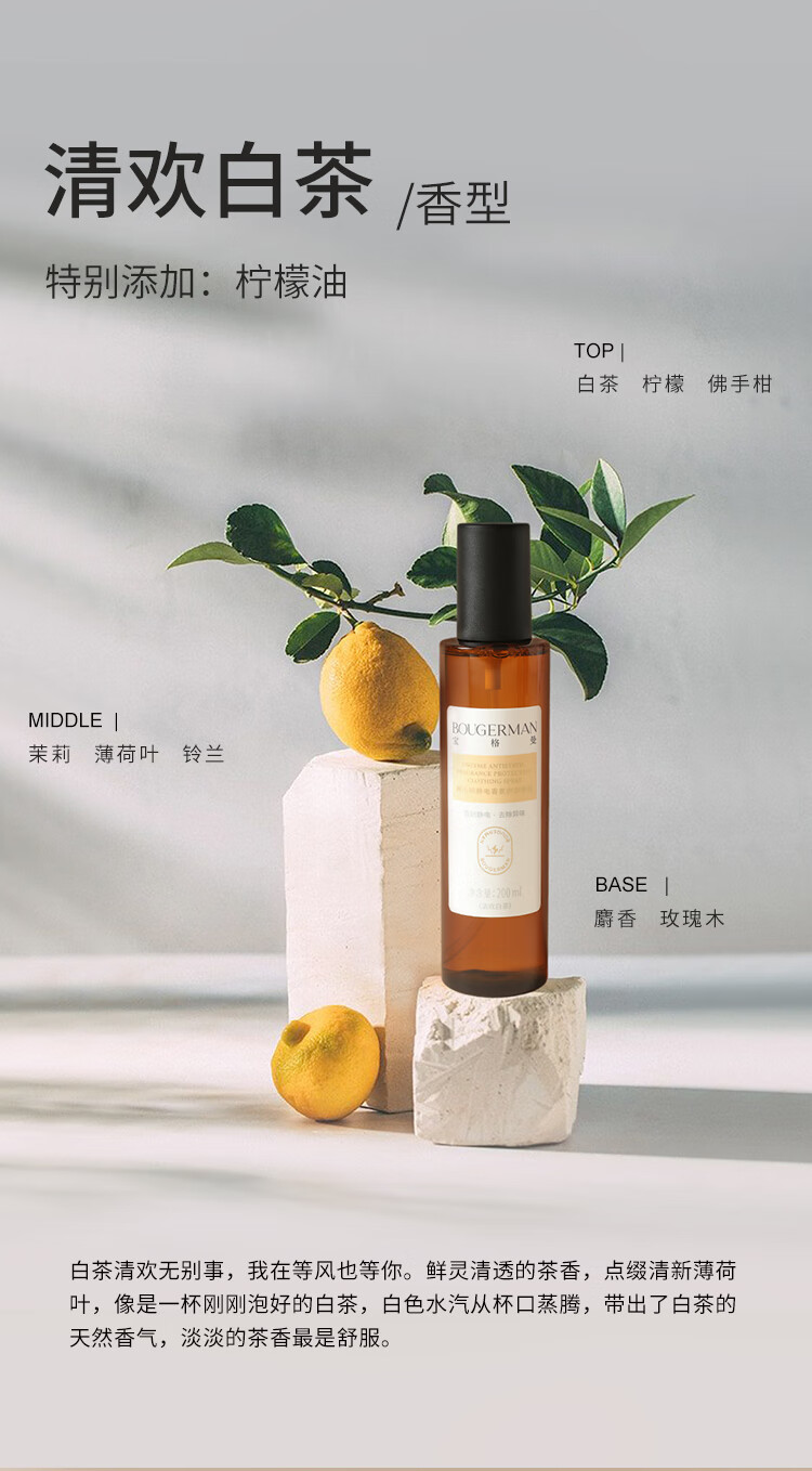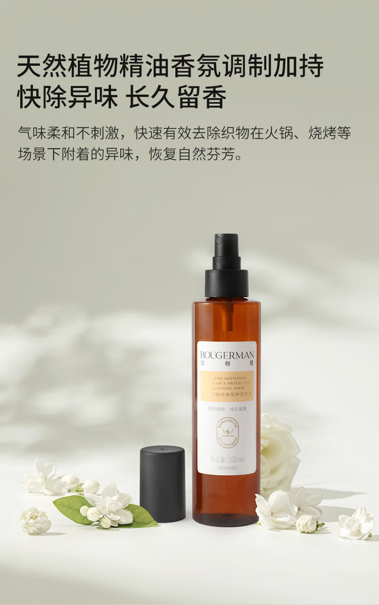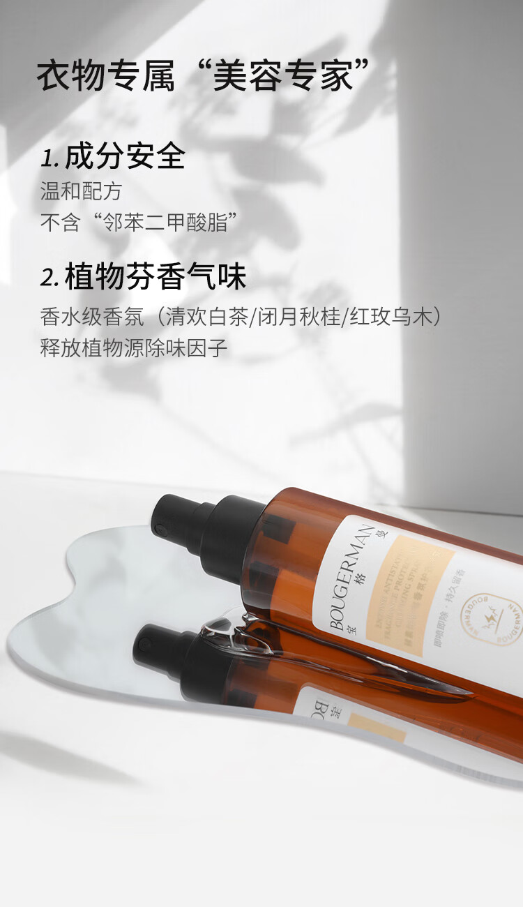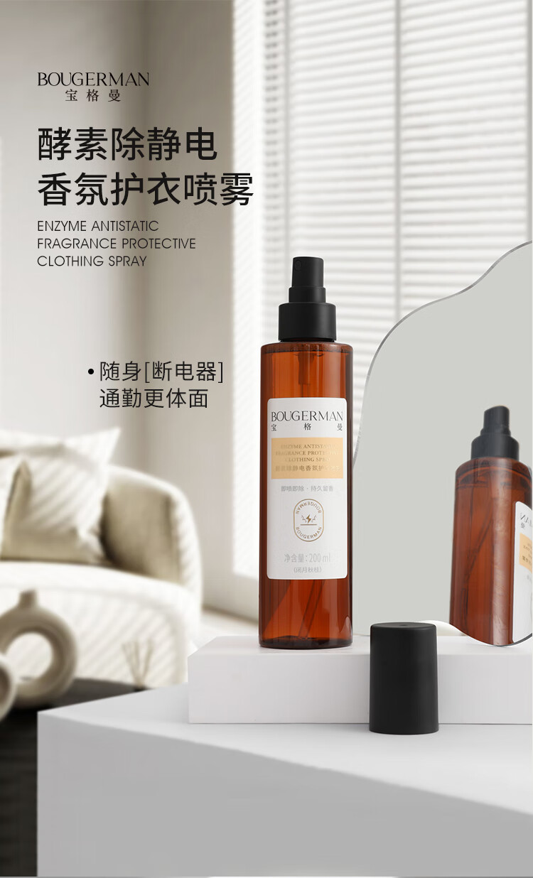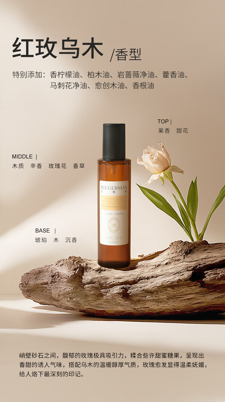BOUGERMAN宝格曼防静电衣物香氛喷雾衣服织物除味除菌清新留香抗静电 红玫乌木+清欢白茶