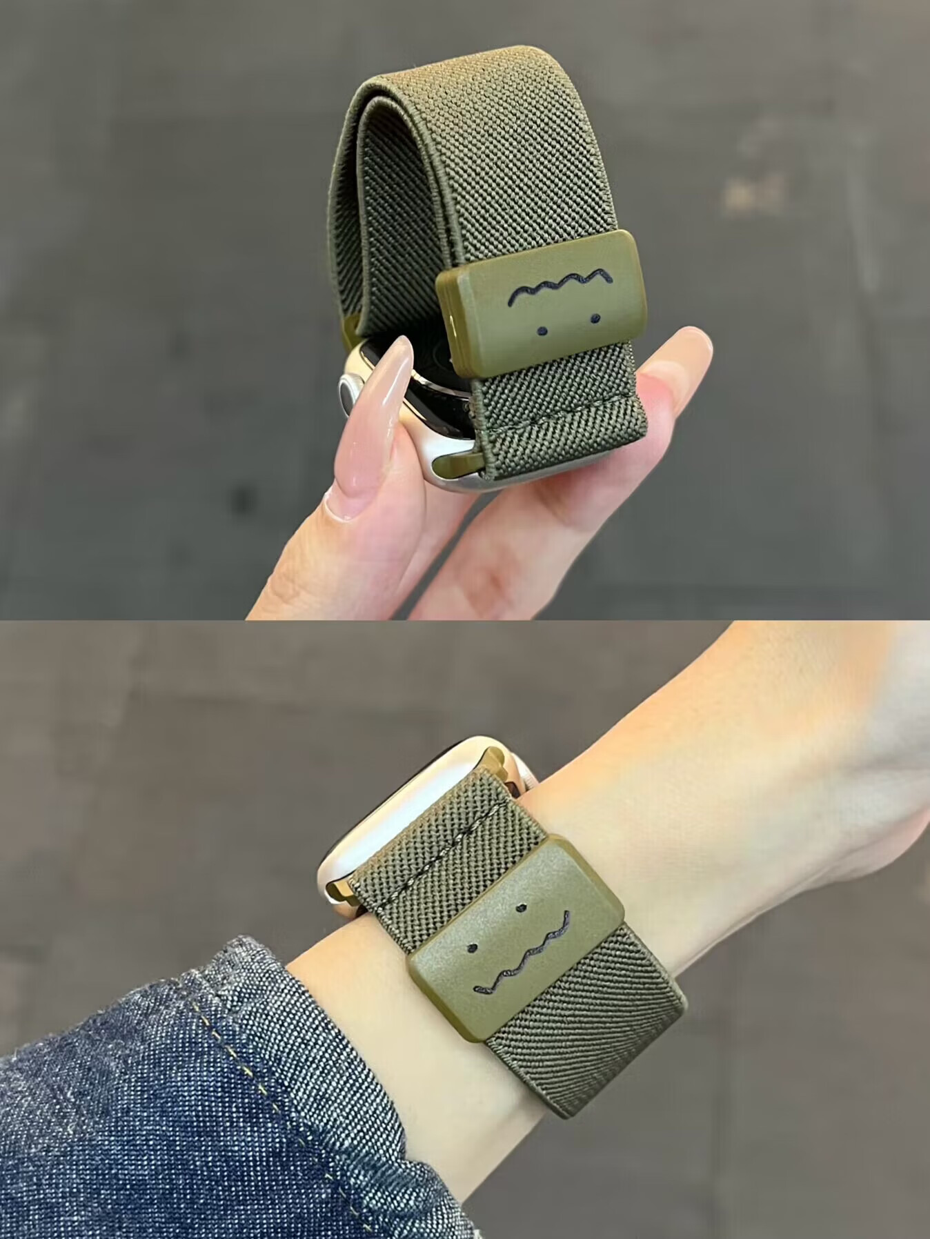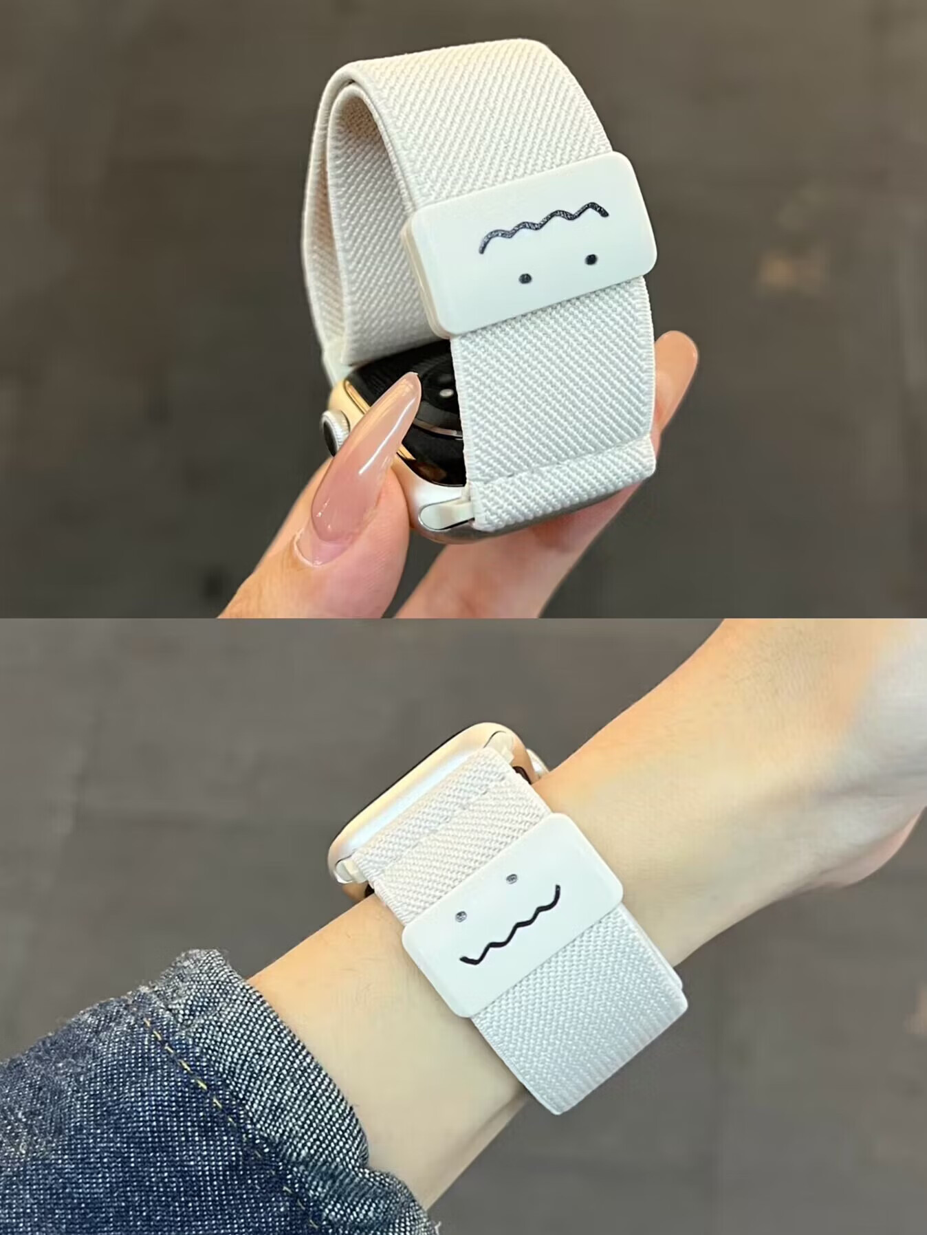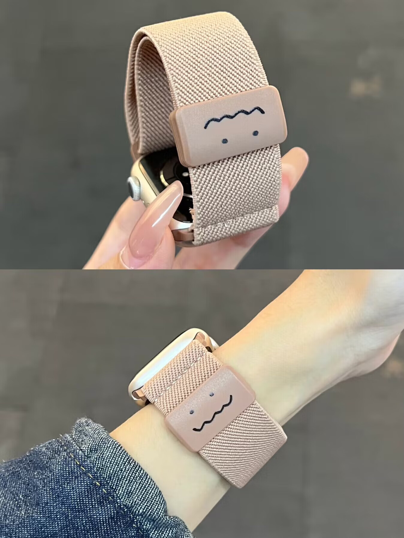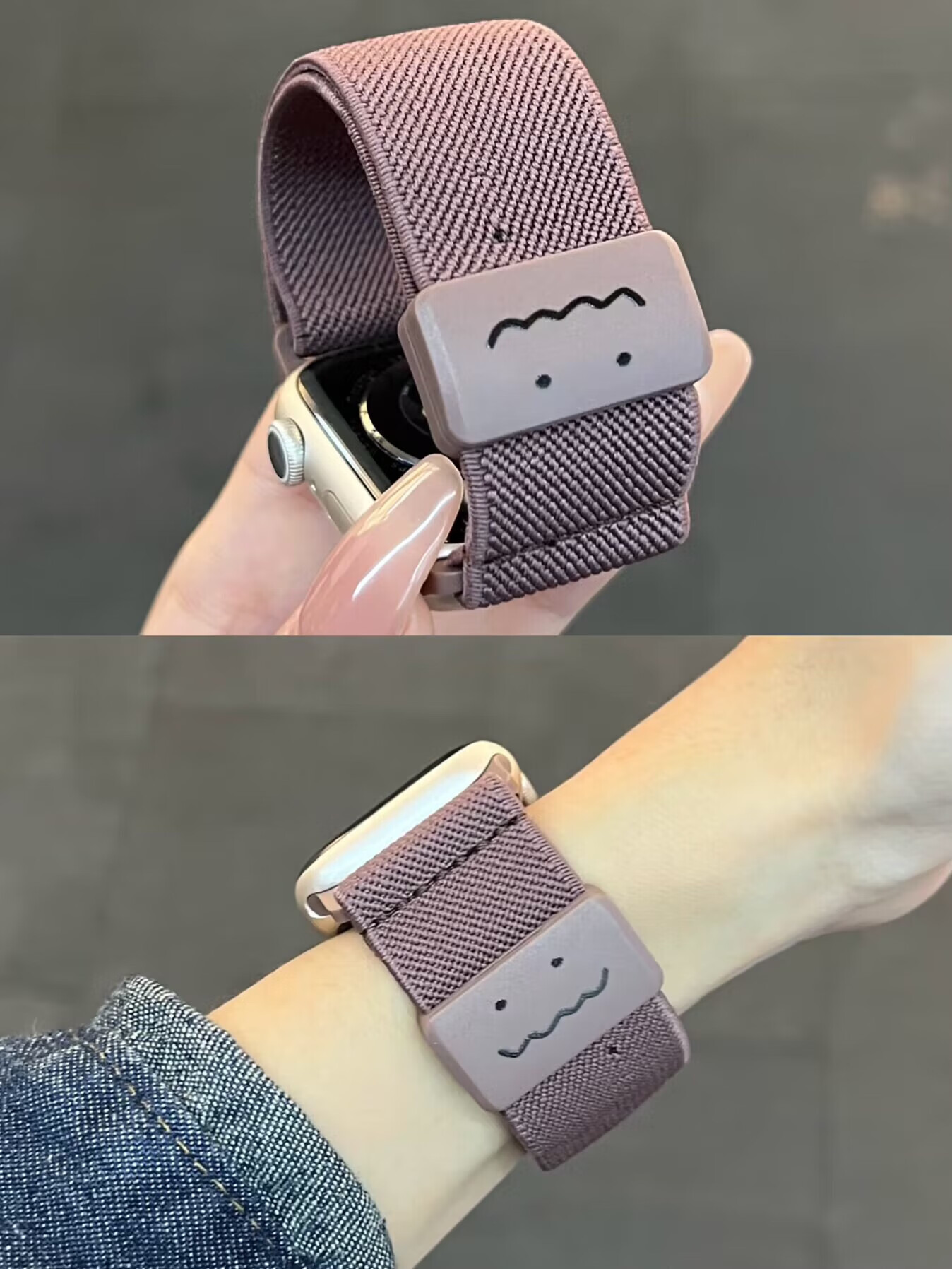 适用苹果iwatchS11表带新款酒红色可爱涂鸦S10回环磁吸编织纹表带 涂鸦编织吸磁扣-玫瑰粉 38MM 1/2/3代