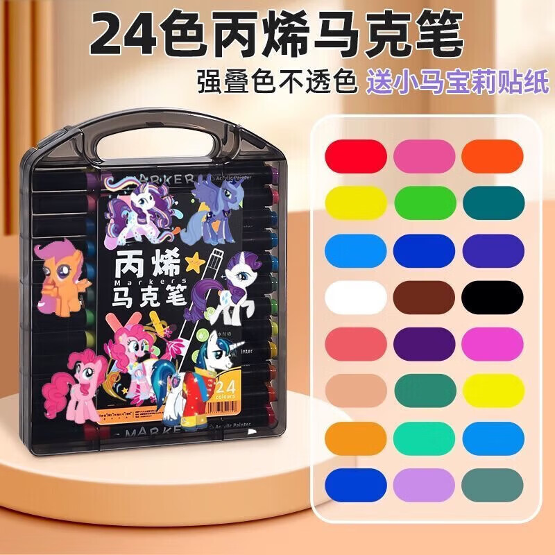 清洁HS 48色丙烯马克笔 礼盒装带贴纸